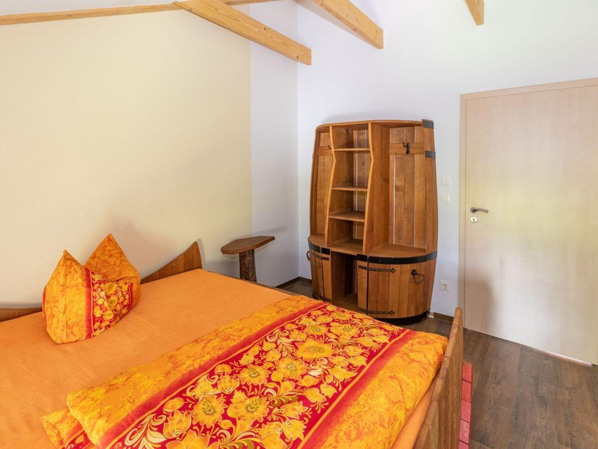 Schlafzimmer mit „Schlafen mal anders ? im Weinfass“, in allen Betten sind hochwertige Matrazen und die Doppel-Betten sind 2,00 m lang und 1,80 m breit; Kleiderschrank