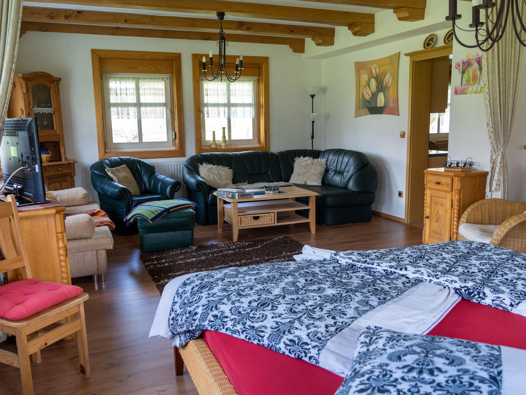 Reetgedecktes Bohlenhaus, Ferienwohnung Libelle
