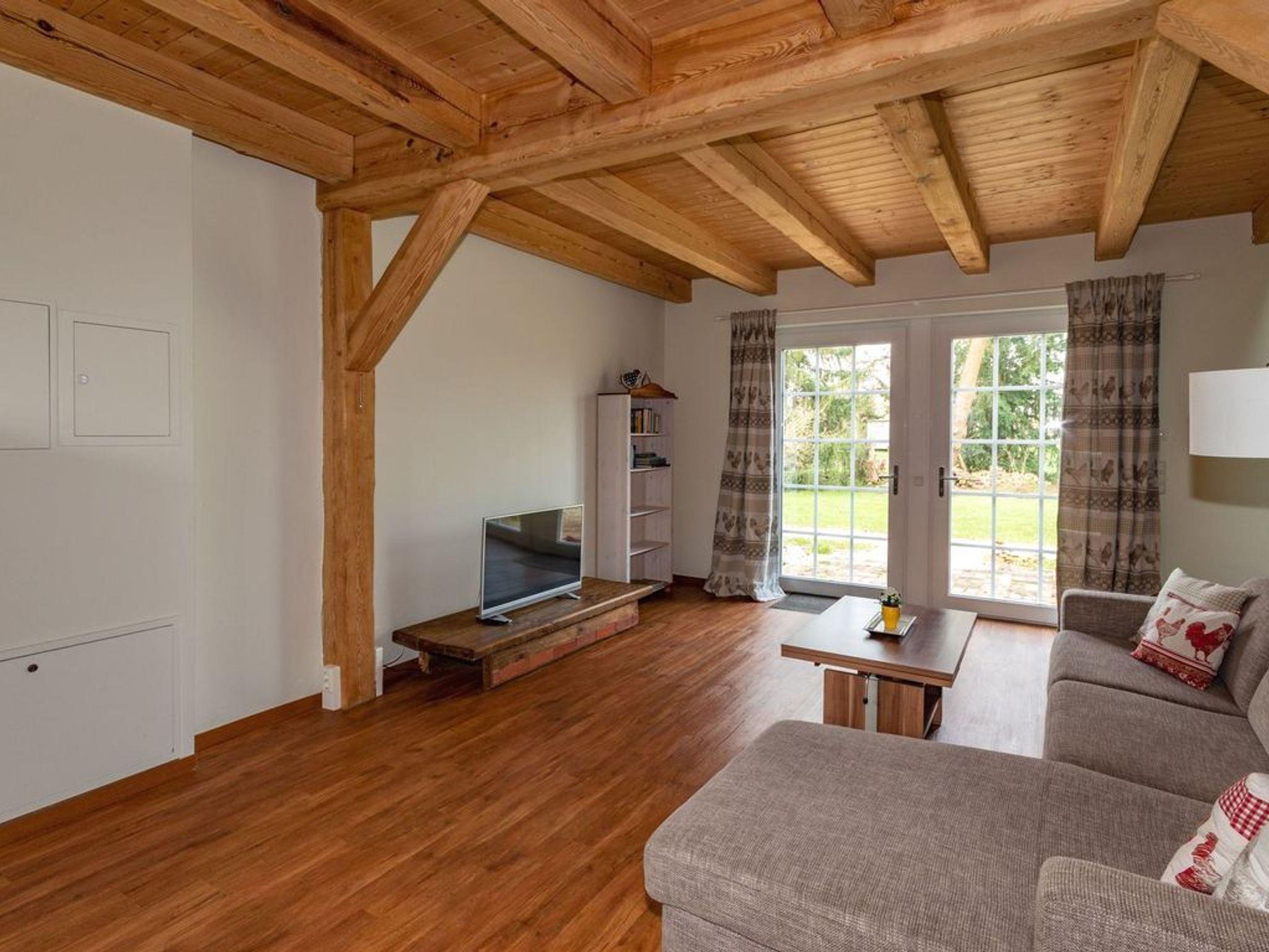 Die Ferienanlage Froschkönig liegt auf einem großen gepflegten Grundstück und ist für Gäste ab 12 Jahre buchbar. In der Ferienwohnung 3 befindet sich im Erdgeschoss der Wohnraum mit gemütlicher Sitzecke, Essplatz und Küchenzeile sowie das Bad mit DU/WC. Der Schlafbereich mit Doppelbett ist auf der offenen Galerie untergebracht. Zur Ferienwohnung gehört eine Terrasse mit Gartenmöbeln umgeben von wunderschönen alten Bäumen.