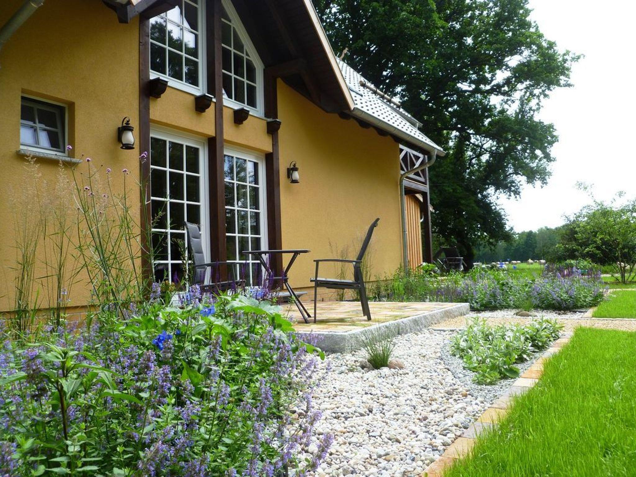 Der Froschkönig Ferienhaus und Ferienwohnungen liegt auf einem gepflegten Grundstück mit großem Garten und ist für Gäste ab 12 Jahren buchbar. Zur Anlage gehören ein kleines Ferienhaus und ein Appartementhaus mit vier Ferienwohnungen. Im Ferienhaus befinden sich im EG ein Wohnraum mit Pantryküche und DU/WC. Über eine ausziehbare Treppe gelangt man in das Dachgeschoss zum Schlafraum mit zwei getrennt stehenden Betten. Das Appartementhaus mit vier Ferienwohnungen ist hochwertig eingerichtet. Im EG der Ferienwohnungen befinden sich je der Wohn- und Küchenbereich sowie das Bad mit DU/WC. In den Ferienwohnungen 1-3 ist der Schlafbereich auf der Galerie untergebracht. In der Ferienwohnung 4 liegt der separate Schlafraum im OG und dort befindet sich auch ein zusätzliches Bad. Die Ferienwohnung 1 ist im EG barrierefrei. Eine Grillmöglichkeit steht den Gästen auf Anfrage zur Verfügung. Bitte um vorherige Absprache mit dem Gastgeber.