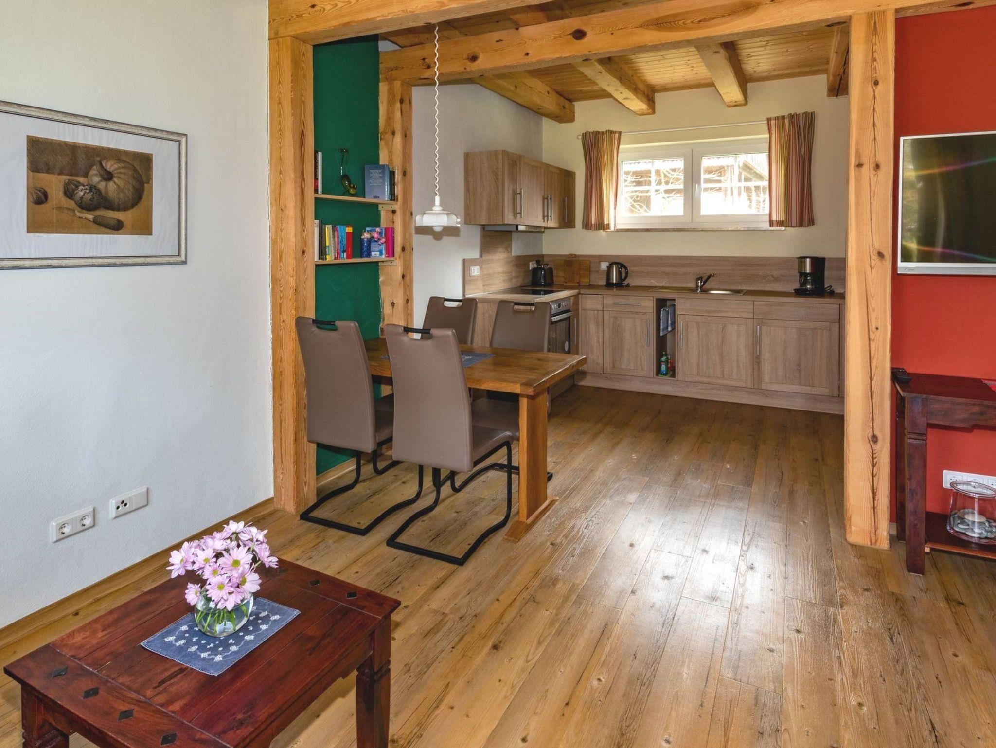Der Froschkönig Ferienhaus und Ferienwohnungen liegt auf einem gepflegten Grundstück mit großem Garten und ist für Gäste ab 12 Jahren buchbar. Zur Anlage gehören ein kleines Ferienhaus und ein Appartementhaus mit vier Ferienwohnungen. Im Ferienhaus befinden sich im EG ein Wohnraum mit Pantryküche und DU/WC. Über eine ausziehbare Treppe gelangt man in das Dachgeschoss zum Schlafraum mit zwei getrennt stehenden Betten. Das Appartementhaus mit vier Ferienwohnungen ist hochwertig eingerichtet. Im EG der Ferienwohnungen befinden sich je der Wohn- und Küchenbereich sowie das Bad mit DU/WC. In den Ferienwohnungen 1-3 ist der Schlafbereich auf der Galerie untergebracht. In der Ferienwohnung 4 liegt der separate Schlafraum im OG und dort befindet sich auch ein zusätzliches Bad. Die Ferienwohnung 1 ist im EG barrierefrei. Eine Grillmöglichkeit steht den Gästen auf Anfrage zur Verfügung. Bitte um vorherige Absprache mit dem Gastgeber.