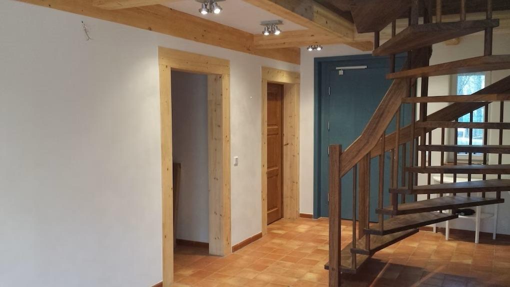 Der Zugang zum Haus erfolgt über eine dreistufiges Treppchen. Das Bad im Erdgeschoß ist ebenerdig.