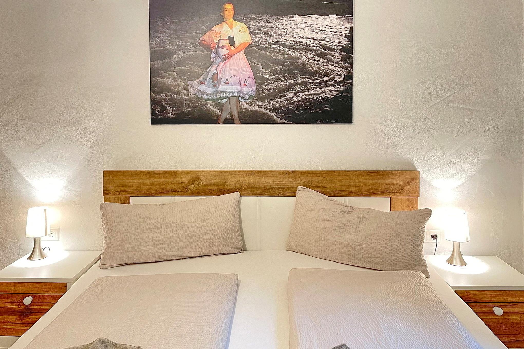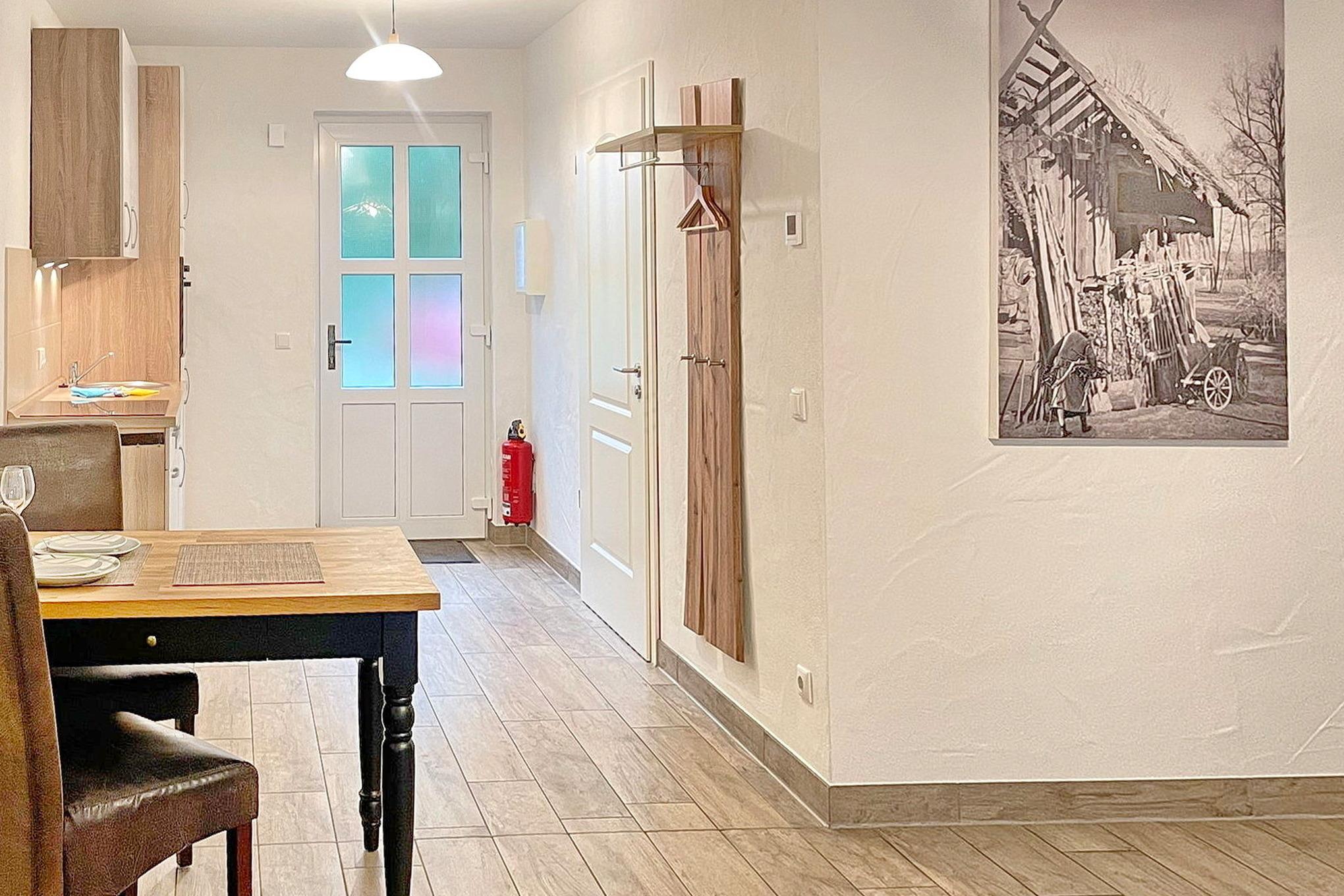 Die Ferienwohnung "Laubhütte" bietet Platz für maximal 2 Personen und befindet sich im Haus "Zum Baumhaus" im Dorf Burg. Die Wohnung verfügt über ein separates Schlafzimmer, ein Wohnzimmer mit Zugang zur eigenen Terrasse, ein großes geräumiges Badezimmer mit ebenerdiger Dusche. Die Küche ist mit einem Geschirrspüler ausgestattet. Ein Garten steht den Gästen zur Nutzung zur Verfügung.