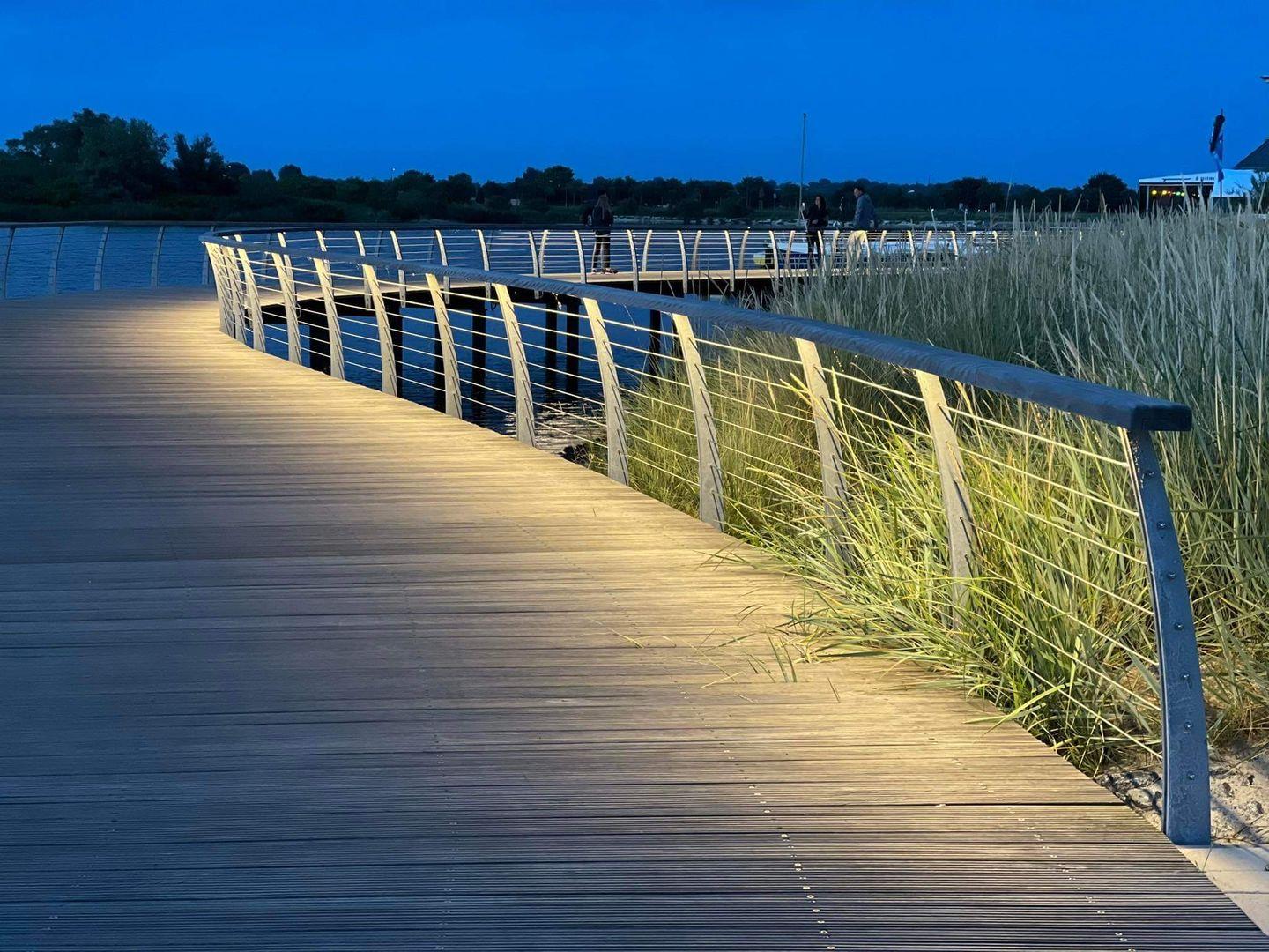 Nur ca. 180m sind es vom Marina View Apartment zum Strand. - Der fantastische Südstrand ist DLRG überwacht und liegt im Empfangsbereich des öffentlichen WLAN der Gemeinde Fehmarn. In unmittelbarer Strandnähe finden Sie Restaurants, Cafés, Spielplätze, Toiletten, Duschen und einen Wickelraum.