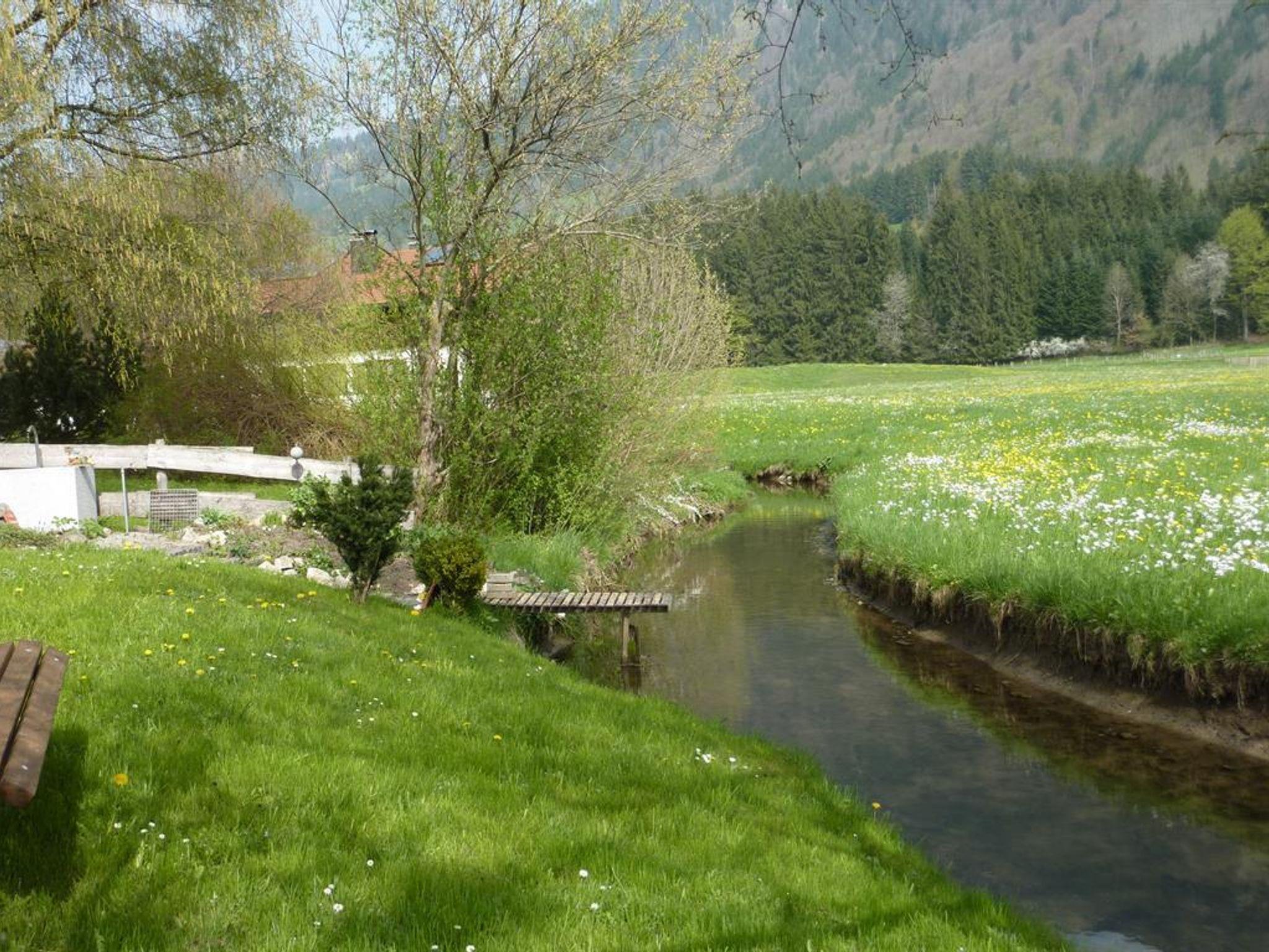 Im Hofgelände laden eine sonnige Sitzecke, ein Naturbächle, ein Kneippbecken mit frischem Quellwasser und eine Terrasse zum Verweilen ein.