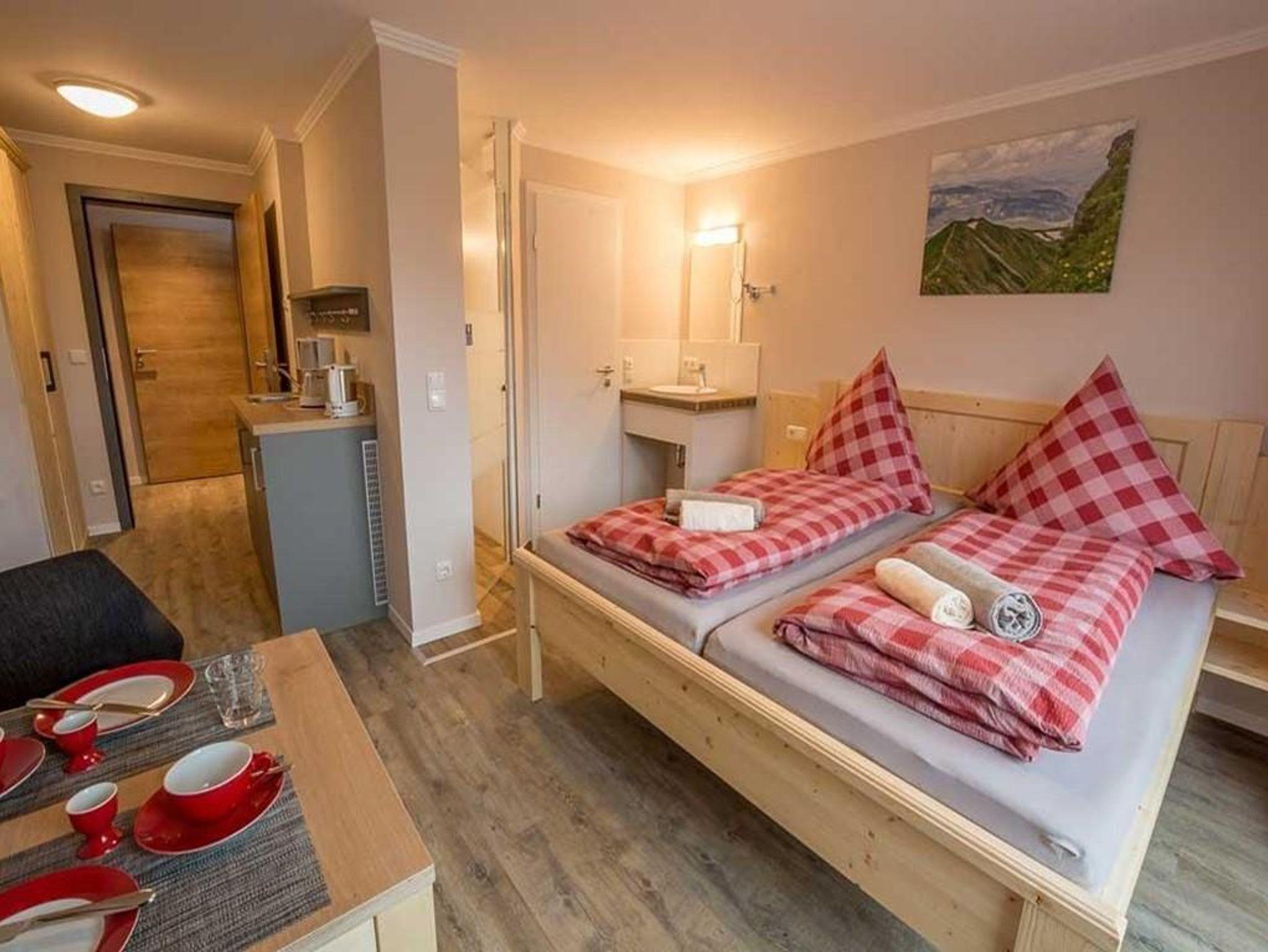 Kuschliges, komfortables Zimmer für 1-2 Personen, ruhig und sonnig mit Blick auf die Berge aus dem Bett, neuem Dusch- und Sanitärbereich, kleine Pantry für einen Kaffee zwischendurch.