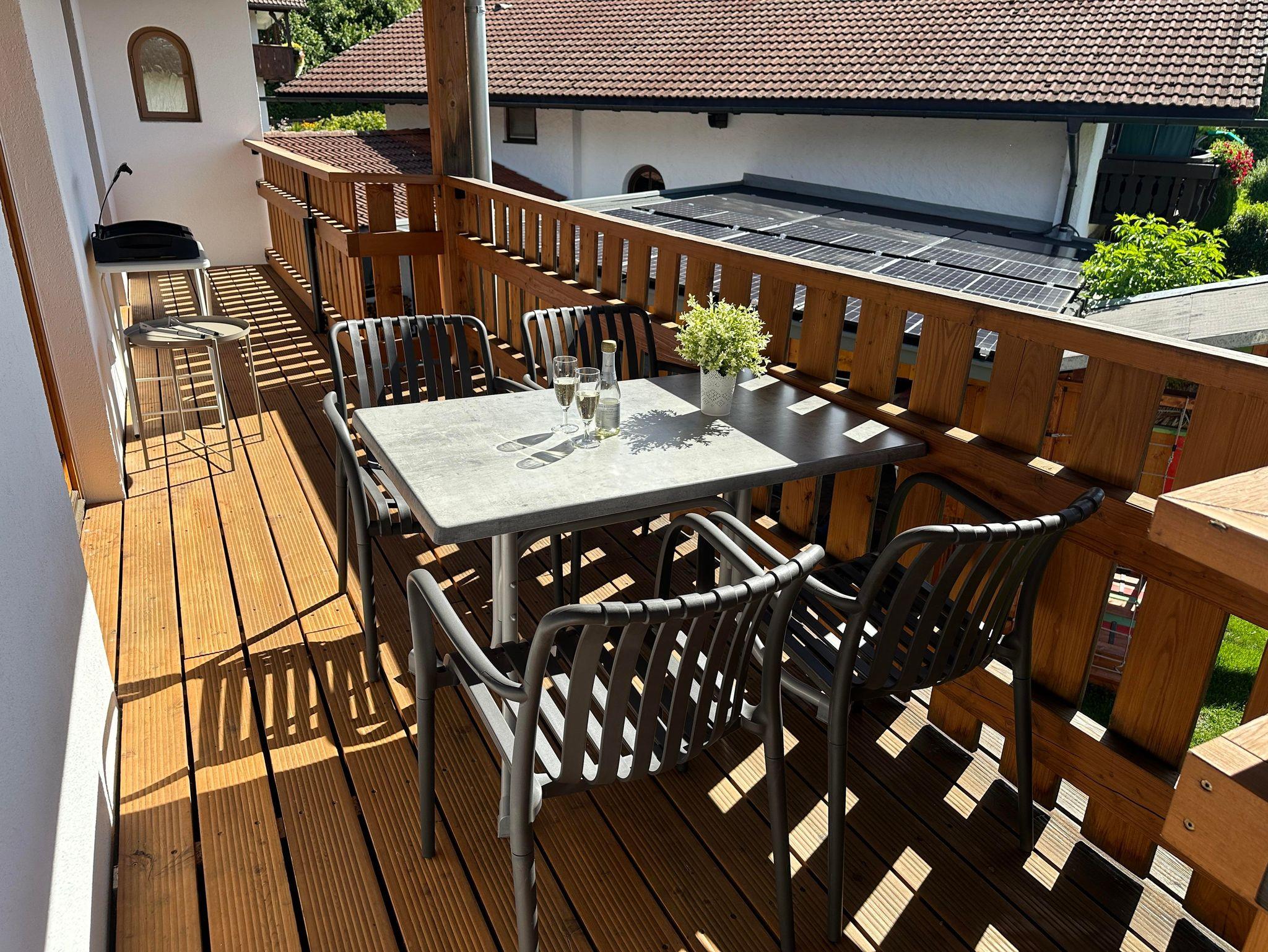 • Balkon mit Essbereich, Liege und Grill