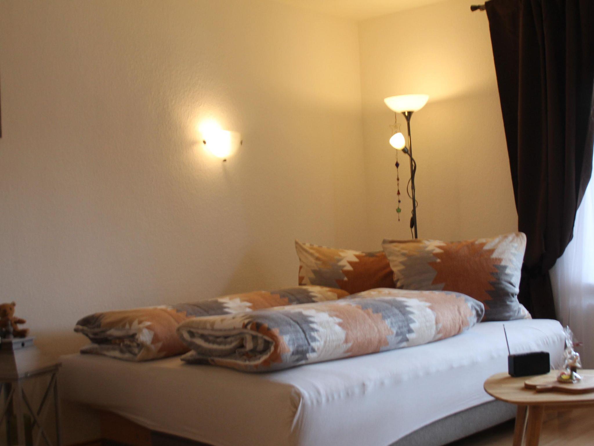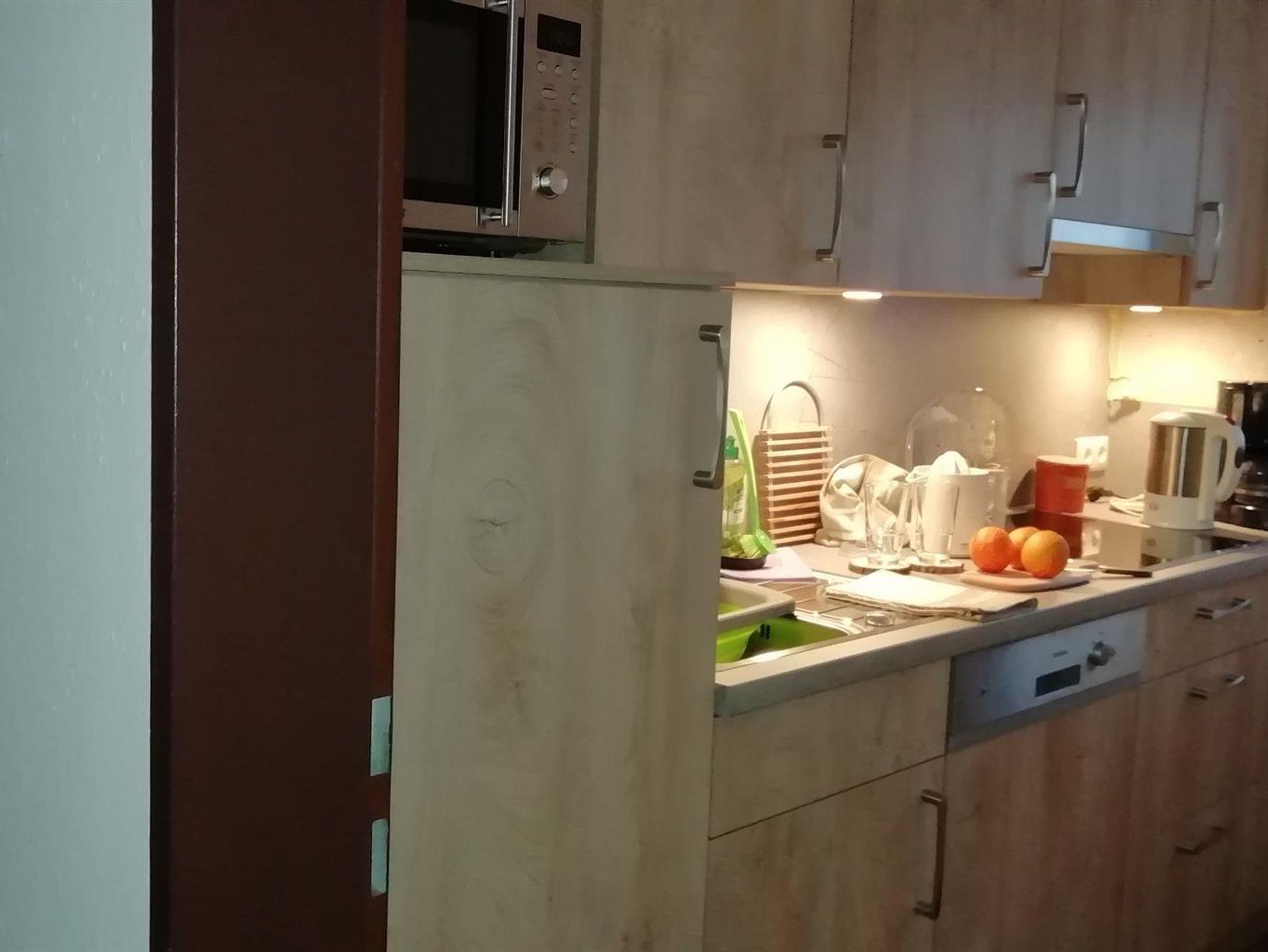 Im zentralgelegenen Wohnhaus mit 11 Parteien sind Badezimmer mit Duschgelegenheit und WC vorhanden. Ein gemütlicher Wohn- und Essraum bietet Platz für 4 Personen, die Couch gegenüber eines großen TV bietet auch Schlaffläche für 2 Erwachsene oder Kinder. Von hier sowie vom Schlafzimmer kommen Sie auf einen großen Balkon. Die nagelneue Kochküche ist ausgestattet mit allerneusten Geräten wie Spülmaschine, Kühlschrank mit Eisfach, Spüle, Kaffeemaschine, Wasser- & Eierkocher, allerlei Geschirr, Gläser und Kochutensilien. Direkt neben der Küche finden Sie ein Schlafzimmer mit Doppelbetten, großem Spiegelkleiderschrank und zwei Nachtkästchen.