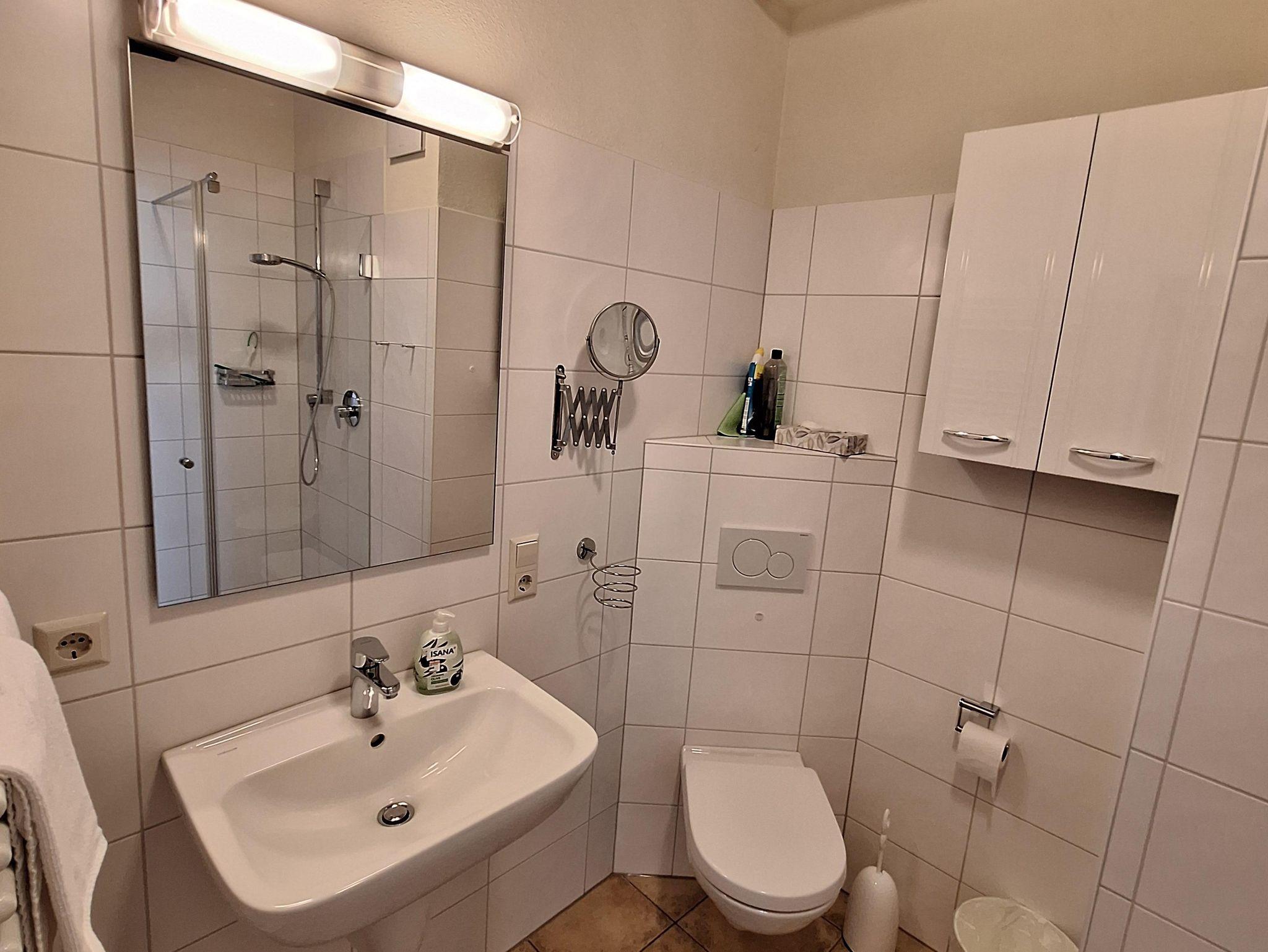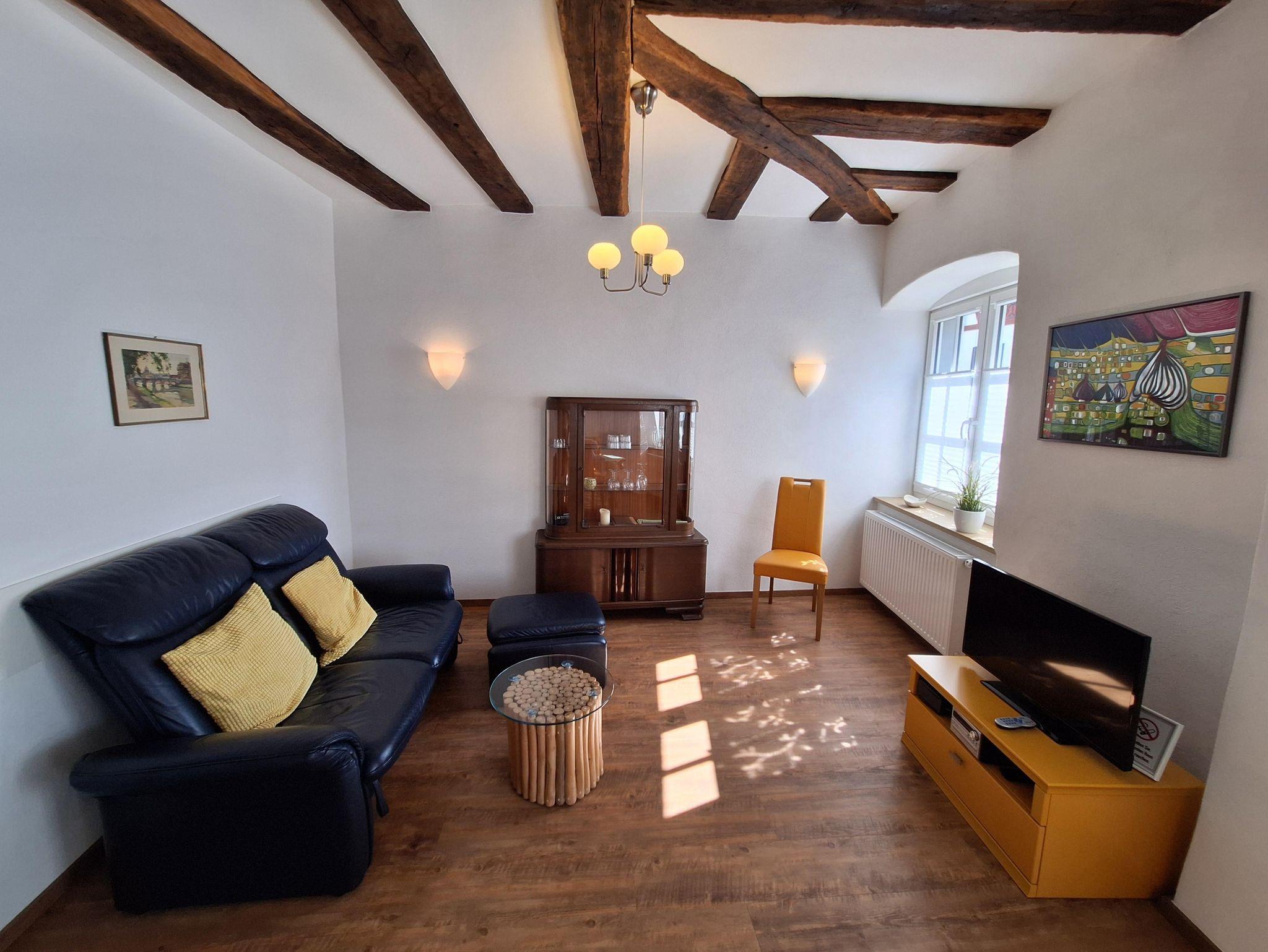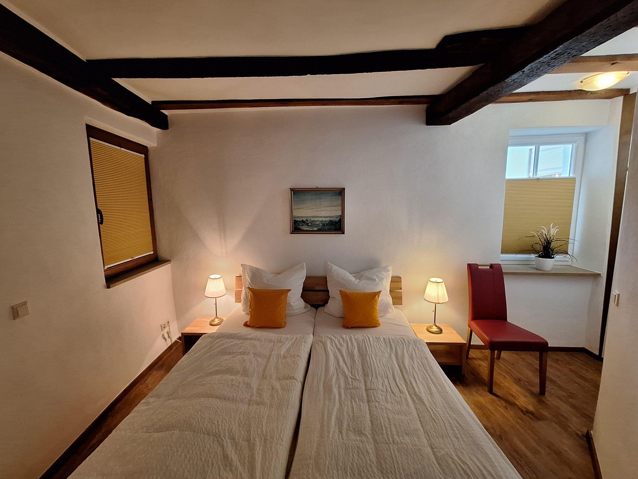 Die Ferienwohnung “Bergblick” befindet sich im Erdgeschoss des Hauses. Das Herzstück ist die kleine Wohn- und Essküche, gemütlich im Stil des historischen Hauses eingerichtet. In der Küche sind Ceranfeldherd, Backofen, Spülmaschine, Toaster, Wasserkocher und einem Kühlschrank mit Gefrierfach vorhanden. Im separaten Schlafzimmer befindet sich ein Doppelbett, für ruhige und erholsame Nächte. Bezogene Betten und Handtücher sind für uns eine Selbstverständlichkeit. Das Badezimmer ist mit einer ebenerdigen Dusche, einem WC sowie einem Handtuchwärmer und Fön ausgestattet.
