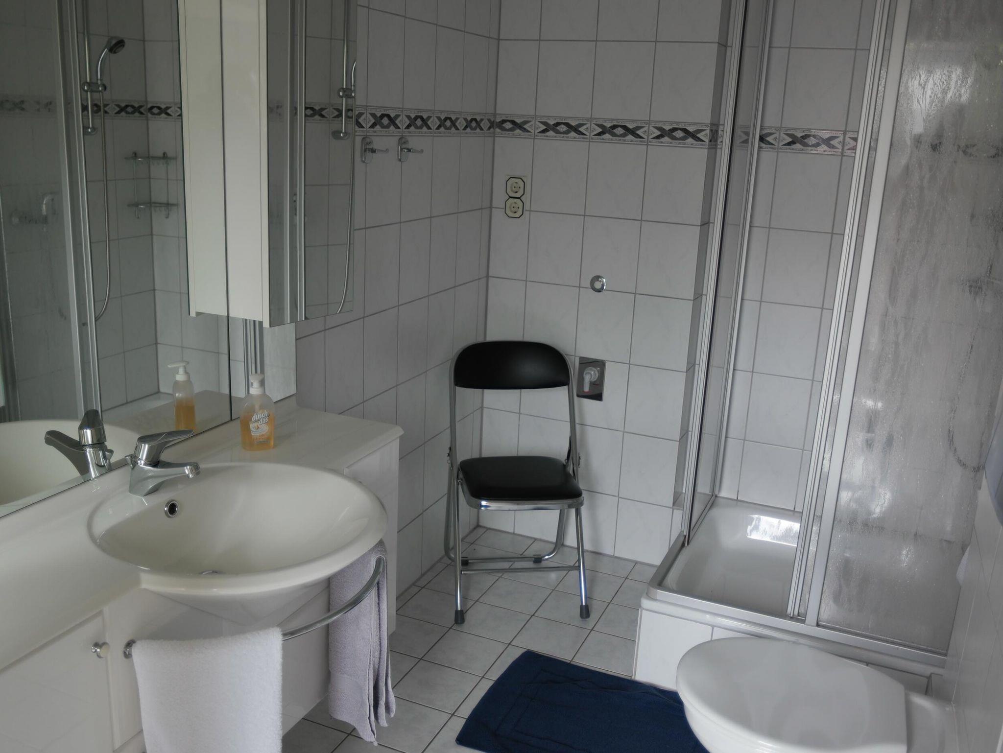 Die Wohnung liegt paterre, keine Stufen. Unmittelbar vor der Haustür ist ein PKW-Stellplatz.