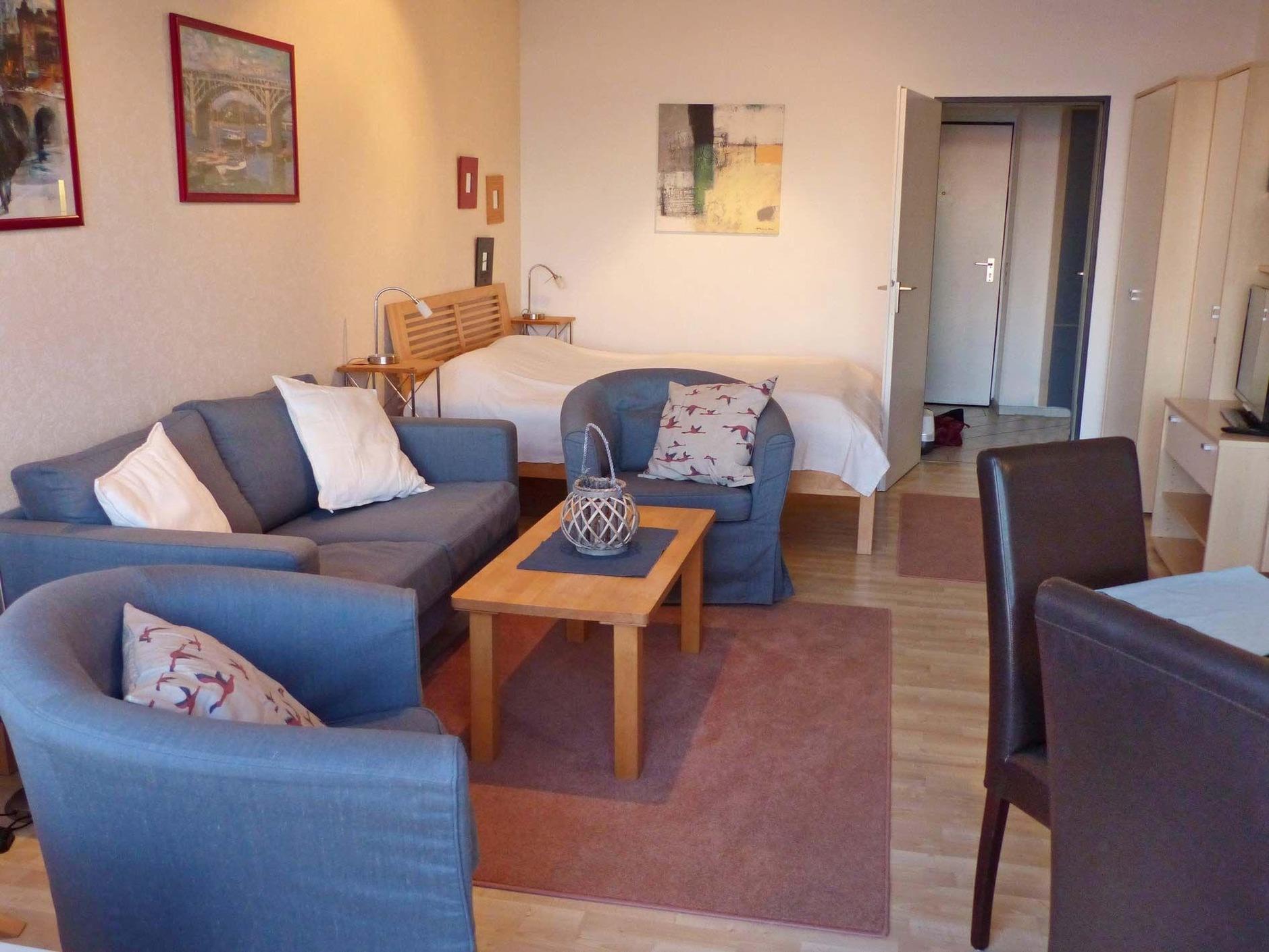 Die geschmackvoll eingerichtete Wohnung eignet sich für bis zu 2 Erwachsene und 2 Kinder oder 3 Erwachsene.