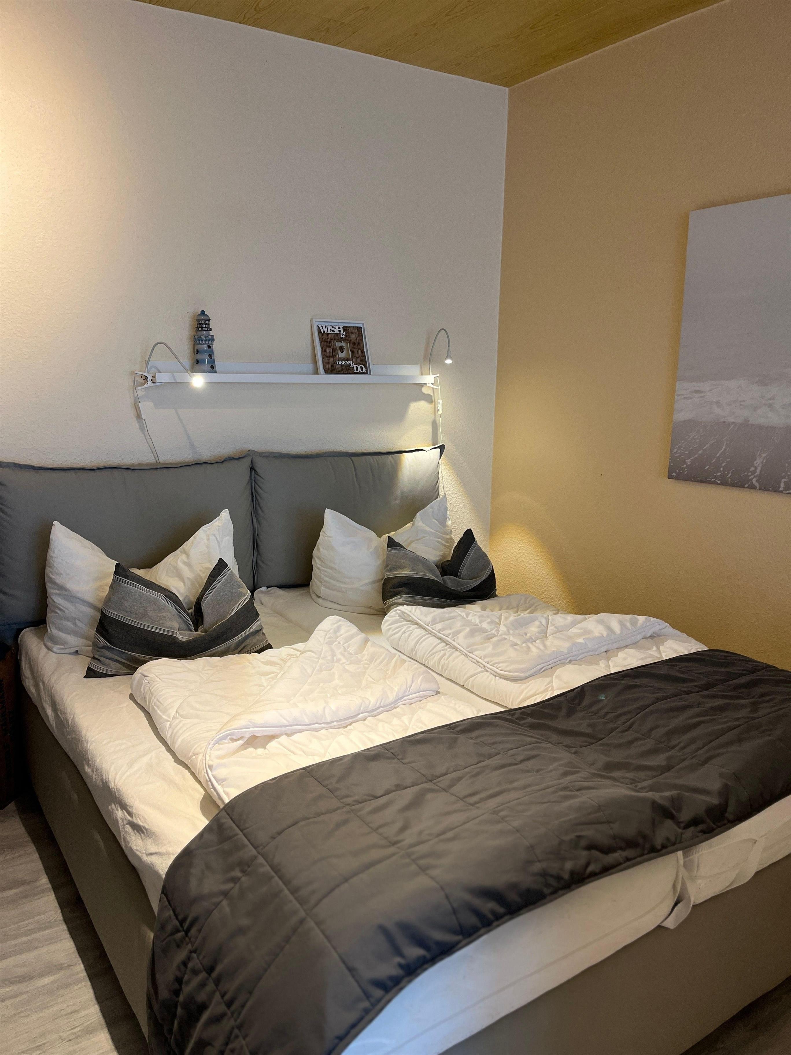 Die Räume sind hell und modern im maritimen Stil eingerichtet. Genießen Sie die Abende mit einem Glas Wein auf Ihrem Balkon.