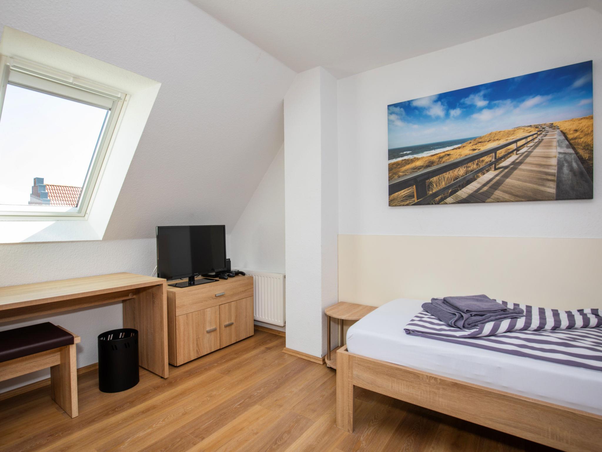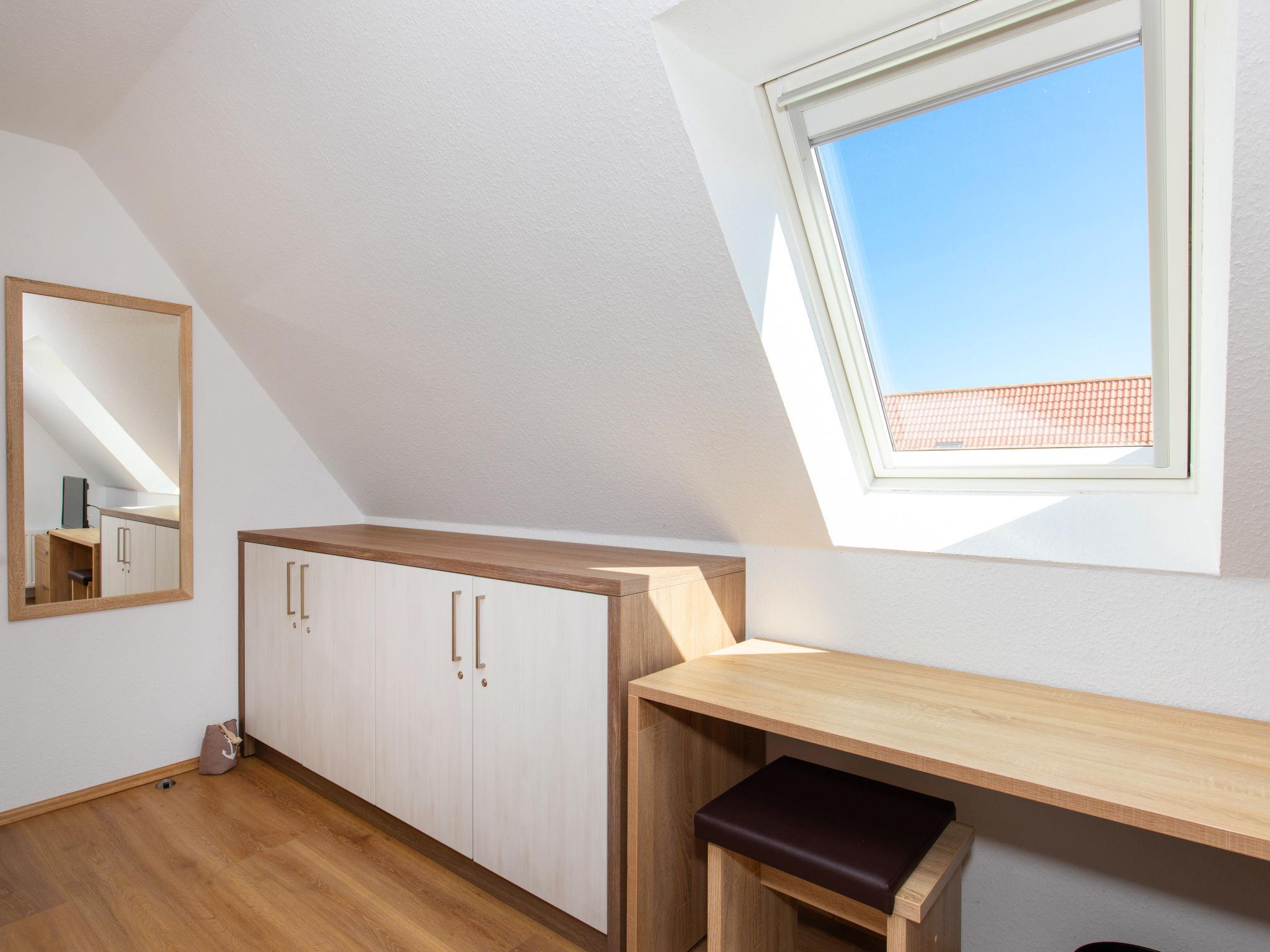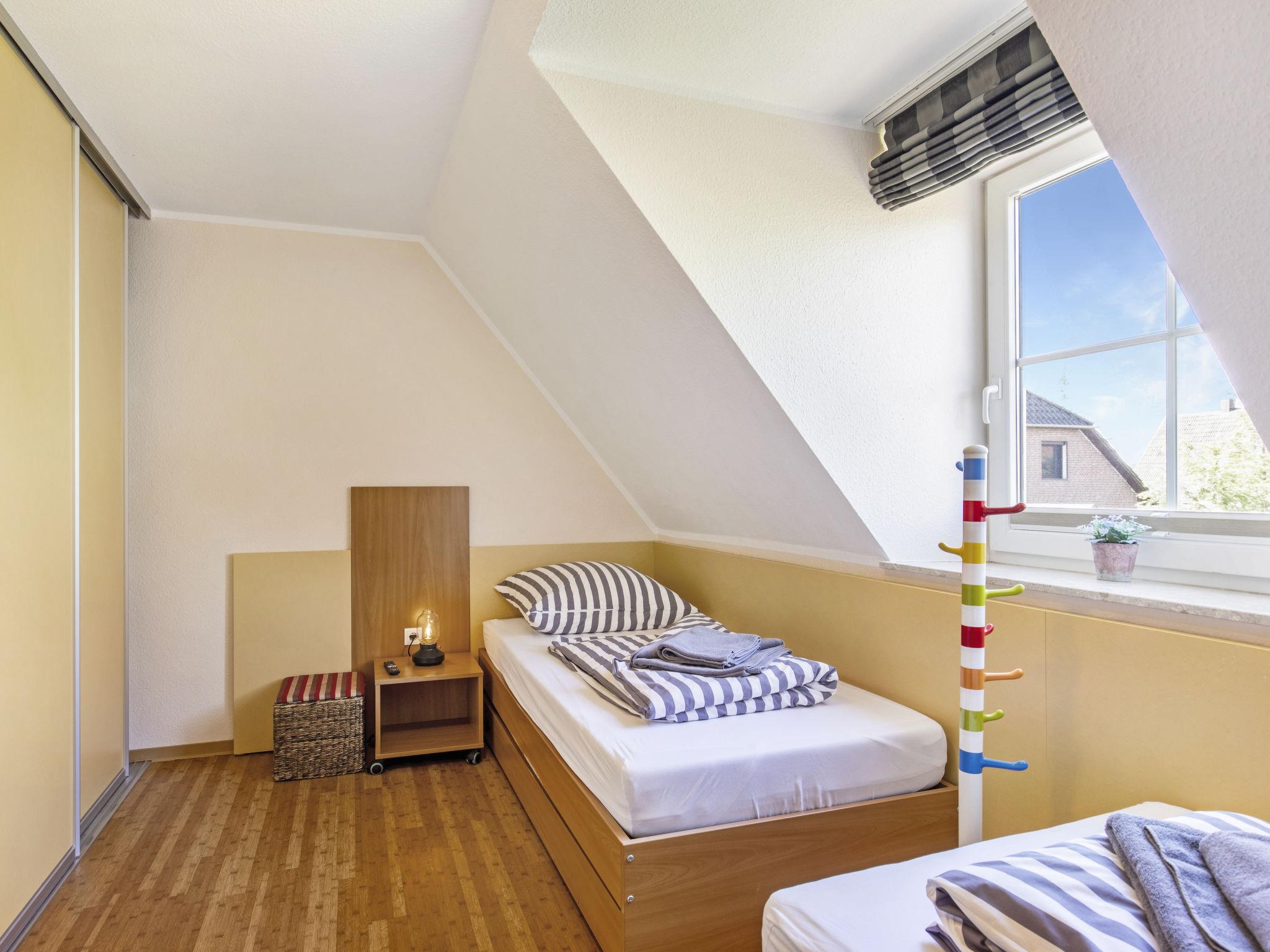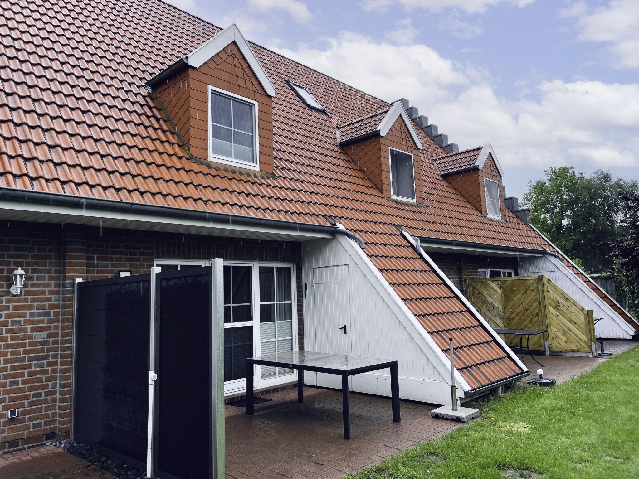 4-room terraced house 85 m2 on 3 levels. Comfortable and modern furnishings: large living/dining room with dining table and cable TV (flat screen), radio. Exit to the garden. Open kitchen (oven, dishwasher, 4 ceramic glass hob hotplates, kettle, microwave, electric coffee machine). Bath/WC. Gas heating. Upper floor: 1 room with 1 double bed (160 cm, length 200 cm), cable TV (flat screen). 1 room with 2 beds (80 cm, length 200 cm), cable TV (flat screen). Bath/WC. 2nd upper floor: 1 room with sloping ceilings with 1 bed (80 cm, length 200 cm), 1 sofabed (80 cm, length 200 cm), cable TV (flat screen). Terrace 16 m2. Terrace furniture, barbecue. Facilities: Internet (WiFi, free). Please note: non-smokers only.