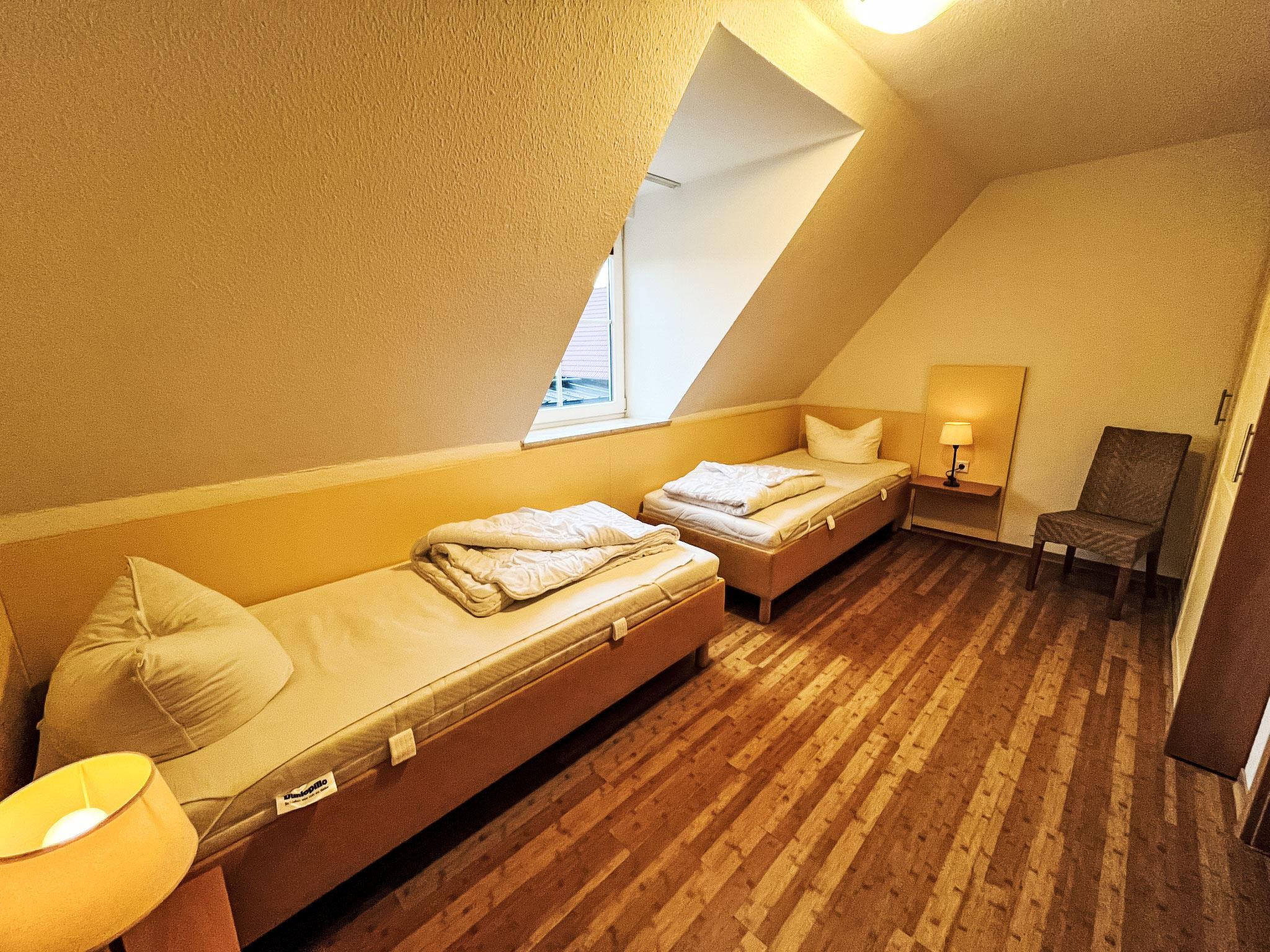 3-room terraced house 70 m2 on 2 levels. Comfortable and modern furnishings: large living/dining room with 1 double sofabed, dining table and cable TV (flat screen), radio. Exit to the garden, to the terrace. Kitchen (oven, dishwasher, 4 ceramic glass hob hotplates, kettle, microwave, electric coffee machine). Shower/WC. Gas heating, underfloor heating. Upper floor: 1 room with 1 double bed (180 cm, length 200 cm). 1 room with 2 beds (90 cm, length 200 cm). Shower/WC. Terrace 16 m2. Terrace furniture, barbecue, deck chairs (2), box-room. Facilities: children's high chair, baby cot. Internet (WiFi, free). Please note: non-smokers only. Smoke alarm.