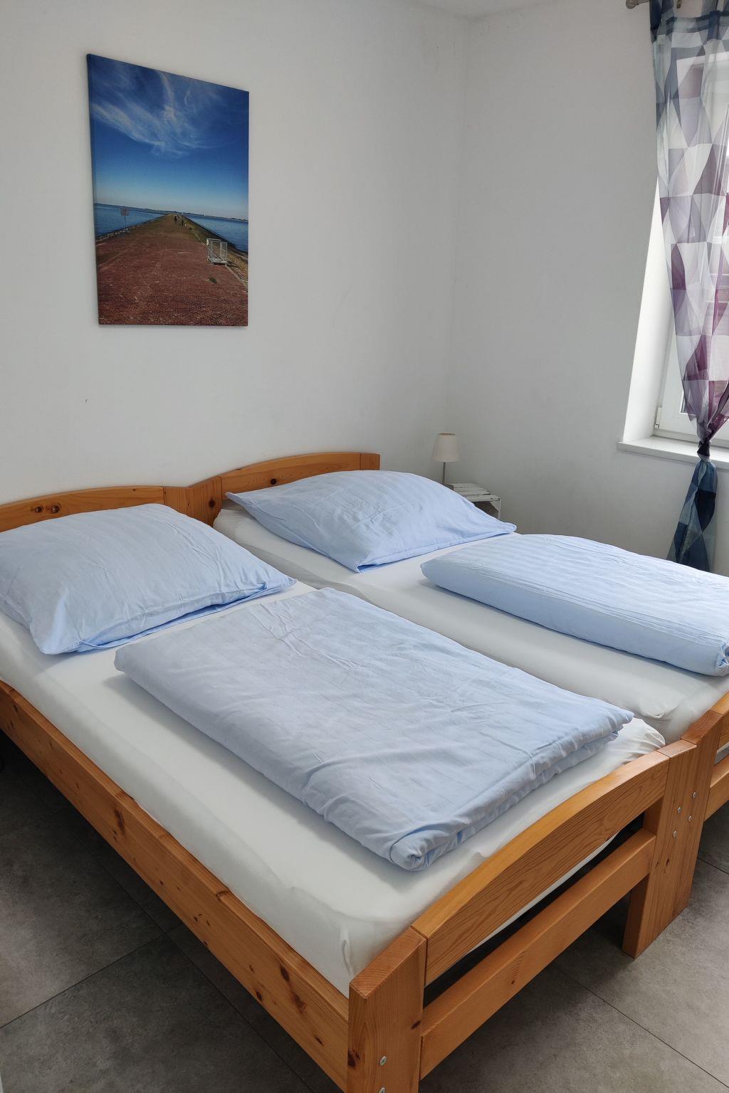 Inside the holiday flat, you will find a well thought-out layout and a variety of amenities to make your stay as pleasant as possible. In addition to four cosy bedrooms, including three with comfortable double beds and one with a single bed, there are two practical bathrooms with a shower. For added convenience, there is a shared washing machine and tumble dryer in the building. The open-plan kitchen is fully equipped and has everything you need to prepare delicious meals, including a ceramic hob, dishwasher and coffee machine.