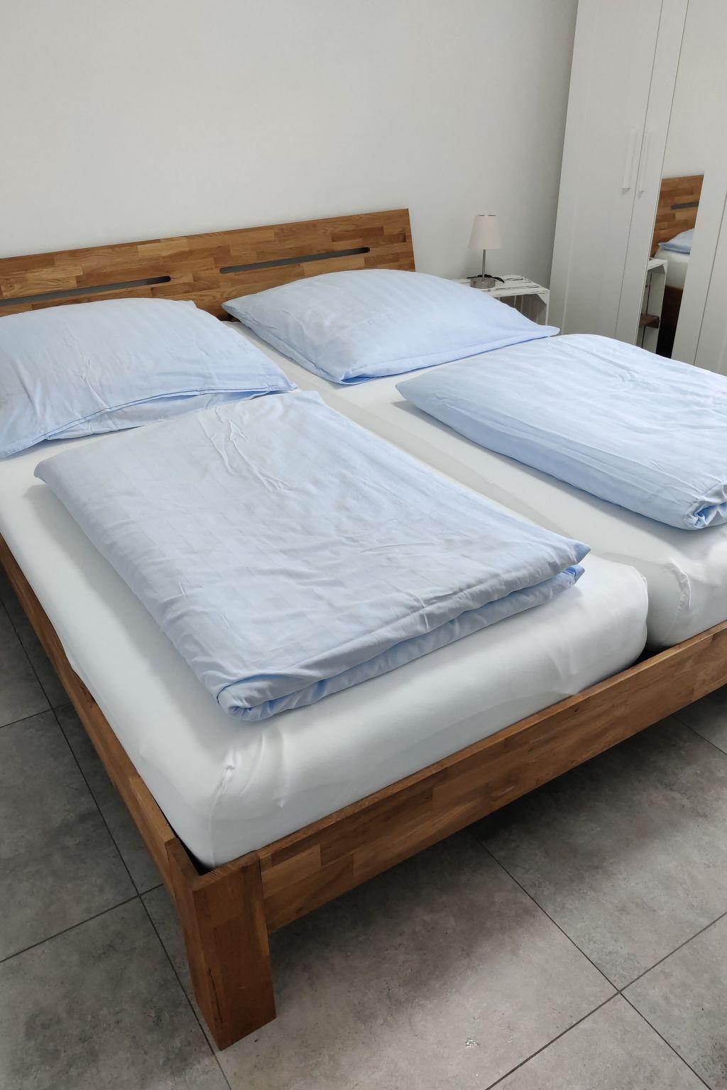 The living areas are tastefully decorated to make your stay as comfortable as possible. The holiday flat is spread over two floors and offers plenty of space and comfort. On the ground floor you will find a cosy bedroom with a single bed and a practical bathroom with shower and WC. The shared living and dining area invites you to linger, while the well-equipped open-plan kitchen offers all the amenities you need for self-catering - including a ceramic hob, coffee machine and dishwasher. The upper bedrooms with two double beds and a further single bed as well as another bathroom round off the interior, while the washing machine and tumble dryer are available for communal use in a separate room on the upper floor.