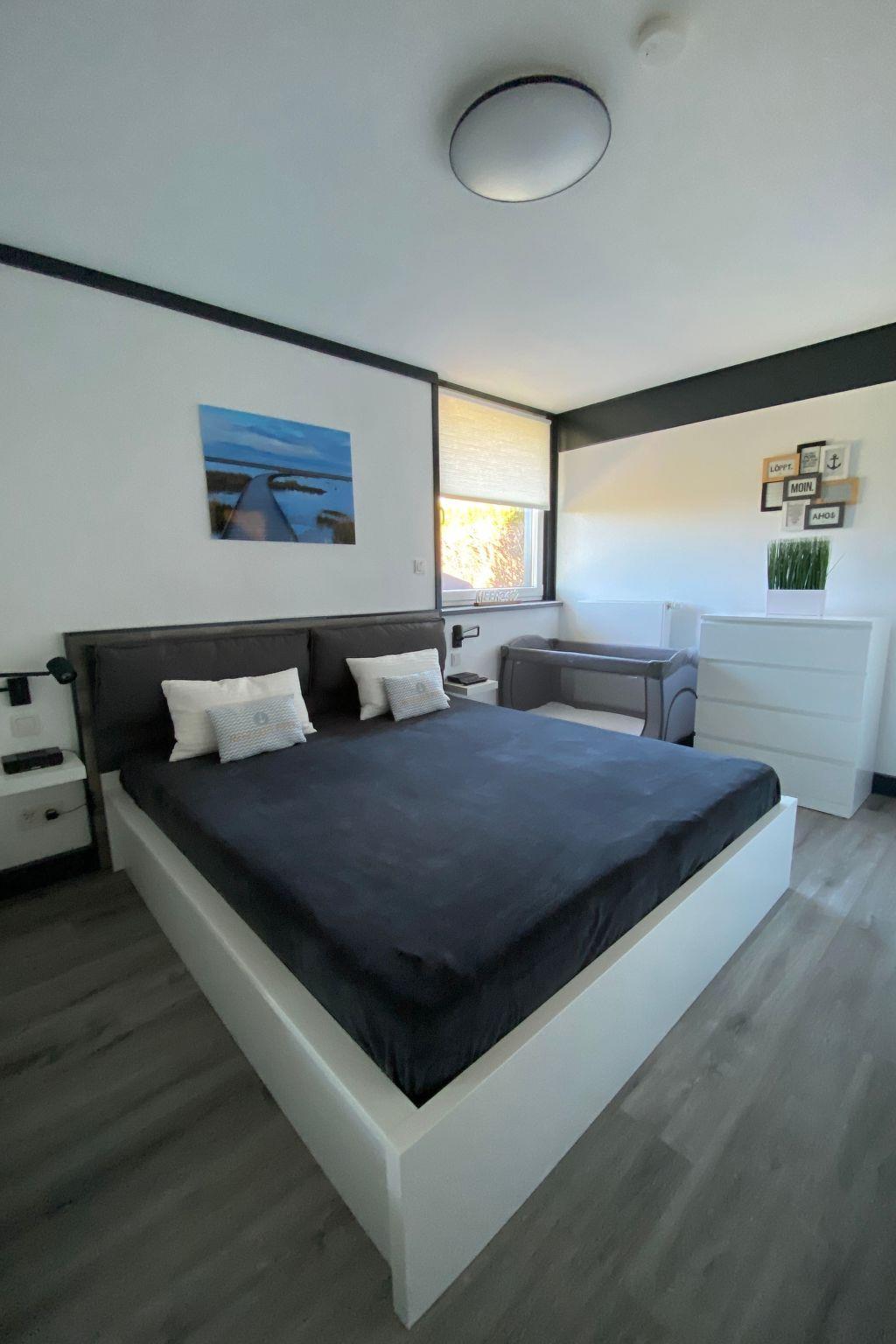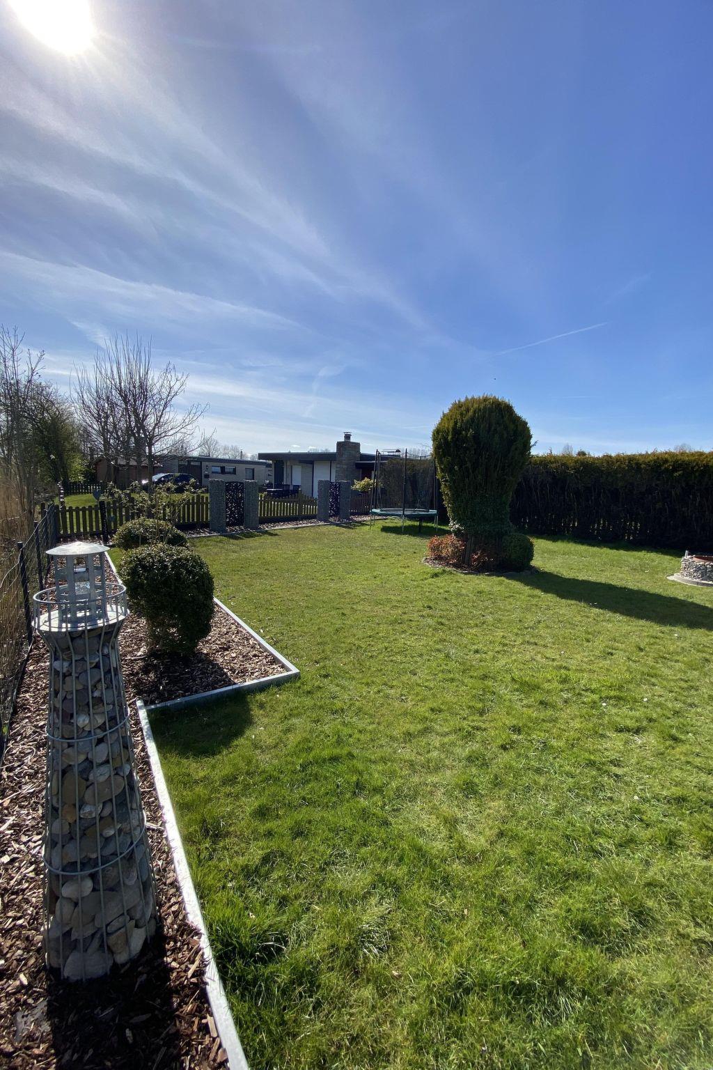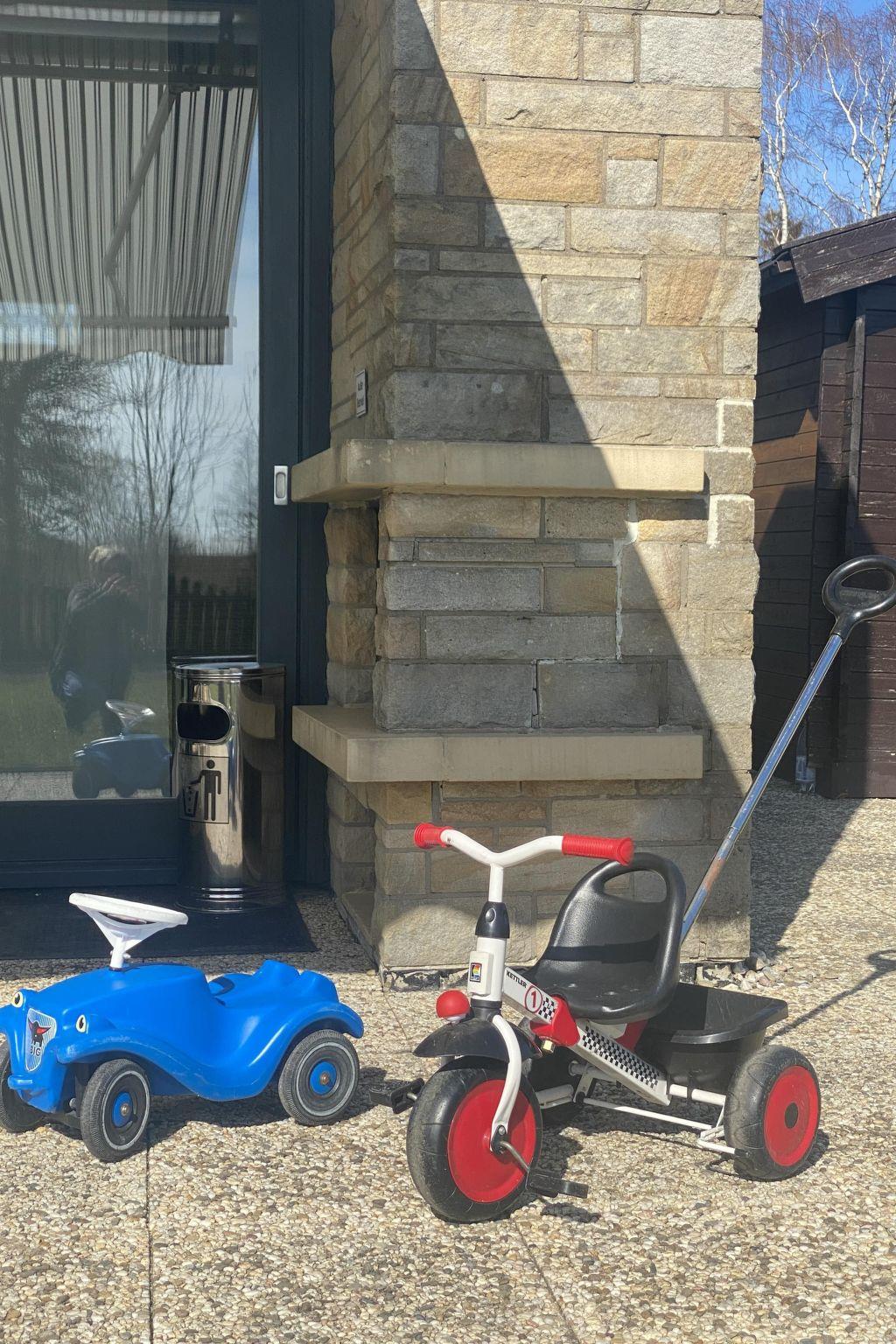 The holiday home has a spacious meadow for private use, a large furnished terrace with table and chairs, beach chair and sun loungers. There is also an in-house barbecue and fire pit as well as an ashtray for smoking on the terrace. A beer tent set, a handcart and various play equipment for the large garden (table tennis table, garden trampoline, football goals and balls, boules, bobby car, tricycle, toddler bike, ...) are also available for free, carefree use. There is also a garden shed where bicycles, pushchairs etc. can be stored. The garden is completely fenced in or enclosed by a dense hedge.