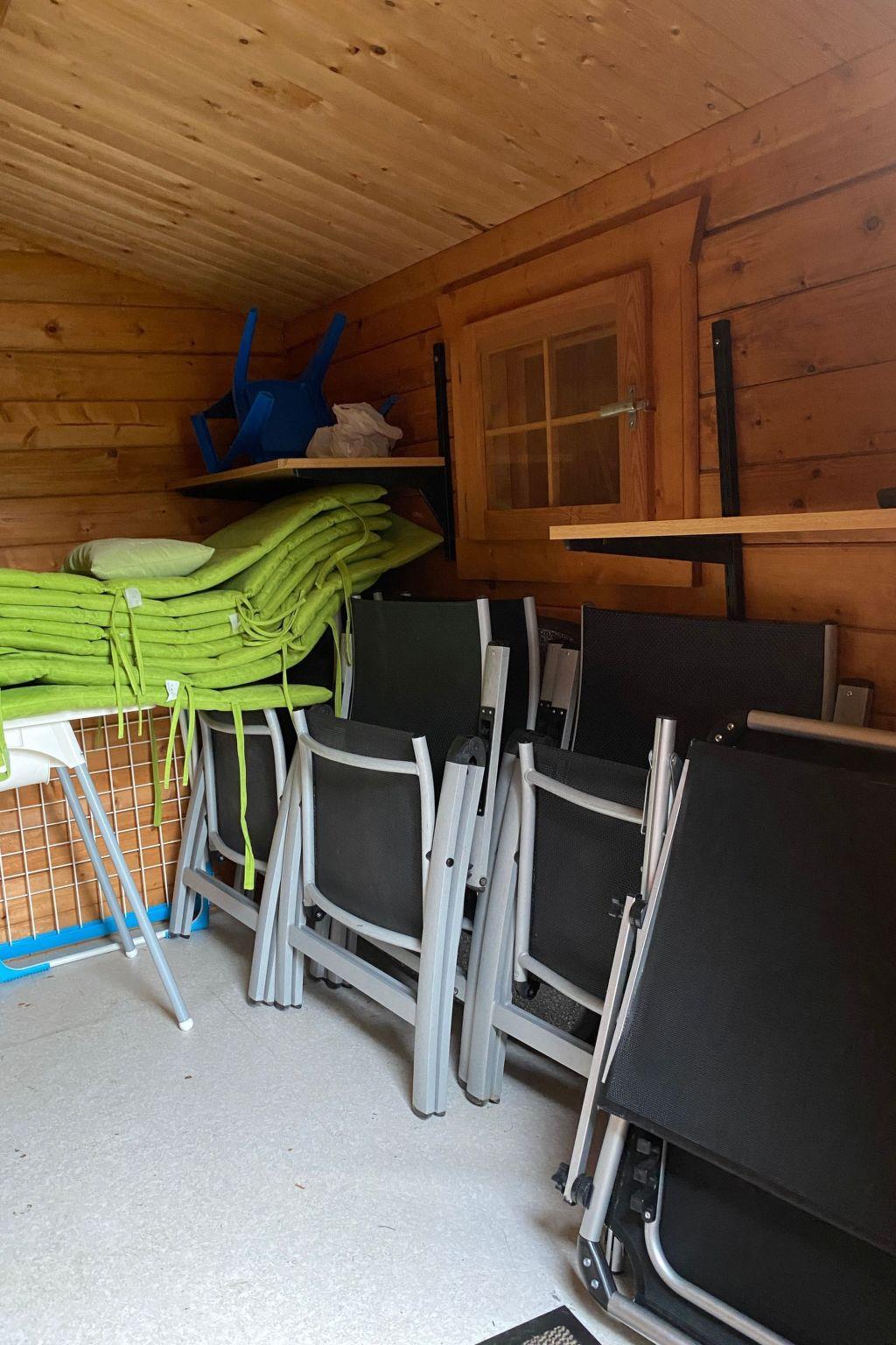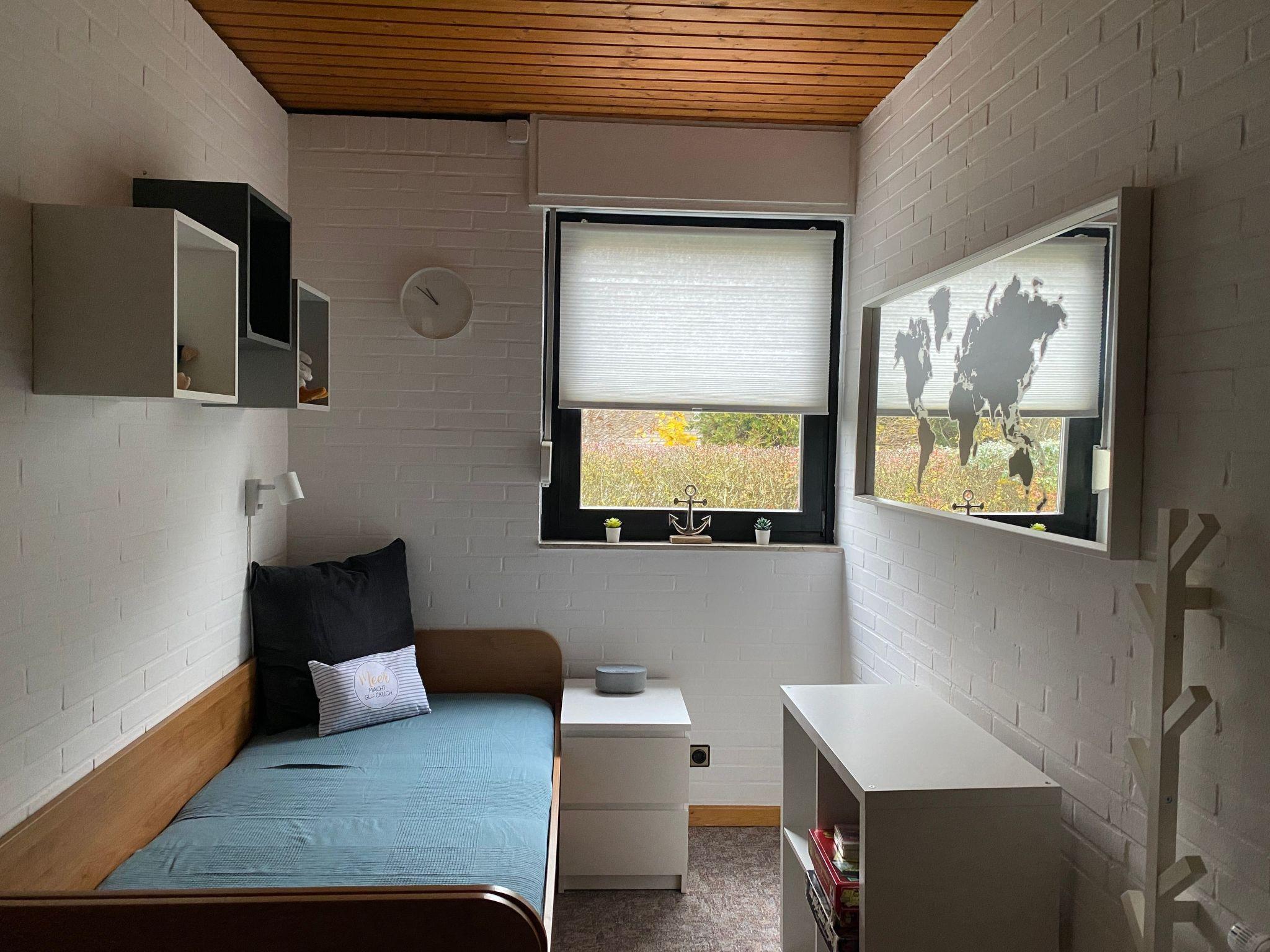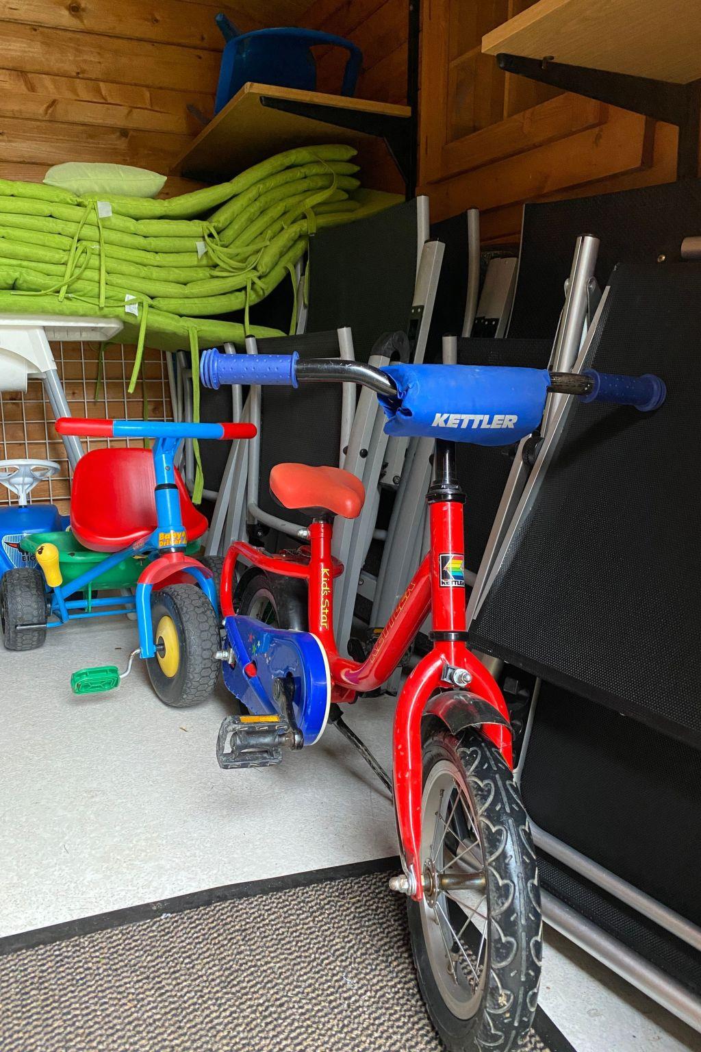 The holiday home has a spacious meadow for private use, a large furnished terrace with table and chairs, beach chair and sun lounger. There is also an in-house barbecue and fire pit. Various play equipment for the large garden (garden trampoline, balls, bobby car, tricycle, toddler bike, ...) are also available for free, well-maintained use. There is also a garden shed where bicycles, pushchairs etc. can be stored. The garden is completely fenced in or enclosed by a dense hedge.