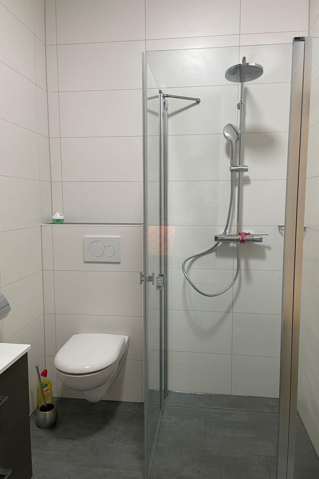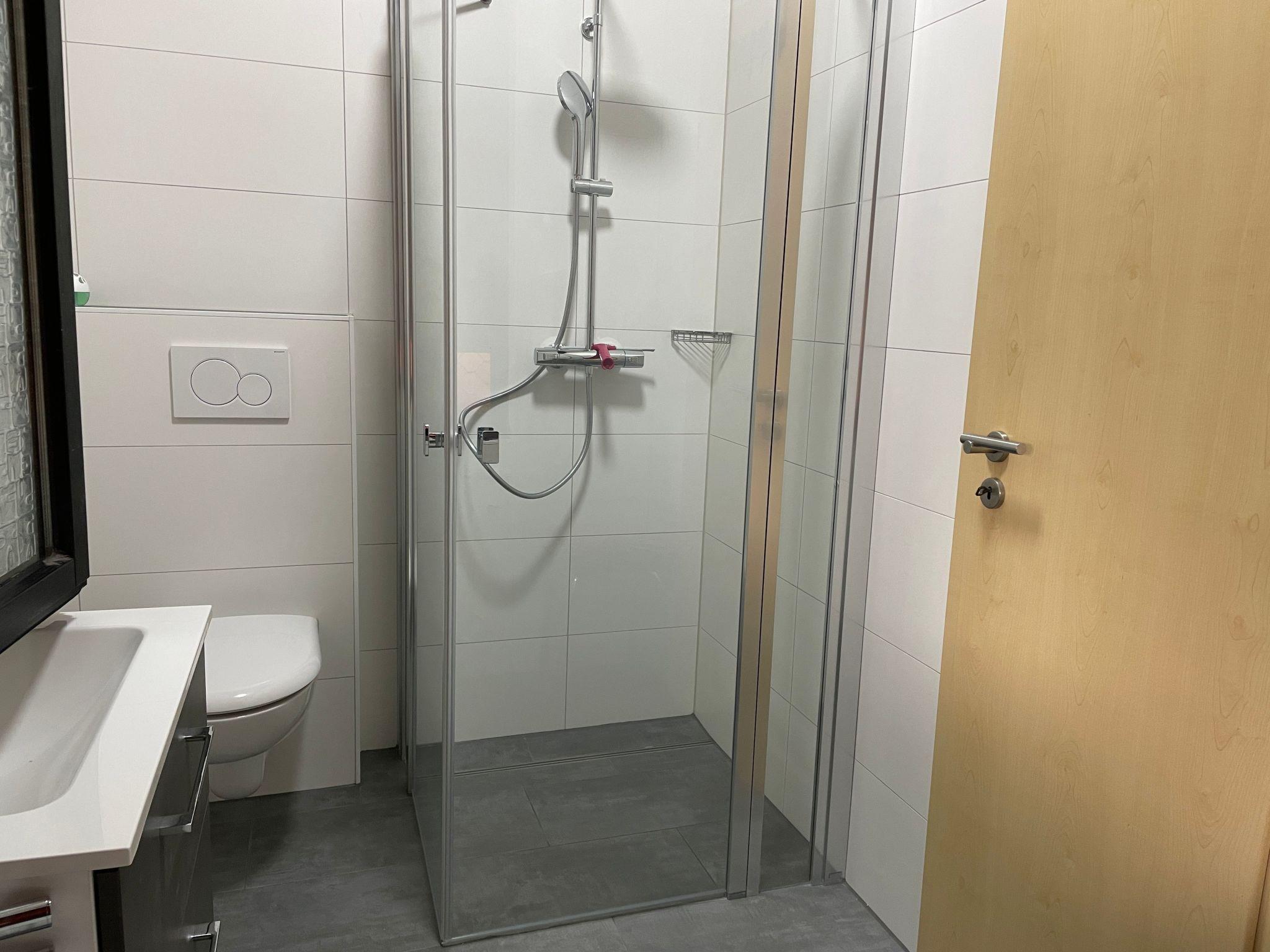 The holiday house with high-quality amenities on a fenced site provides around 62m² of living space and consists of two bedrooms, an equipped kitchen with a dishwasher, and a living room with a suite and a TV. One bedroom is furnished with a double bed and the other with three single bed (incl. one raised bed). A child’s bed and a highchair are available. The bedroom windows are fitted with blinds. The bathroom has a shower and WC. Terrace furniture and loungers are provided. There is a washing machine in the storage room.