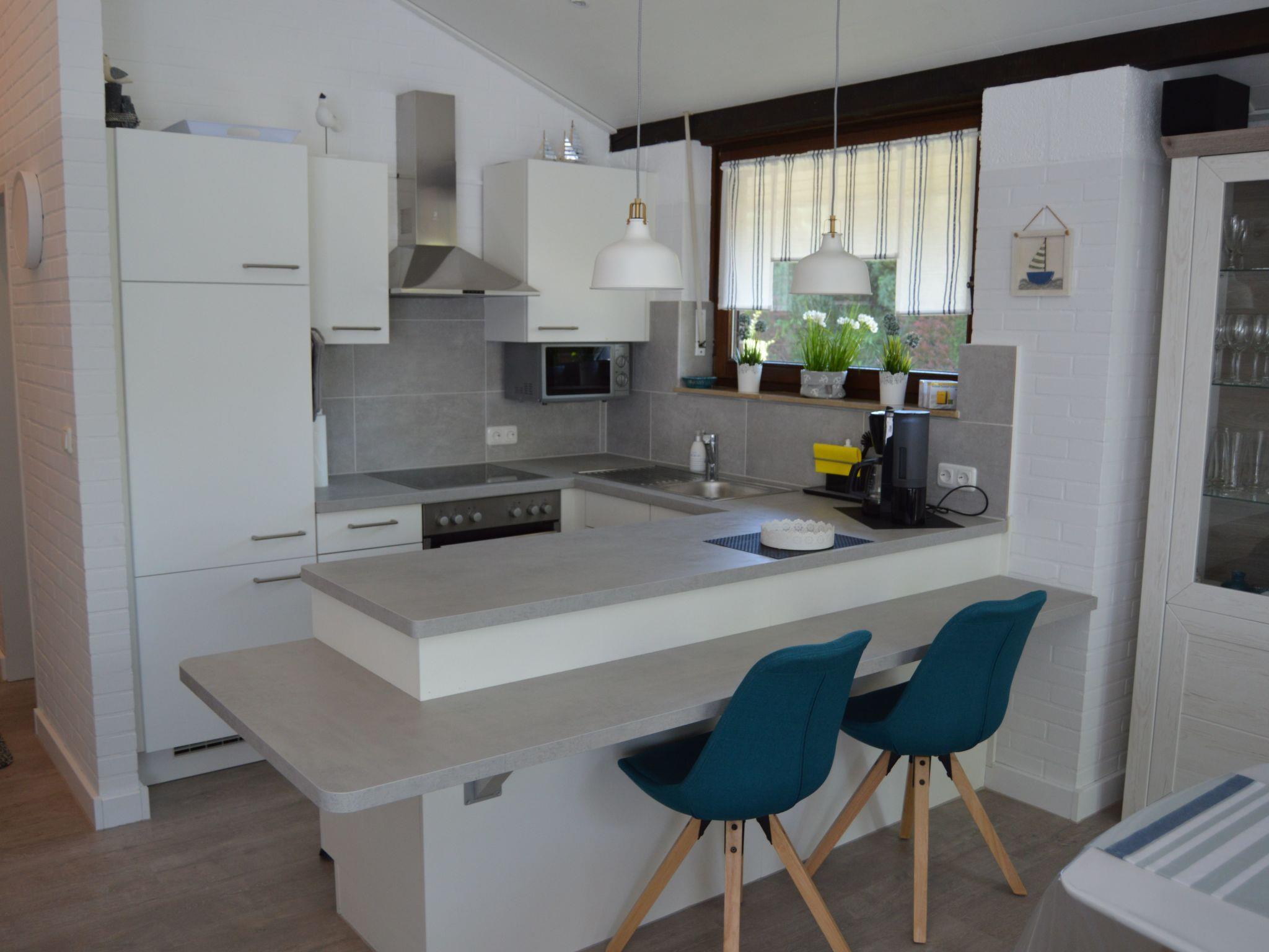Inside, the Ferienhuus has a maritime-style, bright and open-plan living area with high ceilings that create a particularly spacious feeling. The fully equipped kitchen with oven, fridge, ceramic hob, dishwasher and other amenities leaves nothing to be desired and is complemented by cosy bedrooms equipped with TVs and fly screens. All rooms can be completely darkened so that you can sleep in.