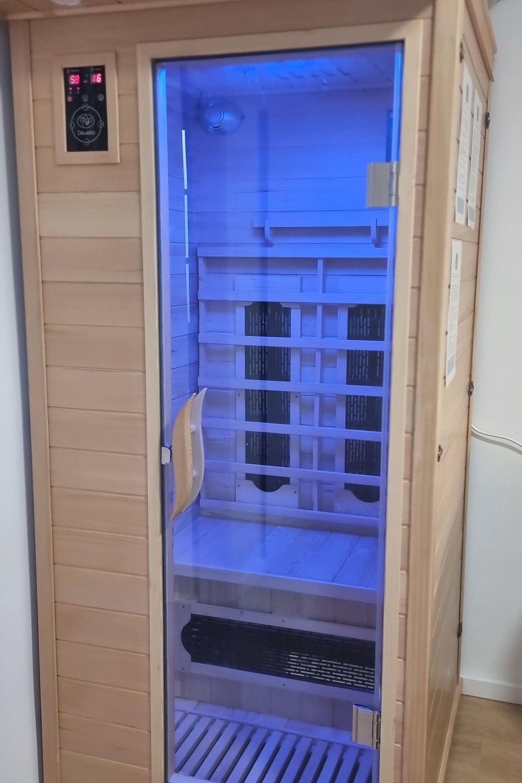 The interior of the flat has been carefully selected to optimise your relaxation time. You can spend relaxing evenings in the cosy living room with dining table, pull-out couch, TV and music system. The kitchen leaves nothing to be desired with a Nespresso capsule machine, a kettle and a Sodastream. A unique highlight is the bedroom with a comfortable queen-size double bed and an integrated infrared cabin, which ensures soothing moments. Free Wi-Fi rounds off the high-quality facilities.