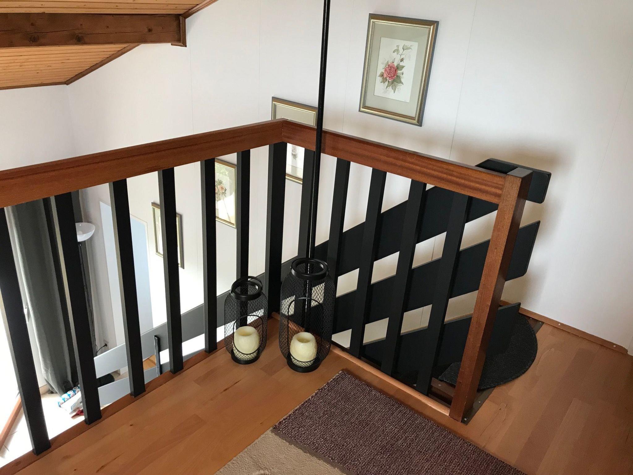 The comfortable, detached holiday home (75 square metres of living space) is designed for 4 people. It is a solid house with an upper floor and gallery. There is WLAN throughout the house. There are two bedrooms, one on the ground floor and one on the upper floor. Both bedrooms are furnished with double beds, wardrobe and satellite TV. In the living room there is a large L-shaped sofa, an armchair and a 50-inch TV. The L-shaped kitchenette is fully equipped. From the seating area (bench and 2 chairs) you have a marvellous view of the lake. The bathroom is on the ground floor and has a washbasin and WC, a large shower cubicle (90x120cm) and a washing machine.