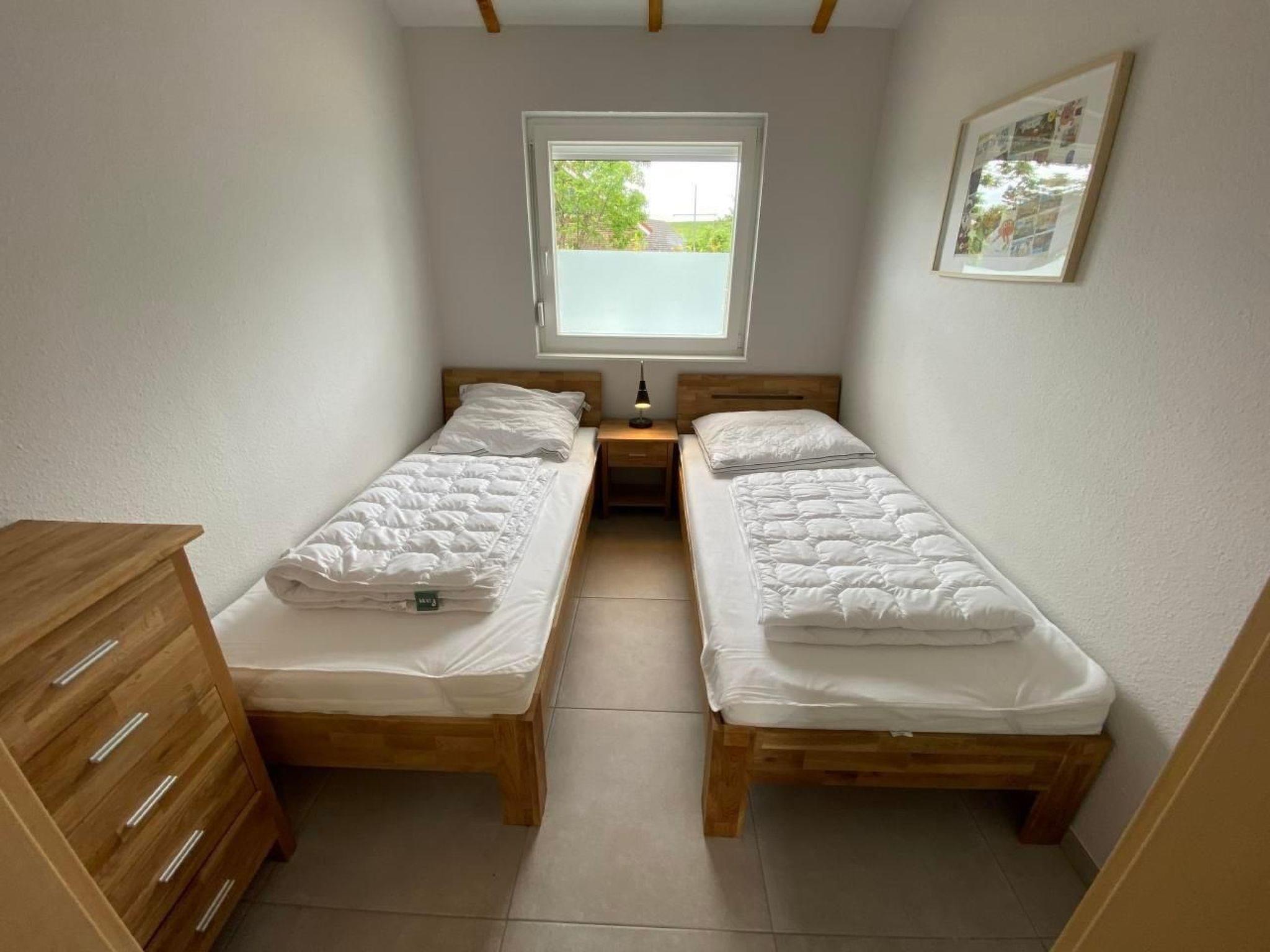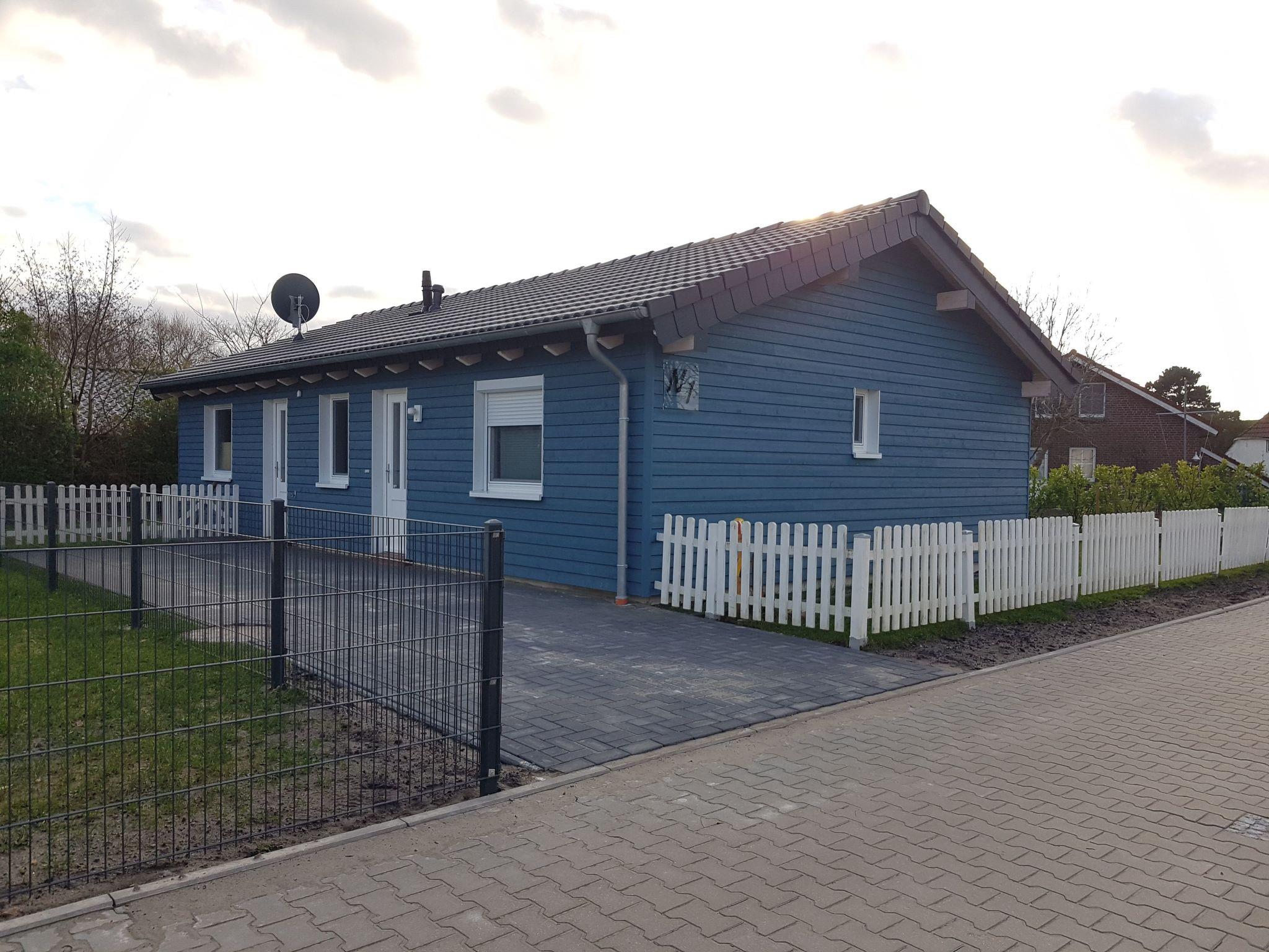 New build!!! Detached, ground floor bungalow (built June 2020) for 6 people, own approx. 313 m² plot, fenced, fully tiled, underfloor heating in all rooms. 3 bedrooms with beds at ground level: 1 bedroom with double bed 180 x 200, 1 bedroom with 2 x single bed 90 x 200, 1 bedroom with double pull-out couch/sofa bed, large living room with 6.5 m window front to the floor, 1 bathroom and 1x guest toilet with walk-in shower, covered sun terrace with garden furniture and parasol, 2 parking spaces at the house, fully equipped fitted kitchen with dishwasher, microwave, oven and ceramic hob. The house is located in the holiday village Eckwarderhörne in the immediate vicinity of the dyke, the ferry pier (including passenger / bicycle ferry to Wilhelmshaven) and a 50,000 square metre inland lake belonging to the holiday village (with an approx. 500 square metre sandy lawn directly on the inland lake, swimming pontoon and jetties).The Eckwarderhörne lido with its beach hall, lighthouse, ferry landing stage and starting point for guided mudflat walks is about 800 m away. In the idyllic holiday village, away from the traffic, there is the "To'n Spieker" dyke inn, bicycle hire, children's playground and a 1,000 m² play area with beach volleyball court, badminton court, basketball hoop, outdoor table tennis table, sandpit and swings.