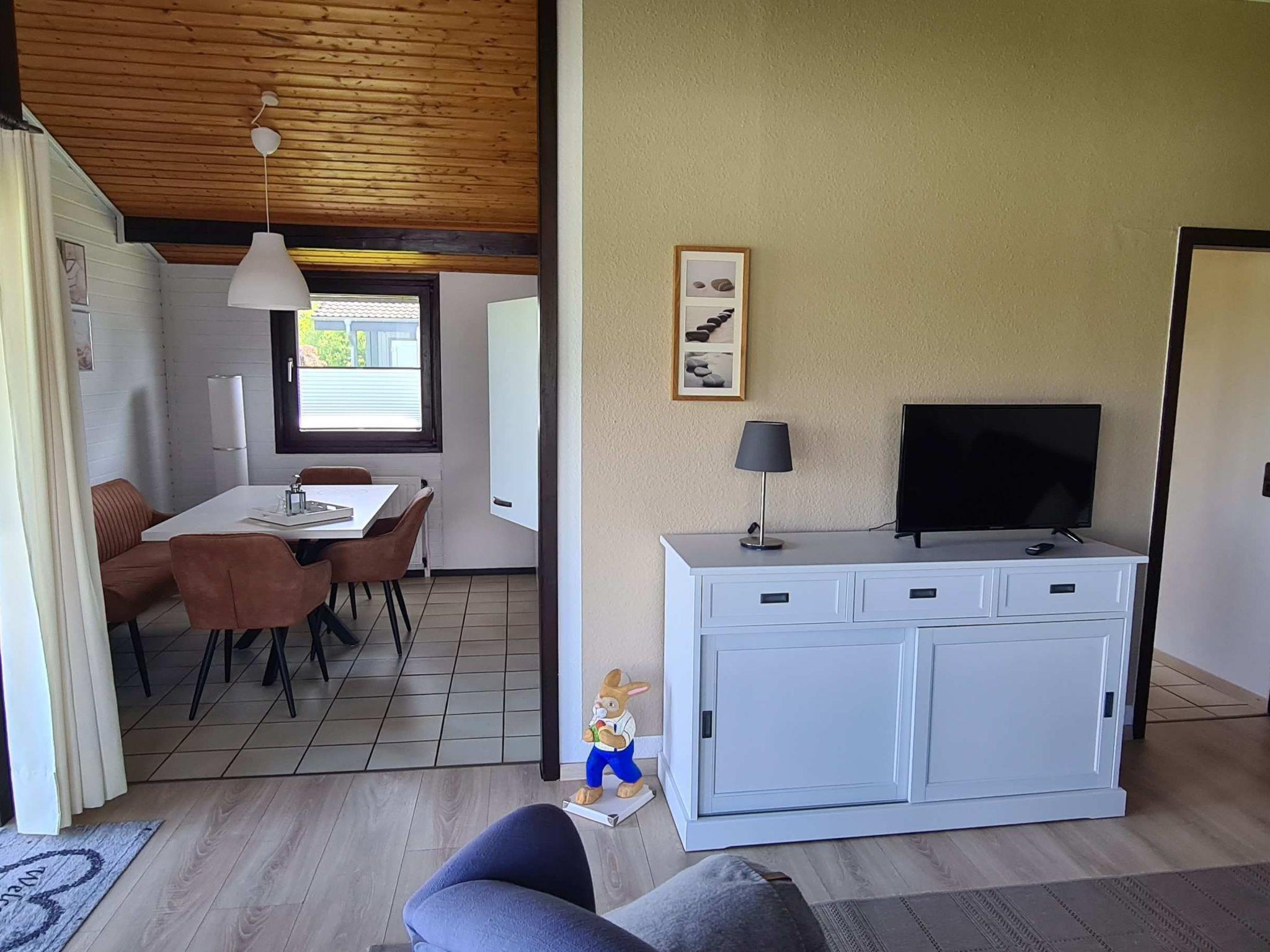 Detached, ground-floor bungalow directly on the lake, lake view for 5 people, own approx. 350 square metre property-2 bedrooms: 1 bedroom with double bed 1.80 x 2.00 m, 1 bedroom with 2 x single bed 0.90 x 2.00 m + 1x bunk bed 0.90 x 2.00 m (accessible via ladder)-large living room with 6.5 m window front down to the floor-covered sun terrace with garden furniture and parasol-2 parking spaces at the house-fully equipped fitted kitchen. There is also a separate, lockable storage room - free WLAN in the house. Internet TV, also possible with your own account: Amazon Video, Netflix, Disney+, etc. The house is located in the holiday village Eckwarderhörne in the immediate vicinity of the dike, the ferry dock (including passenger / bicycle ferry to Wilhelmshaven) and a 50,000 square metre inland lake belonging to the holiday village (with an approx. 500 square metre sandy lawn directly on the inland lake, swimming pontoon and jetties).The Eckwarderhörne lido with its beach hall, lighthouse, ferry landing stage and starting point for guided mudflat walks is about 800 m away. The holiday village is idyllically situated away from the traffic and has the "To'n Spieker" dyke inn, bicycle hire, children's playground and a 1,000 m² play area with beach volleyball court, badminton court, basketball hoop, outdoor table tennis table, sandpit and swings.