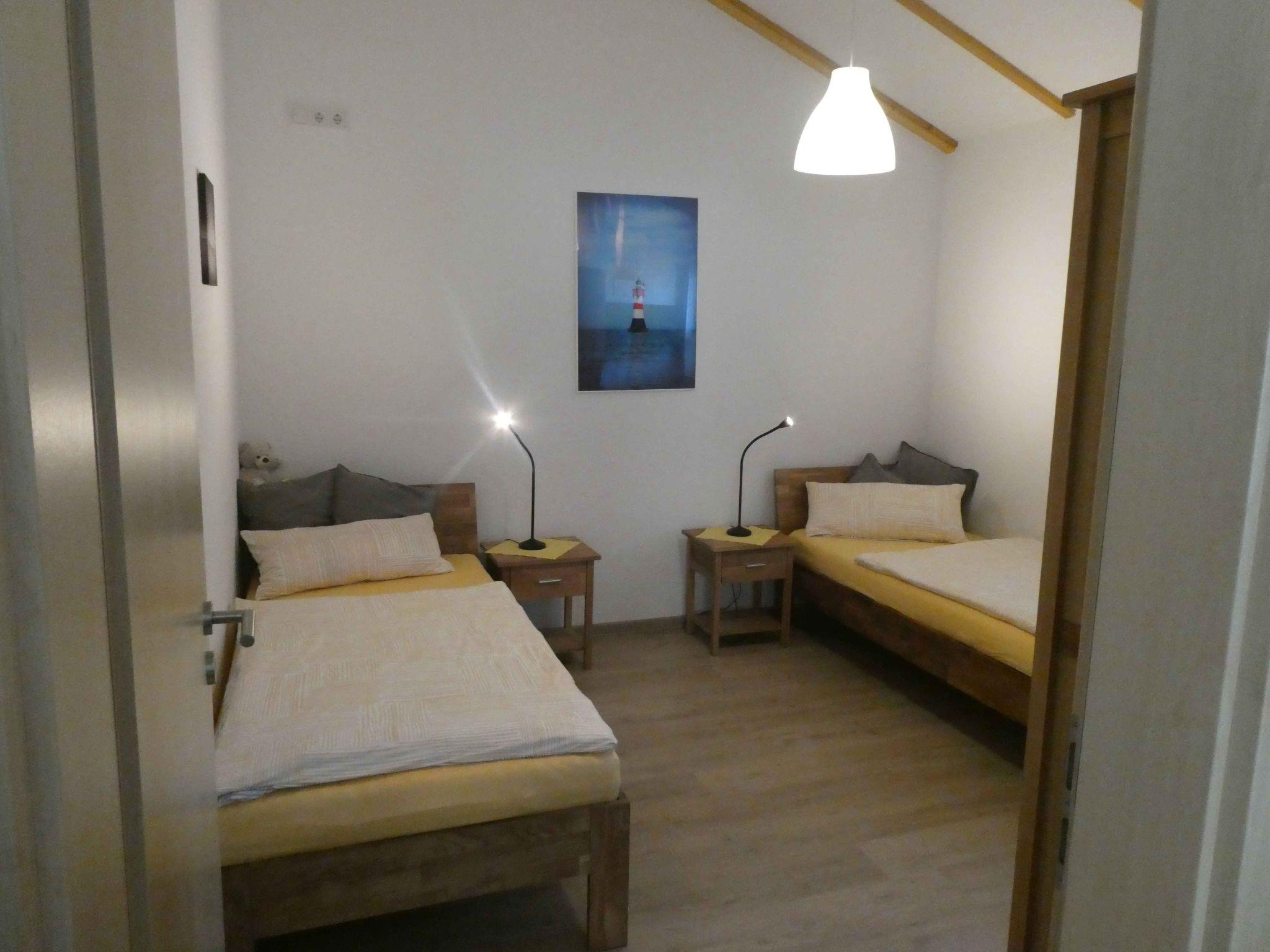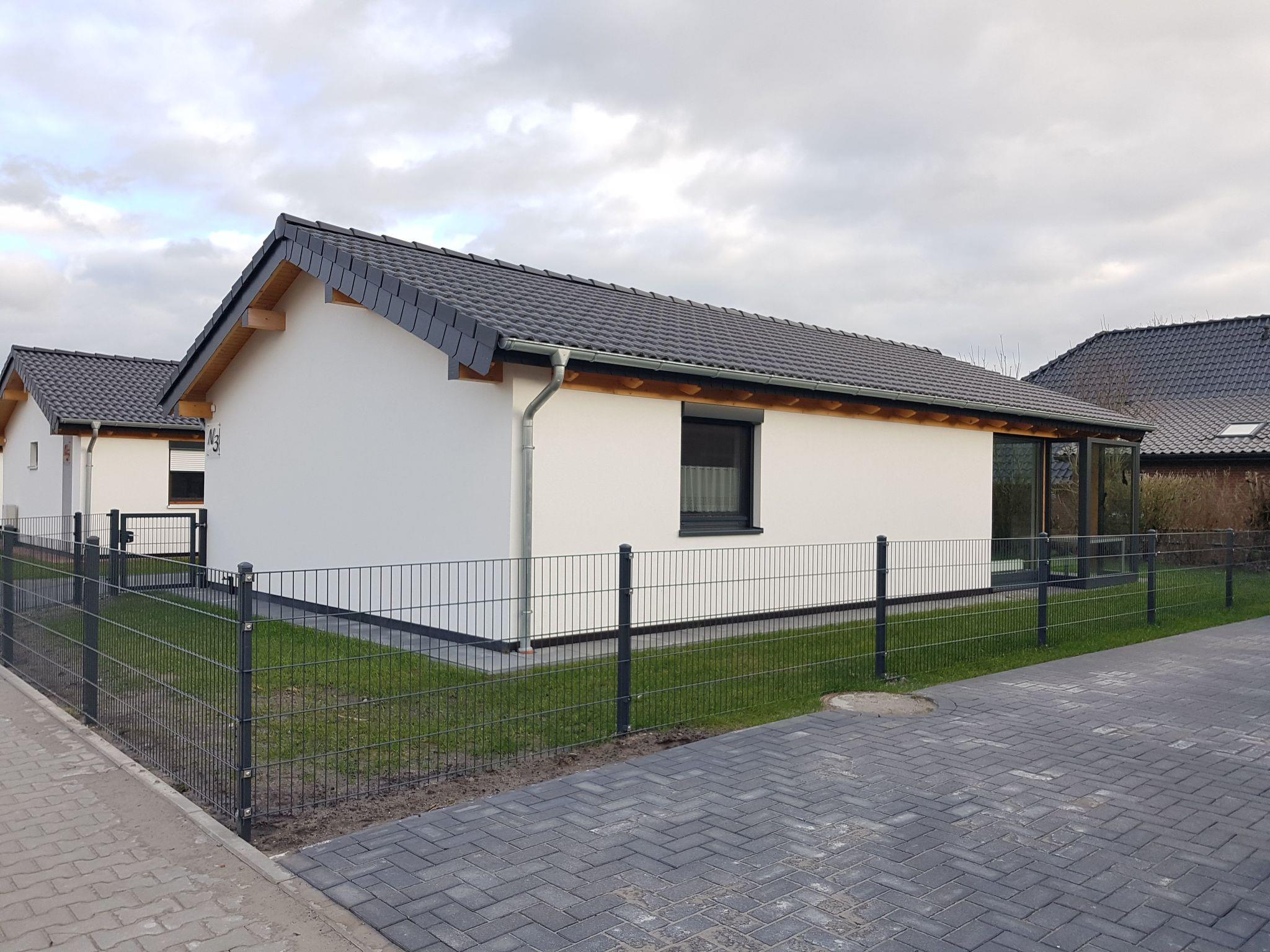 New building first occupancy 2020!!! Fenced, detached, ground-floor bungalow for 4 people, own 282 sqm plot, 2 bedrooms: 1 bedroom double bed 1.80 x 2.00 m, 1 bedroom with 2x single beds 0.90 x 2.00 m, bathroom with ground-level shower, also wall-mounted towel radiator, large living room with window front to the floor, covered sun terrace with garden furniture, parasol, awning carport and additional parking space, fully equipped fitted kitchen. TV 1x living room, 1x bedroomFree WLAN in the house!Brief description 1Number of kitchens : 1Bedroom 1Other bedroom furnishings : electric shutters with integrated fly screen, wardrobe, bedside cabinets, reading lampsBedroom 2Other bedroom furnishings : electric shutters with integrated fly screen, 2 x single beds 0.90 x 2.00 mBathroom 1Other bathroom furnishings : walk-in shower, wall-mounted towel radiator, hair dryer