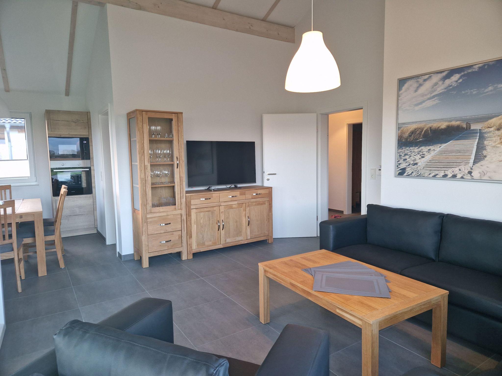 Newly built house G 30, first occupancy December 2022, peripheral location in cul-de-sac with unobstructed view of the landscape conservation area towards the meadow, completely fenced 1m high, free WiFi (fibre optic 300) in the house, pets allowed (max. 2), infrared cabin, washing machine, 2 full bathrooms with walk-in showers, electric shutters in 2 bedrooms, fly screens on all windows, underfloor heating in the bathroom 2), infrared cabin, washing machine, 2 full bathrooms with walk-in showers, electric shutters in the 2 bedrooms, fly screens on all windows, underfloor heating in the bathroom, TV in the living room + 2x bedrooms, wall-mounted towel radiatorsNewly built holiday home with 91 sqm living space for 6 people with 2 bedrooms and 2 full bathroomsOwn 474 sqm plotWinter garden with approx. 16 sqm- 2 bedrooms (1st bedroom: 1x double bed 1.80m x 2.00m, 2nd bedroom: 2x single beds 0.90m x 2.00m, 2nd bedroom: 2x single beds 0.90m x 2.00m). Bedroom: 2x single beds 0.90m x 2.00m + 2x mattresses 0.90m x 2.00m in the bunk bed)- 1 spacious living room with large floor-to-ceiling windows- Fully equipped fitted kitchen with dishwasher and microwave- 1 storage room / 1 hallway- Covered sun terrace with garden furniture- Outdoor tap- Carport and 1 additional parking spaceThe house is located in the holiday village Eckwarderhörne in the immediate vicinity of the dike, the ferry dock (eg.The house is located in the holiday village Eckwarderhörne in the immediate vicinity of the dyke, the ferry dock (e.g. passenger/bike ferry to Wilhelmshaven) and a 50,000 m2 inland lake belonging to the holiday village (with an approx. 500 m2 sandy beach directly on the inland lake, swimming pontoon and jetties). The Eckwarderhörne lido with its beach hall, lighthouse, ferry landing stage and starting point for guided mudflat walks is around 800 m away. The holiday village is idyllically situated away from the traffic and has the "To'n Spieker" dyke inn, bicycle hire, children's playground and a 1000 m2 play area with beach volleyball court, badminton court, basketball hoop, outdoor table tennis table, sandpit and swings.
