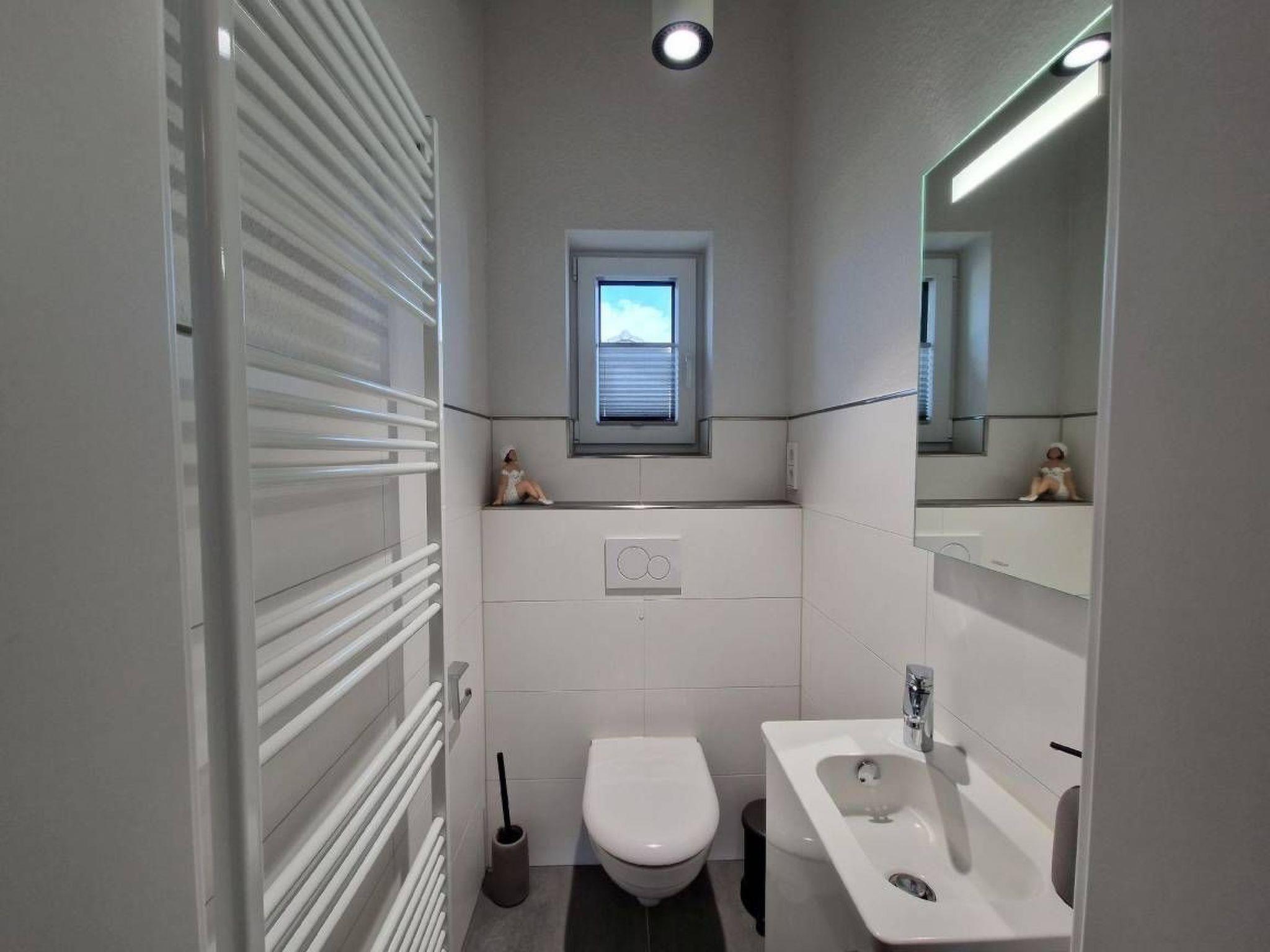 Newly built house G 20, first occupancy April 2023, peripheral location with unobstructed view over the meadows, pets allowed (max. 2), WLAN (fibre optic) free of charge, electric shutters in the 2 bedrooms, kitchen, 1 bathroom + 1 guest toilet, fly screens on all windows, vinyl flooring in all rooms, wall-mounted towel radiators, underfloor heating in the bathroom, TV in the living room and in the 2 bedrooms, conservatory, washing machine, dryer, Jura fully automatic coffee machine