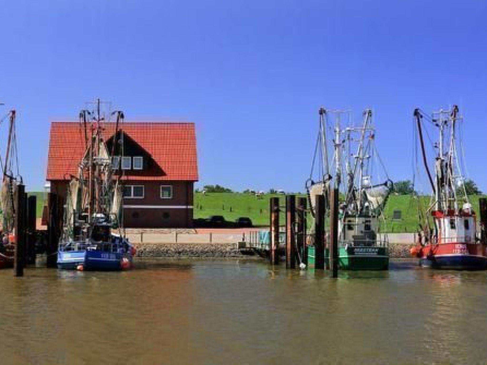 Cats and birds are not allowed! The complex is located directly on the North Sea dyke, so that you can reach the North Sea lagoon, the green beach of Burhave or the play barn in a few minutes on foot. The centre of Butjadingen-Burhave, which offers numerous restaurants and shopping facilities, is also within easy reach by bike or on foot. The proximity to the North Sea dyke offers a good starting point for long walks or cycle tours along the coast of Butjadingen. Just a few minutes' walk from the holiday home, the dog beach and another designated dog meadow behind the play barn offer the opportunity for your four-legged friends to romp around to their heart's content.