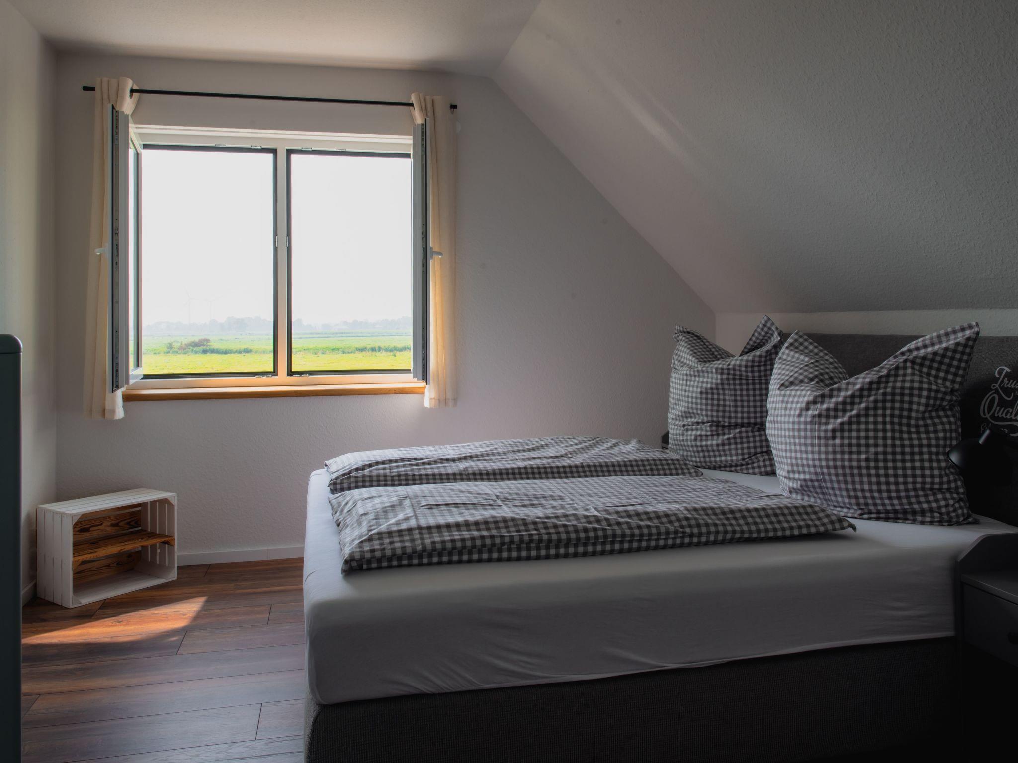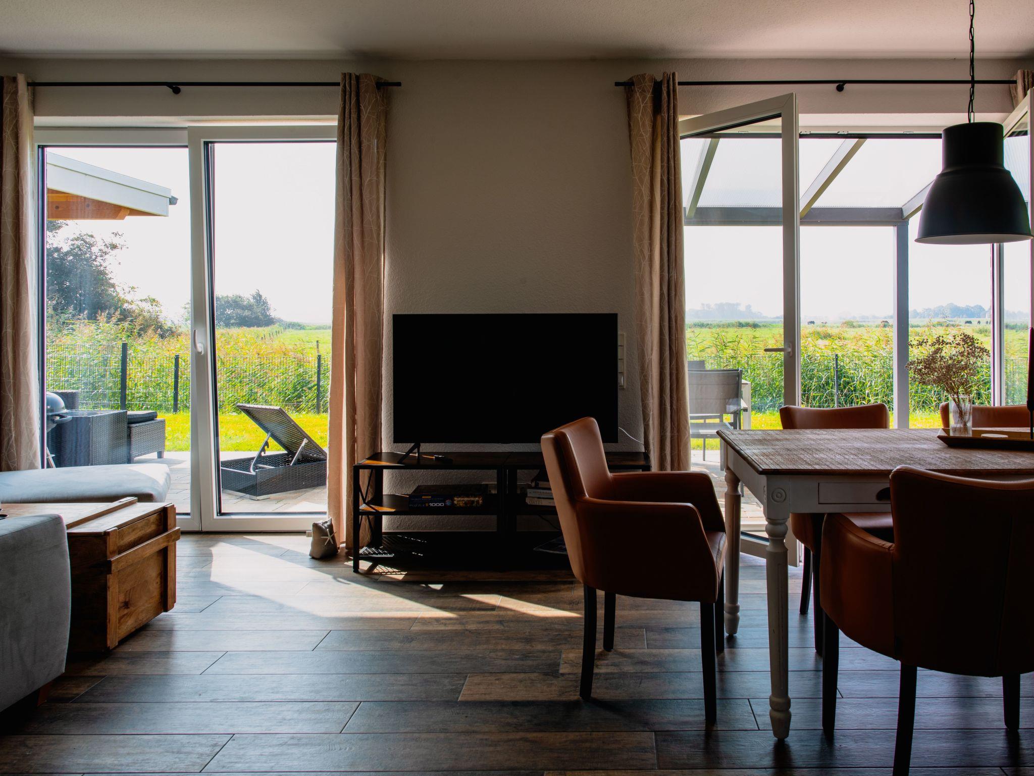 The holiday home is located directly behind the dyke on the salt marshes, with the small Fedderwardersiel cutter harbour next door and the Langwarder Groden nature reserve with its wide nature trails on the other side.