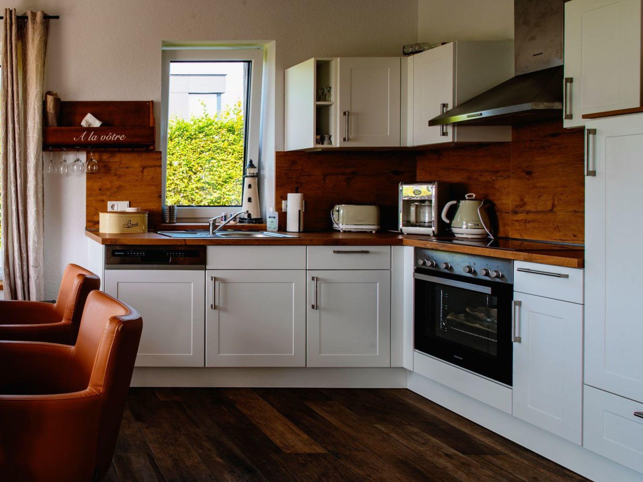 The kitchen has everything you need for a carefree stay as well as a dining table for six people.