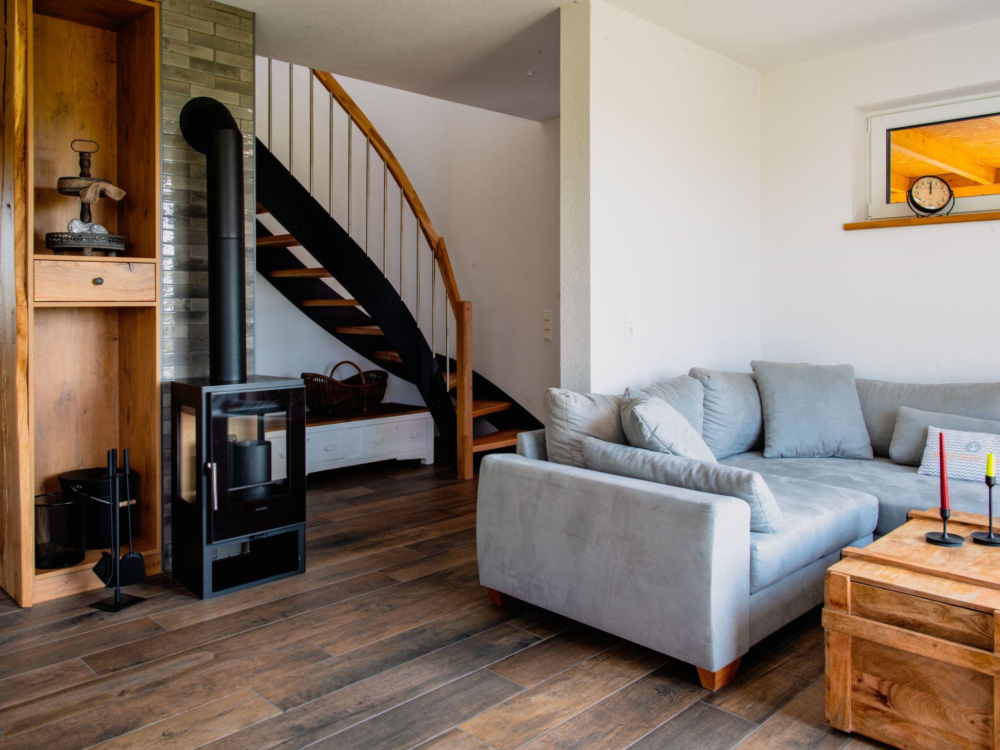 The holiday home welcomes you all year round: in summer, the covered terrace and garden and in winter, the cosy couch in front of the stove invite you to enjoy the view of the open meadows.