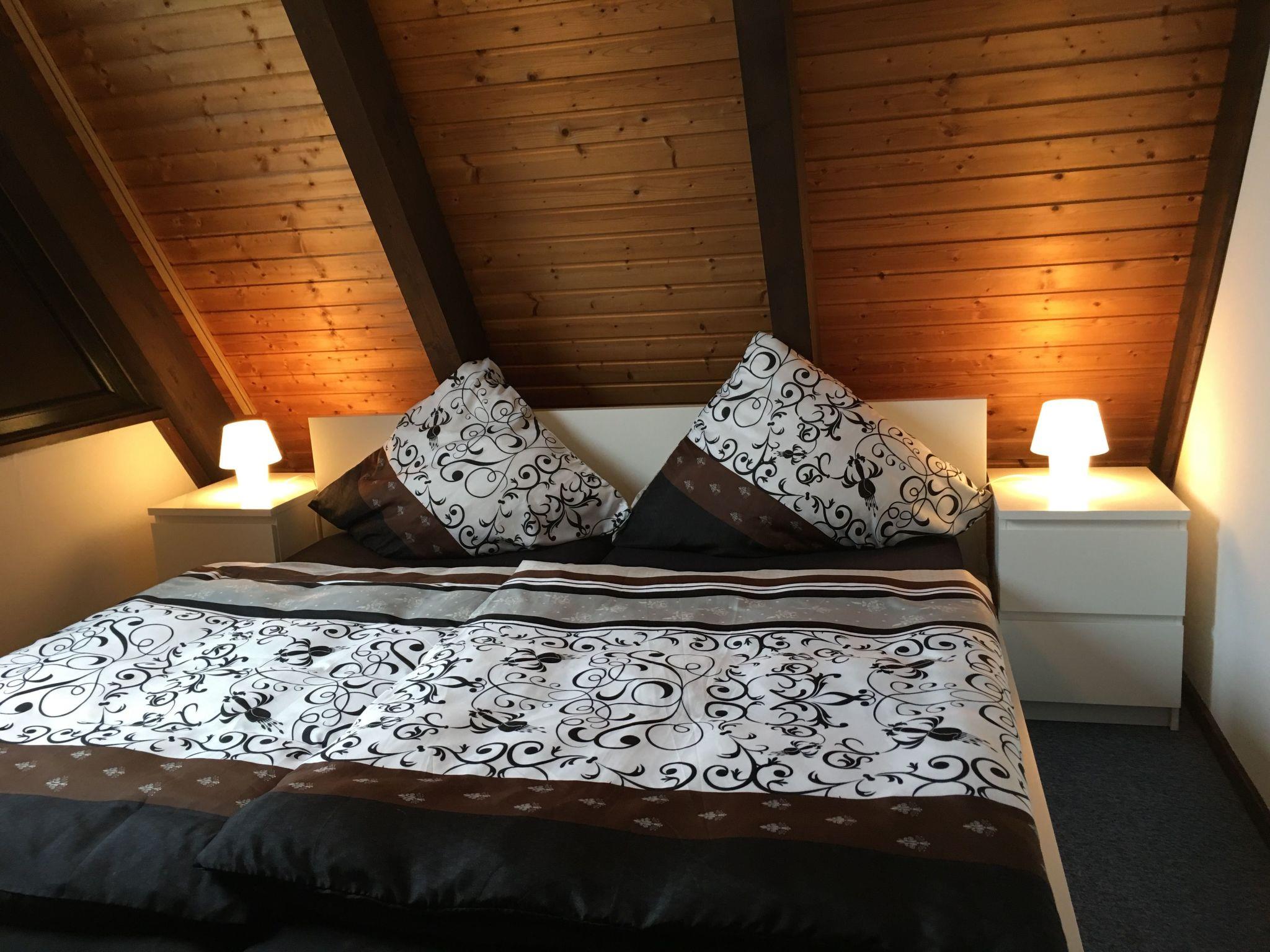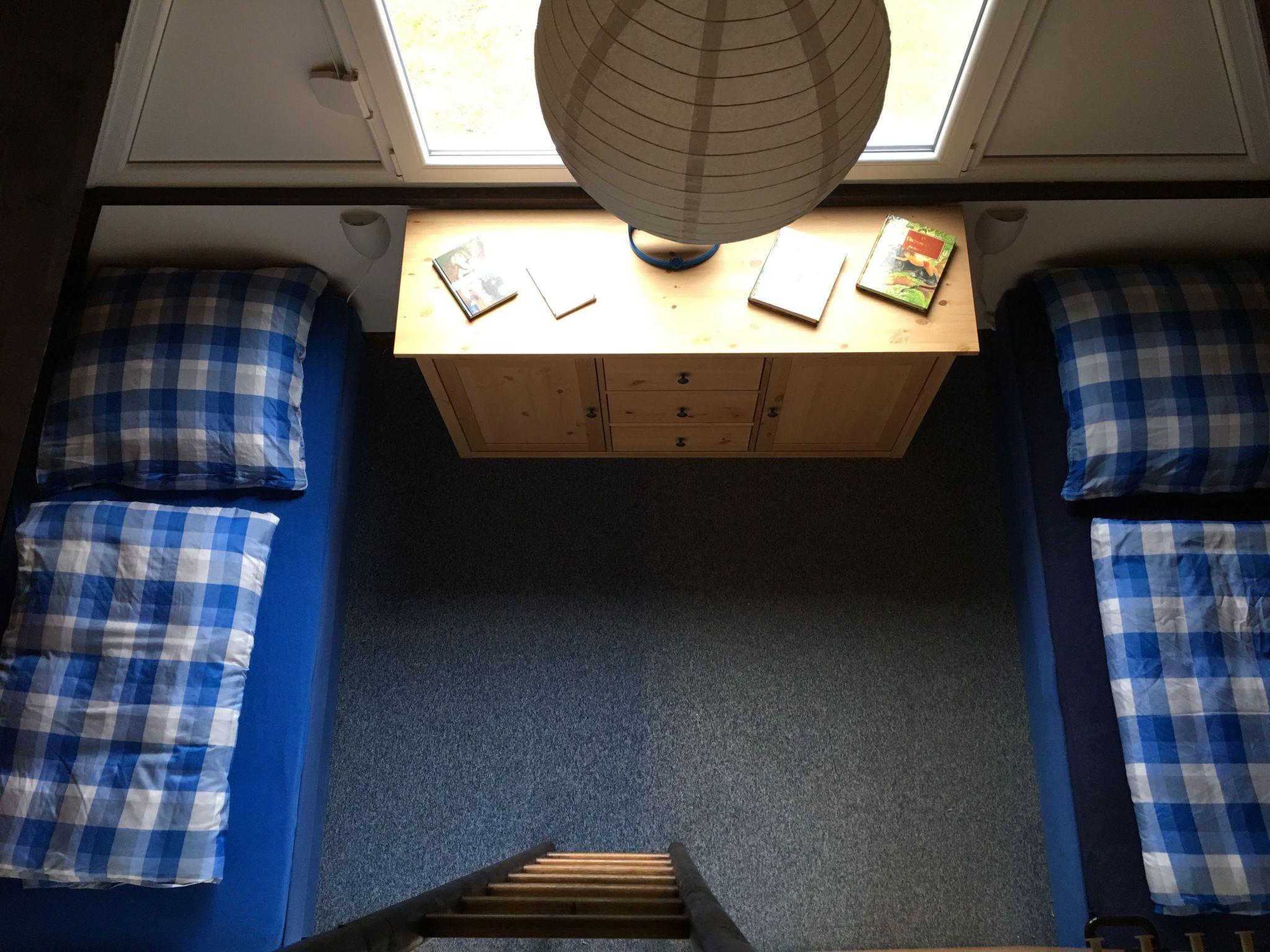 With a living space of approx. 70 m², this newly renovated accommodation offers enough space for four people plus two children. The spacious living/dining room has a cosy living area, a satellite TV with DVD player, a radio and a large dining table with 6 seats. The kitchen is fully equipped with an oven, a ceramic hob, a fridge with freezer compartment, a dishwasher, a microwave, a toaster, an egg cooker, a kettle and a filter coffee machine, leaving nothing to be desired. In one of the two bedrooms there is a double bed (1.80 x 2.00 m), the second bedroom has two single beds (each 0.90 metres wide) and a wigwam with a mattress (1.40 x 2.00 m), which can accommodate two children and is accessible via a ladder. Both bedrooms have roller shutters. The bathroom is equipped with a shower, a WC, a washbasin and a washing machine. The landlord will be happy to provide you with a high chair and board games for young and old, WLAN is not available.