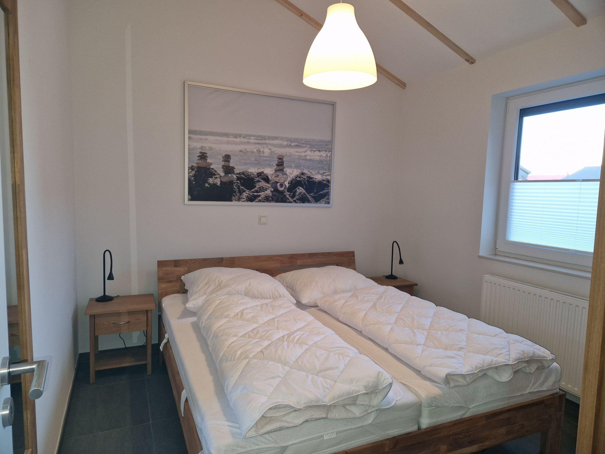 Newly built house G 28, first occupancy December 2022, peripheral location with unobstructed view towards the meadow, fenced 1m high, free WLAN (fibre optic 75) in the house, pets allowed (max. 2), infrared cabin, 2 full bathrooms with walk-in showers, electric shutters in the 2 bedrooms, fly screens on all windows, underfloor heating in the bathroom, TV in the living room + 2x bedrooms, wall-mounted towel radiatorNew holiday home with 91 sqm living space for 6 people with 2 bedrooms and 2 full bathroomsOwn 474 sqm plotWinter garden with approx. 16 sqm- 2 bedrooms (1st bedroom: 1x double bed 1.80m x 2.00m, 2nd bedroom: 2x single beds 0.90m x 2.00m, 2nd bedroom: 2x single beds 0.90m x 2.00m). Bedroom: 2x single beds 0.90m x 2.00m + 2x mattresses 0.90m x 2.00m in the bunk bed)- 1 spacious living room with large floor-to-ceiling windows- Fully equipped fitted kitchen with dishwasher and microwave- 1 storage room / 1 hallway- Covered sun terrace with garden furniture- Outdoor tap- Carport and 1 additional parking spaceThe house is located in the holiday village Eckwarderhörne in the immediate vicinity of the dike, the ferry dock (eg.The house is located in the holiday village Eckwarderhörne in the immediate vicinity of the dyke, the ferry dock (e.g. passenger/bike ferry to Wilhelmshaven) and a 50,000 m2 inland lake belonging to the holiday village (with an approx. 500 m2 sandy beach directly on the inland lake, swimming pontoon and jetties). The Eckwarderhörne lido with its beach hall, lighthouse, ferry landing stage and starting point for guided mudflat walks is around 800 m away. The holiday village is idyllically situated away from the traffic and has the "To'n Spieker" dyke inn, bicycle hire, children's playground and a 1000 m2 play area with beach volleyball court, badminton court, basketball hoop, outdoor table tennis table, sandpit and swings.