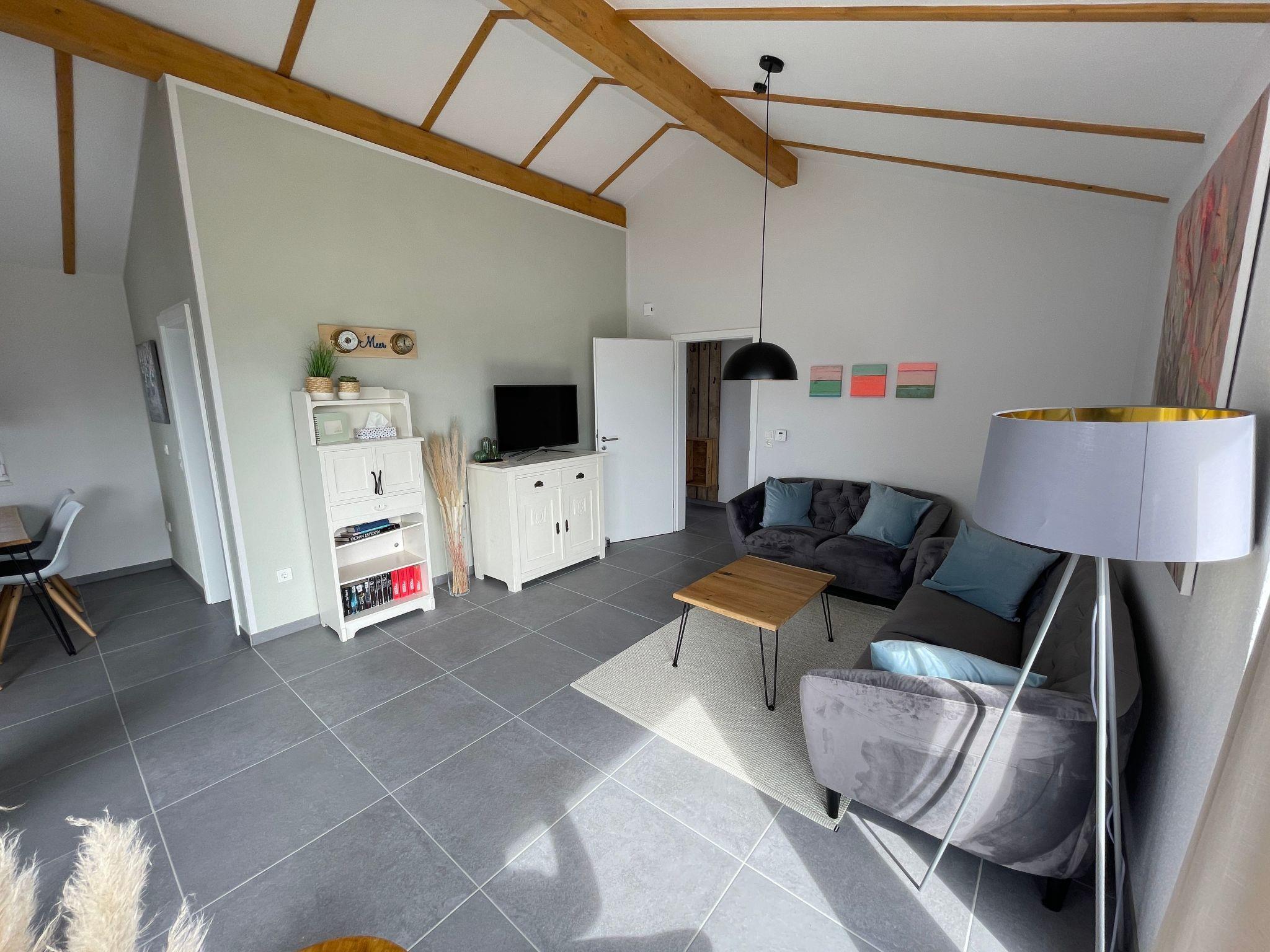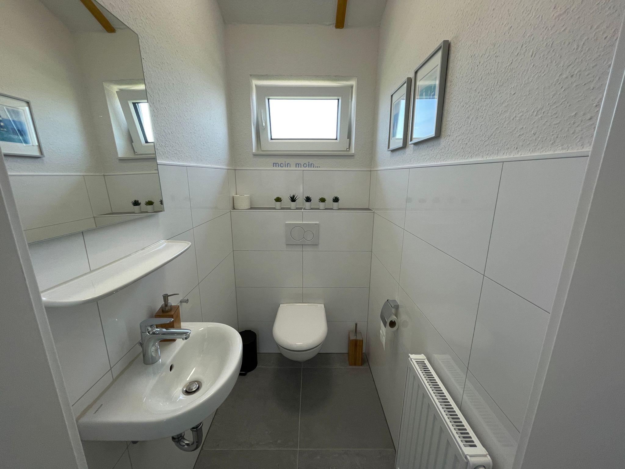 The house is located in the holiday village Eckwarderhörne in the immediate vicinity of the dyke, the ferry dock (including passenger / bicycle ferry to Wilhelmshaven) and a 50,000 square metre inland lake belonging to the holiday village (with an approx. 500 square metre sandy lawn directly on the inland lake, swimming pontoon and jetties).The Eckwarderhörne lido with its beach hall, lighthouse, ferry landing stage and starting point for guided mudflat walks is about 800 m away. In the idyllic holiday village, away from the traffic, there is the "To'n Spieker" dyke inn, bicycle hire, children's playground and a 1,000 m² play area with beach volleyball court, badminton court, basketball hoop, outdoor table tennis table, sandpit and swings.
