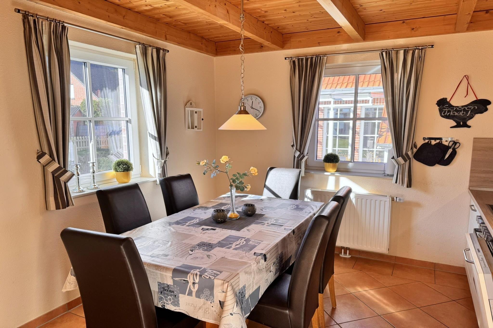 Rummeligt feriehus i den nye del af ferieparken, cirka 90 kvadratmeter, ideelt til op til 6 personer. Den hyggelige stue med brændeovn inviterer til afslapning, mens køkkenet med spiseplads tilbyder alt, hvad du behøver til fælles måltider. Huset har to badeværelser med brusere og toiletter. Der er også en sauna i annekset. Tre soveværelser, hver med to senge, tilbyder rigelig plads. Et særligt højdepunkt er anden sal, perfekt som et privat tilflugtssted for børn eller teenagere. En solrig terrasse, et opbevaringsrum, en carport og en ekstra parkeringsplads ved huset fuldender tilbuddet. Ideelt til en afslappende familieferie! Højdepunkt: Wi-Fi inkluderet, hunde tilladt Bemærk: Registrer venligst din sengelinned/linnedpakke hos på forhånd! Bemærk venligst, at bygningsarbejdere og håndværkere ikke er tilladt i denne indkvartering. Forretningsrejsende med en tilsvarende baggrund vil heller ikke blive optaget, selvom de har en booking. Vi sætter pris på din forståelse for, at vi kun udlejer til turister. Burhave er en charmerende ferieby ved Nordsøen på halvøen Butjadingen, kendt for sin afslappede atmosfære og nærhed til Vadehavet. Byen tilbyder adskillige fritidsaktiviteter, herunder den populære strand ved Nordsølagunen, cykel- og vandrestier samt hyggelige restauranter og caféer. Dens centrale beliggenhed gør Burhave til en fremragende base for at udforske den omkringliggende region og Vadehavet, der er på UNESCOs verdensarvsliste.