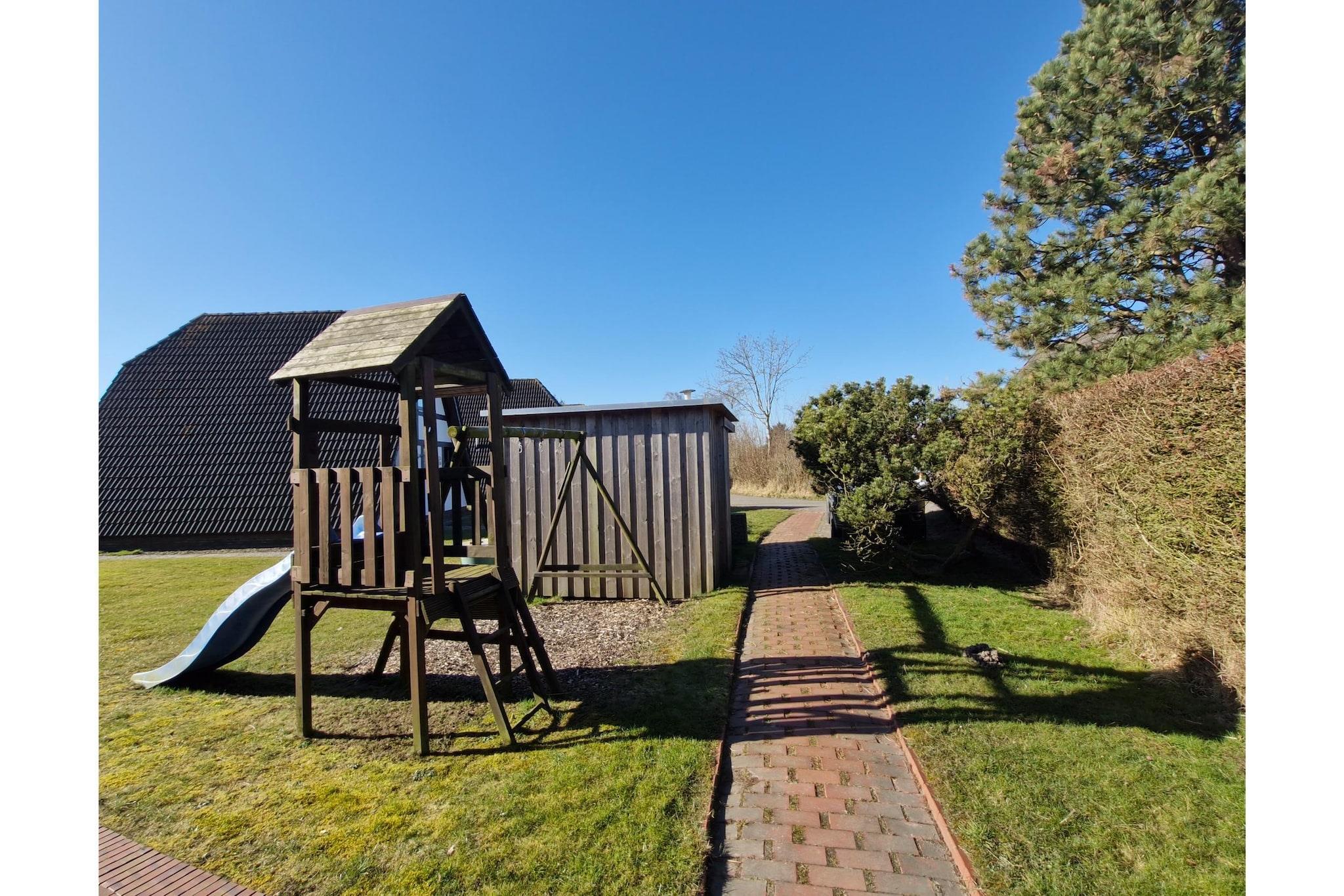 Stueetage: (Køkken(elkedel, brødrister, komfur(Komfur med fire kogeplader), kaffemaskine, ovn, mikrobølgeovn, opvaskemaskine , køleskab), stue / spisestue(Fjernsyn, spisebord, pejs, sofahjørne), badeværelse(bruser, håndvask, toilet)) Loft: (soveværelse(dobbeltseng), soveværelse(enkeltseng, enkeltseng), svalegang soveværelse(via forholdsvis stejle trapper, gennem en lav indgang)(enkeltseng)) babybadekar(betalt), terrasse, cykelopbevaring, havemøbler, parkering, trappegitter, Gyngestativ, Vaskeripakke mod et gebyr