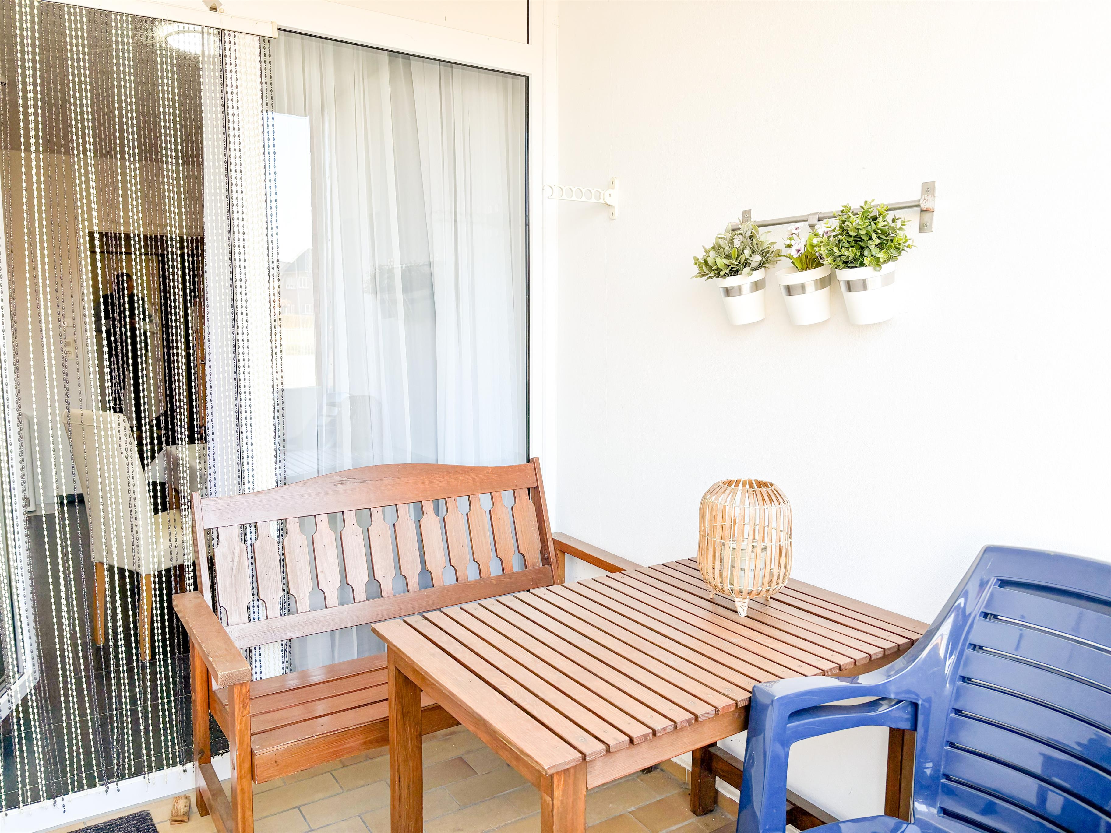 Die Ferienwohnung liegt im Erdgeschoss der Appartementanlage und verfügt über ein Wohnzimmer mit Schlafcouch für 1 Person, Kabel-TV, Radio, Essecke u. Kochnische (2-Plattenherd, Wasserkocher, Kaffeemaschine, Toaster), ein Schlafzimmer mit zwei Einzelbetten, ein Badezimmer mit Dusche/ WC sowie einen Balkon mit Gartenmöbeln. Haustiere werden sind nicht gestattet.