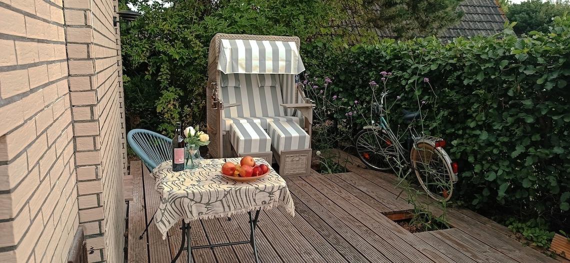 Dieses frisch 2022 komplett renovierte Nurdachhaus liegt direkt hinterm Deich, knapp 500m von der Nordsee entfernt, zwischen Nordseelagune und Spielscheune in Burhave. Es steht in einer ruhigen Ferienhaussiedlung. Das Haus umfasst ca. 68qm verteilt auf zwei Etagen. Im Erdgeschoss findet sich das gemütliche Wohnzimmer, in dem sich ein Ausziehsofa (160cm Breite) und ein Kaminofen finden. Daneben ein Esszimmer mit Platz für bis zu 6 Personen, einen Kinderhochstuhl und eine offene, moderne Küche, ausgestattet mit modernen Geräten (Backofen, Induktionsherd, Toaster, Kaffeemaschine, Geschirrspüler, Kühlschrank mit Eisfach), sowie ein Badezimmer mit Dusche, Toilette und Waschmaschine. Im Obergeschoss findet sich ein weiteres Badezimmer mit Badewanne sowie die beiden Schlafzimmer, eines mit einem Bett mit 160cm Breite, das zweite als Kinderzimmer, zwei mal 80cm (80cm auf 160cm ausziehbar). Im Wohnzimmer finden sie zahlreiche Gesellschaftsspiele, eine Stereoanlage und ein SmartTV. Im Schlafzimmer oben befindet sich ebenfalls ein Fernseher. Auf den Fernsehern sind unter anderem Netflix und Amazon Video installiert - Zugangsdaten sind nicht in der Miete enthalten. Kein Kabelfernsehen oder Satellit. W-Lan Zugang ist vorhanden und natürlich in der Miete inbegriffen. Das ca. 300qm große, ruhige, von Hecken umgebene Grundstück bietet einen PKW Stellplatz mit zugehöriger Wallbox für E-Autos, sowie einen großzügigen Garten und zwei Terrassen, die zum Entspannen und relaxen einladen. Im Schuppen finden einen Grill und im Garten Gartenstühle und Tische, Liegen sowie einen Strandkorb. Auch im Winter oder bei Regen und Sturm laden der Kaminofen und der Hottub zur Entspannung und Erholung an der Nordsee ein."