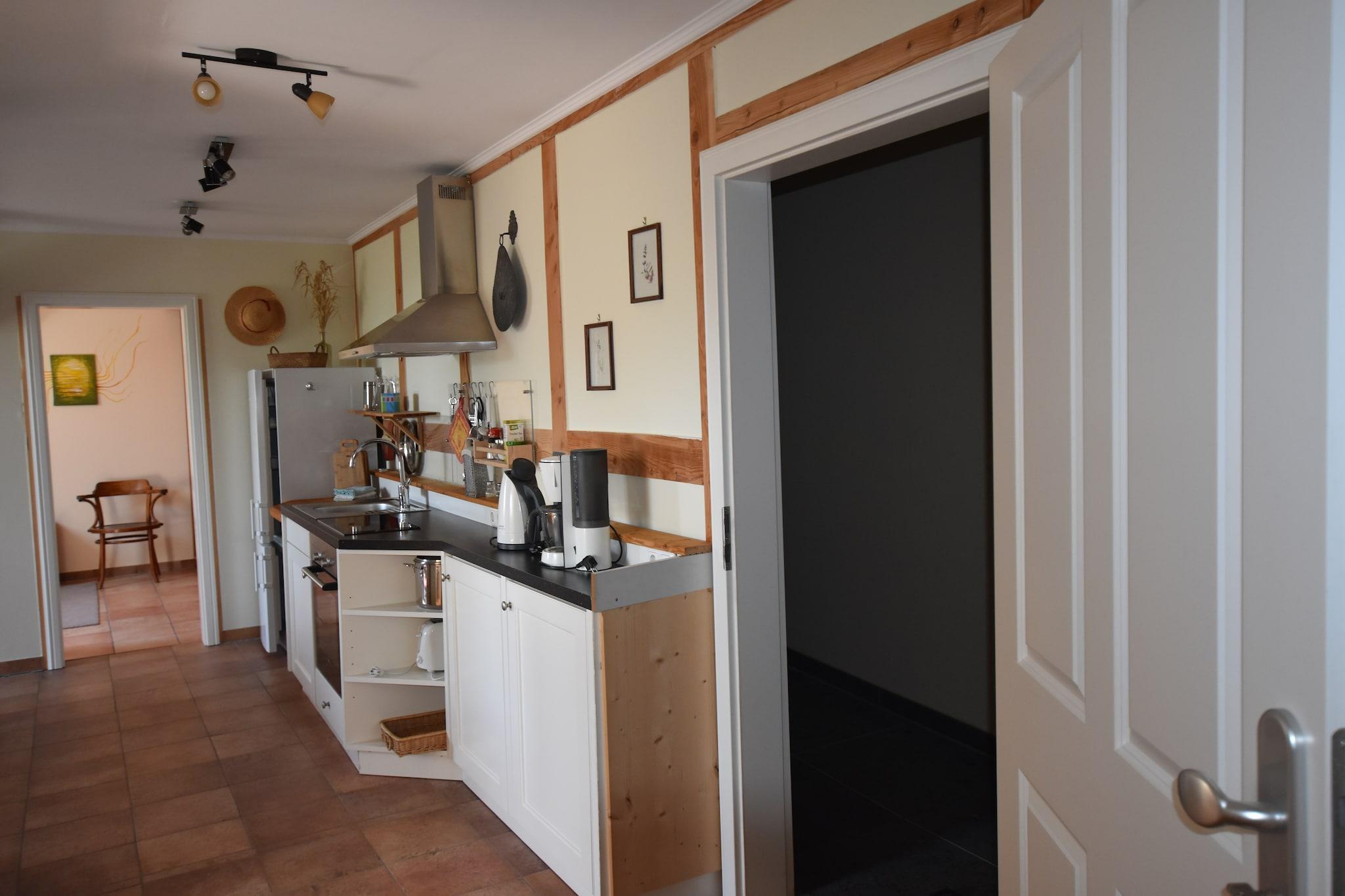 Træd ind i denne karakterrige 6-værelses lejlighed i Buschenhagen, hvor træbjælker og antikke detaljer skaber en varm, indbydende atmosfære for op til 15 gæster. Den rummelige indretning omfatter en hyggelig stue-spisestue, et fuldt udstyret åbent køkken og tre badeværelser. En fælles sauna tilføjer et afslappende touch, mens opvarmning sikrer komfort året rundt. Udendørs kan gæsterne nyde en indhegnet have med legeredskaber, en skyggefuld veranda og grillfaciliteter. Skoven ligger kun 1 km væk for fredelige gåture i naturen, og havets strand er en kort køretur til sol og surf. Essentials er let tilgængelige med supermarkeder 800 m væk, og parkering er tilgængelig på stedet. Familier vil sætte pris på de børnevenlige faciliteter, herunder barnesenge og høje stole, der kan lejes, og muligheden for at bruge en vaskemaskine og cykler mod et mindre gebyr. Med togstationen 8 km væk og lufthavnen 65 km væk, tilbyder denne lejlighed både charme og bekvemmelighed til et mindeværdigt gruppetilflugtssted.