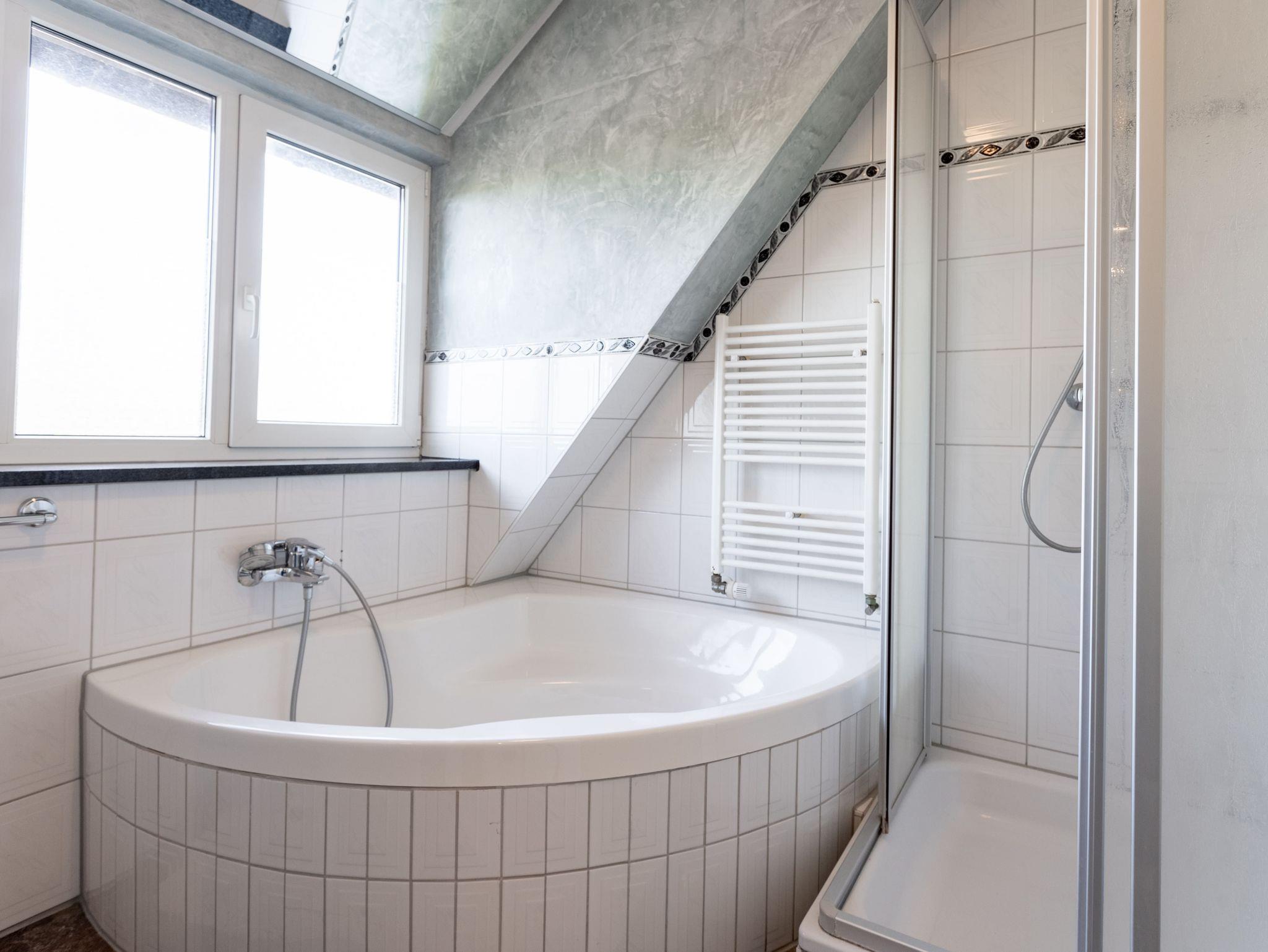 Genießen Sie den Komfort von zwei Badezimmern: Das größere, helle Hauptbad ist mit einer Dusche sowie einer Badewanne ausgestattet, ideal für einen entspannten Ausklang des Tages. Das zweite Badezimmer verfügt ebenfalls über eine Dusche.