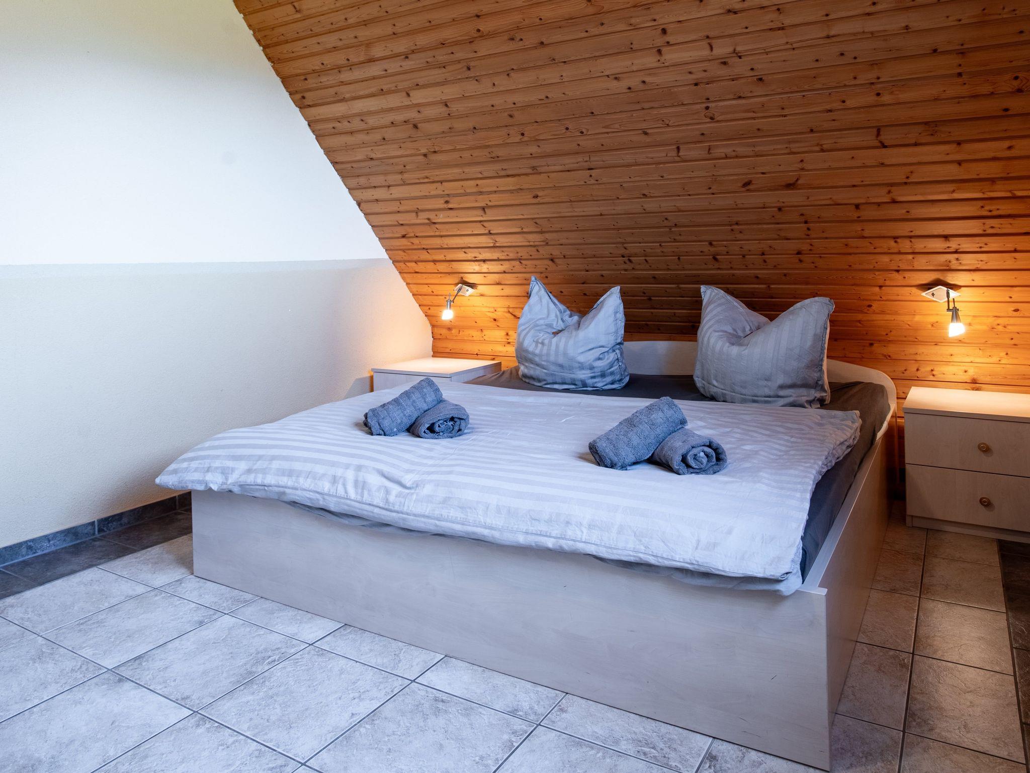 Das separate Schlafzimmer verfügt über ein Doppelbett und einen großzügigen Kleiderschrank.