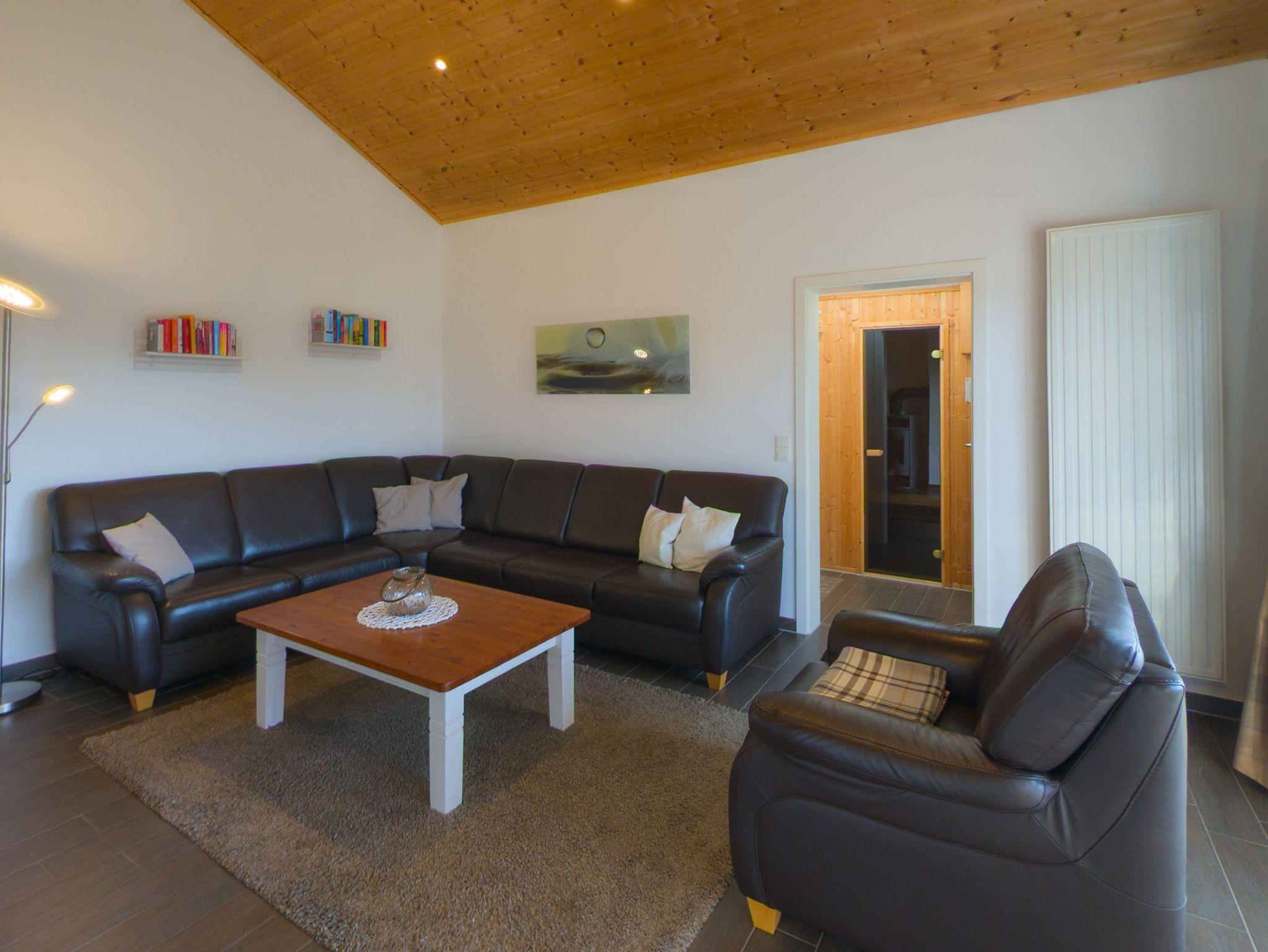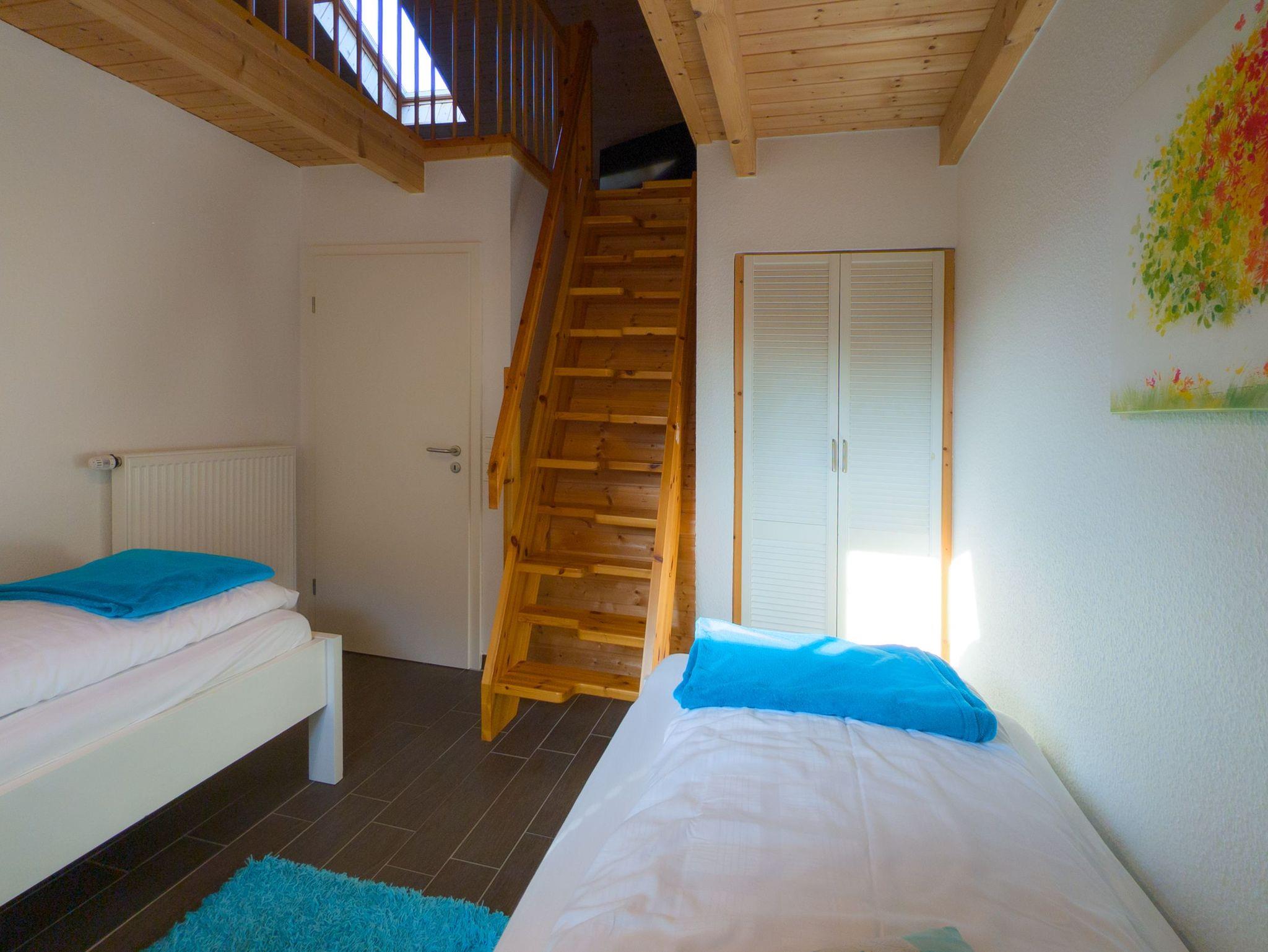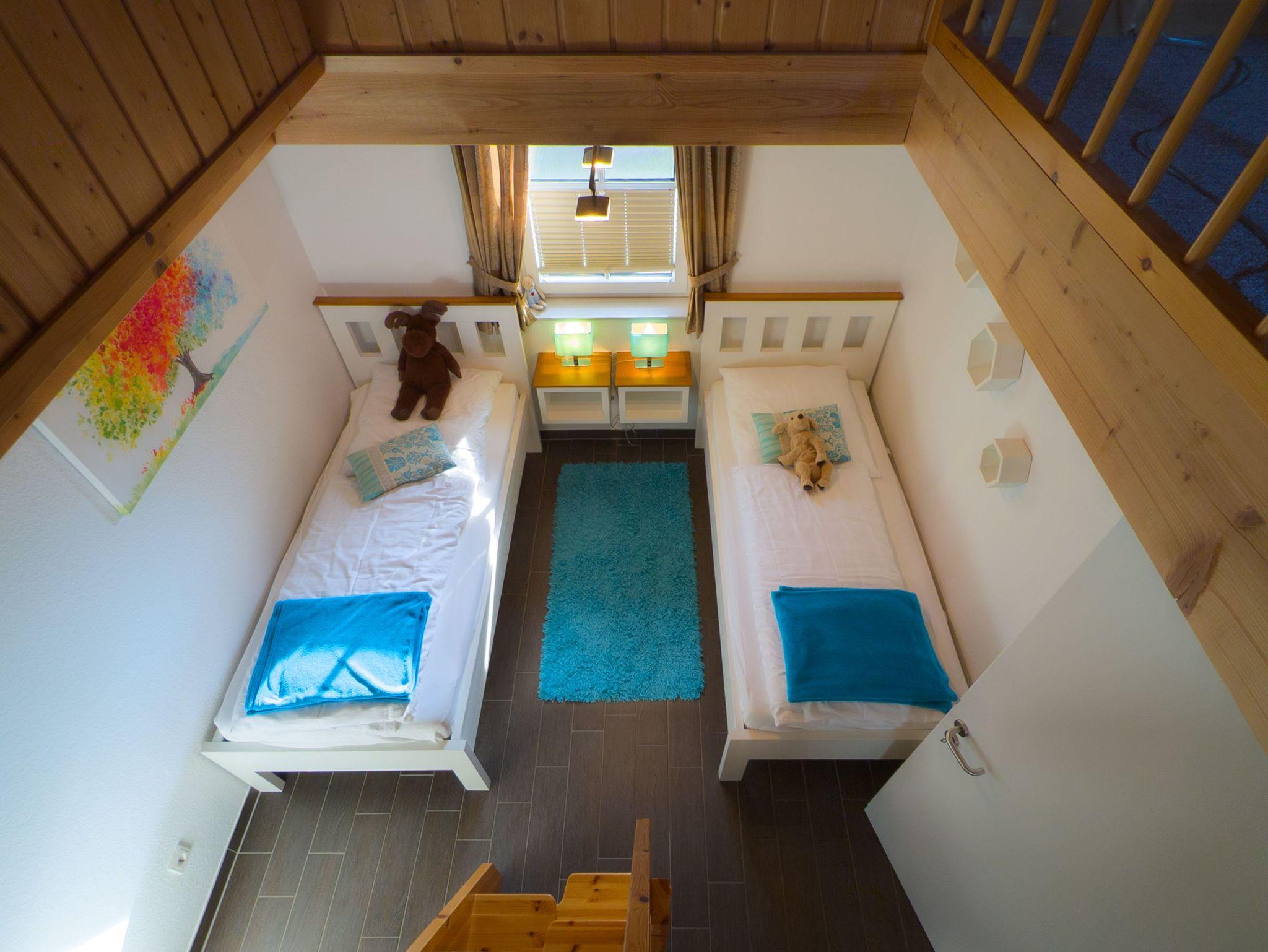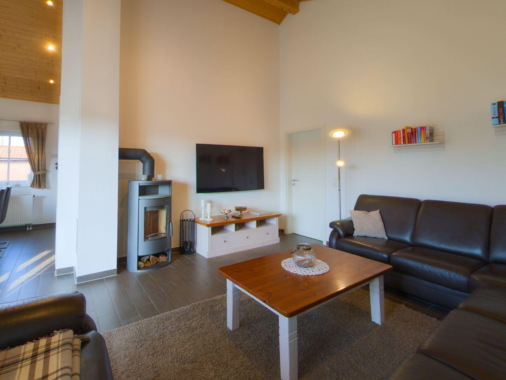 Gemütlicher Wohnraum mit Kaminofen, eine gut ausgestattete Küche mit Essbereich sowie 2 Bäder mit Dusche und WC und 3 Schlafräume (einmal mit Doppelbett, zweimal mit zwei Einzelbetten). Von einem der drei Schlafzimmer führt eine Holztreppe zur 2. Wohnebene auf eine Empore mit einem zweiten Fernseher - ein eigenes kleines Reich für kleine und große Kinder!