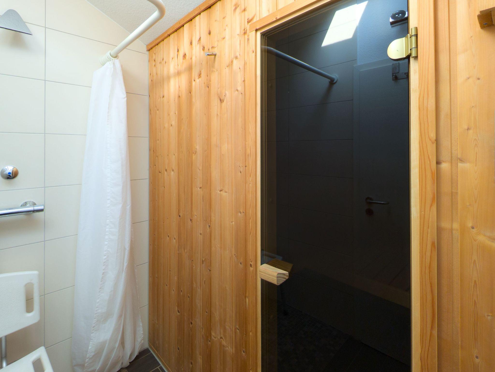 An kalten Tagen können Sie es sich in der Sauna gemütlich machen.