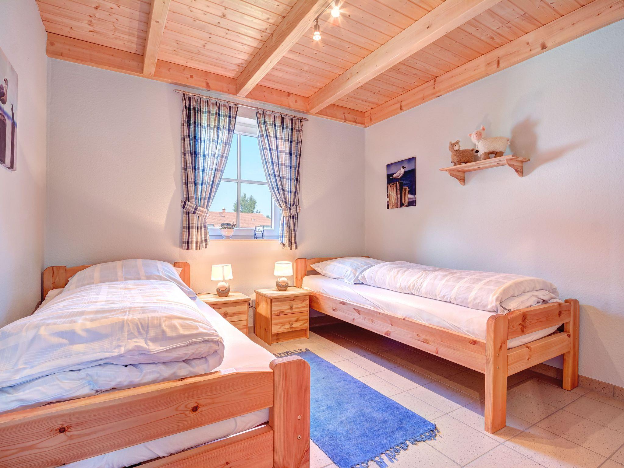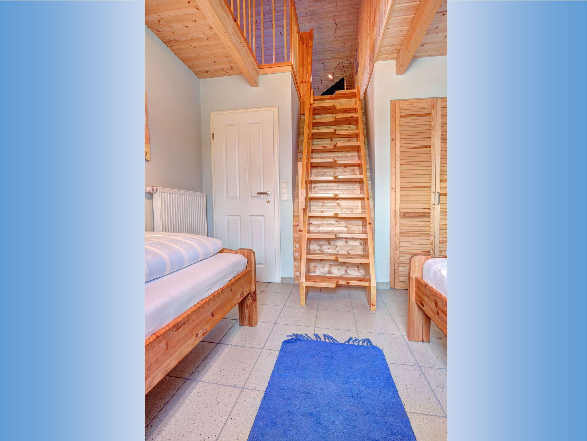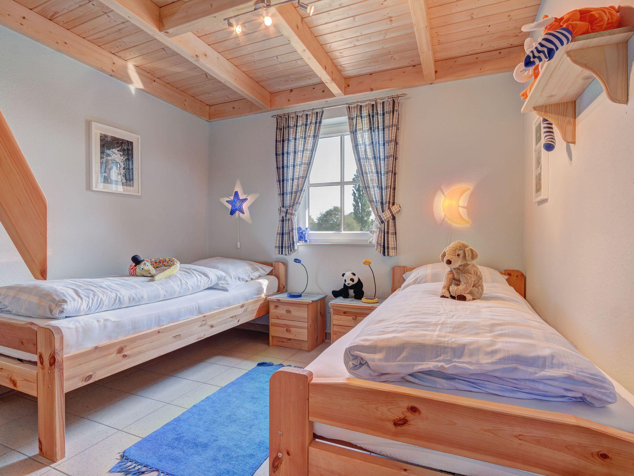 Großzügig geschnittener Bungalow für max. 6 Personen (zzgl. einem Kleinkind). Gemütlicher Wohnraum mit Kaminofen, eine gut ausgestattete Küche mit Essbereich sowie 2 Bäder mit Dusche und WC und 3 Schlafräume (einmal mit Doppelbett, zweimal mit zwei Einzelbetten). Von einem der drei Schlafzimmer führt eine Holztreppe zur 2. Wohnebene auf eine Empore mit einem zweiten Fernseher - ein eigenes kleines Reich für kleine und große Kinder!