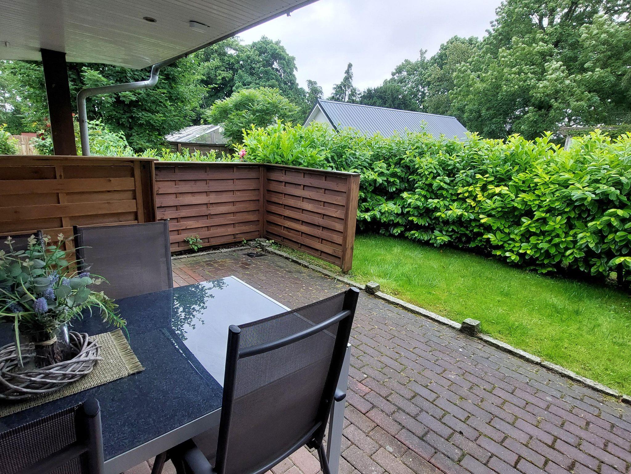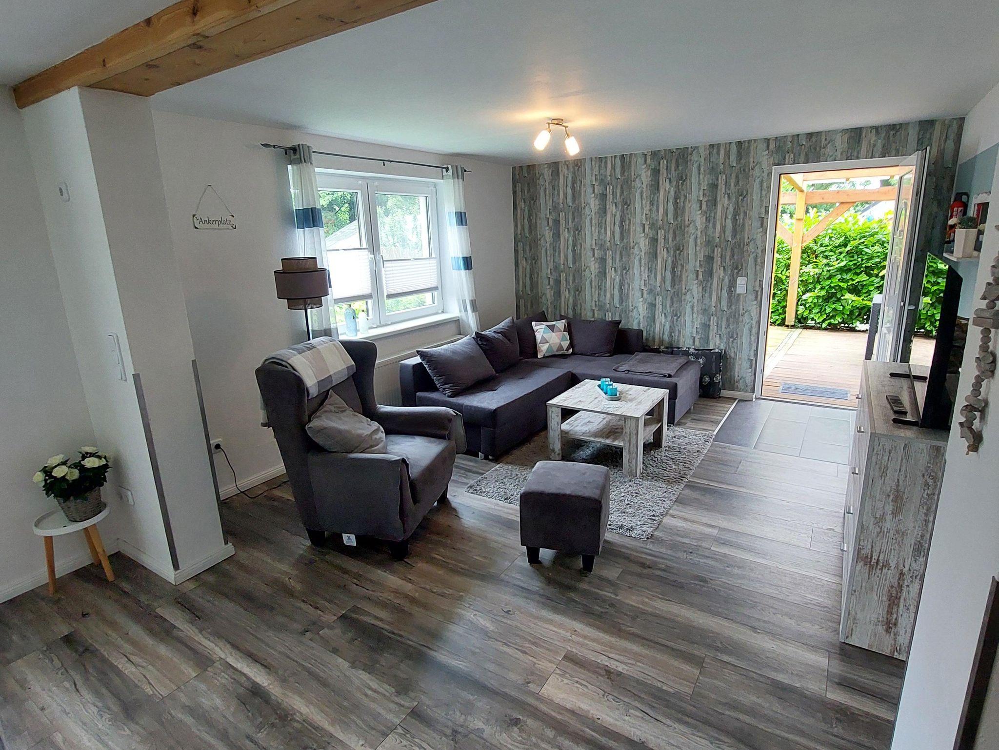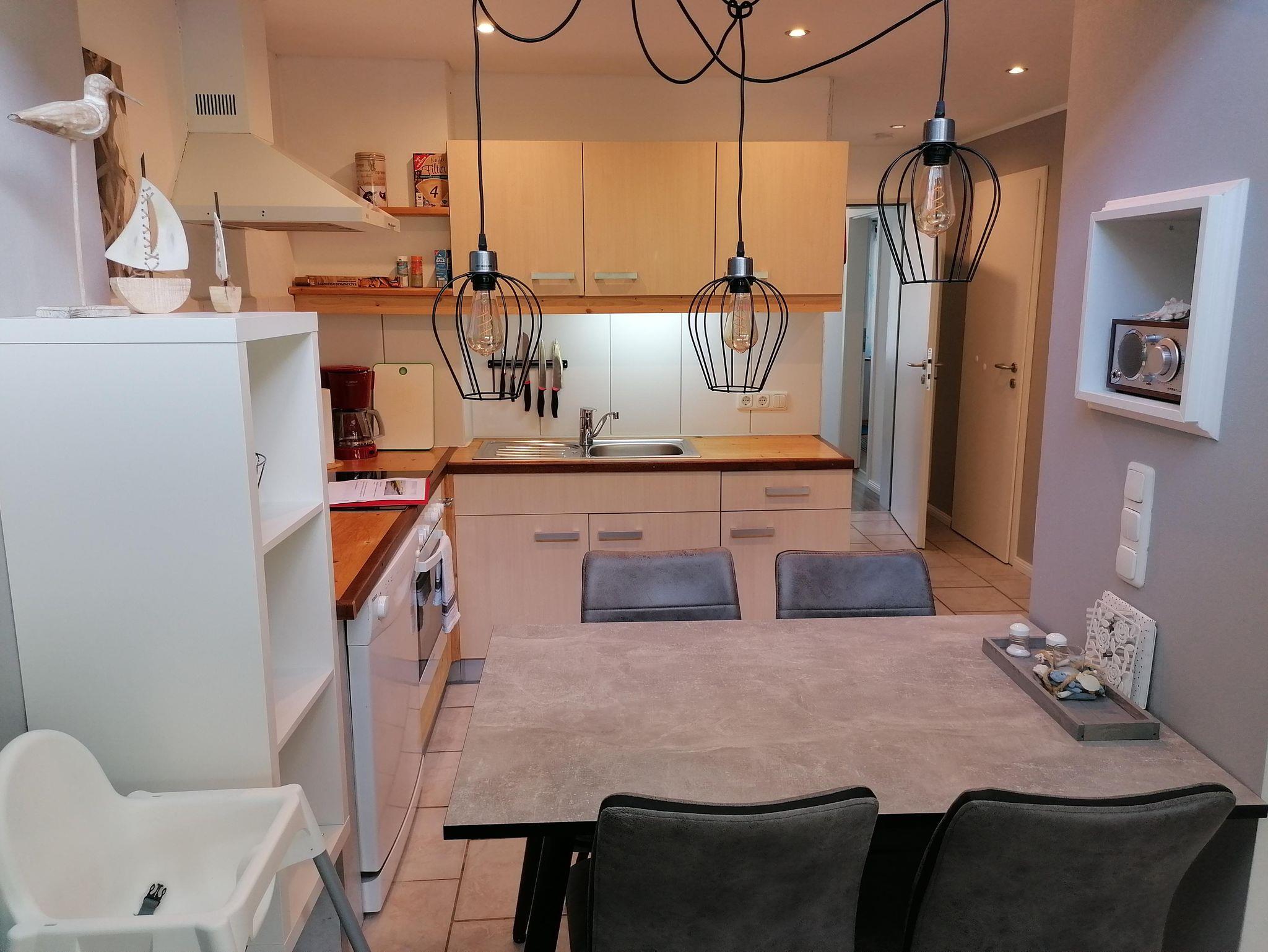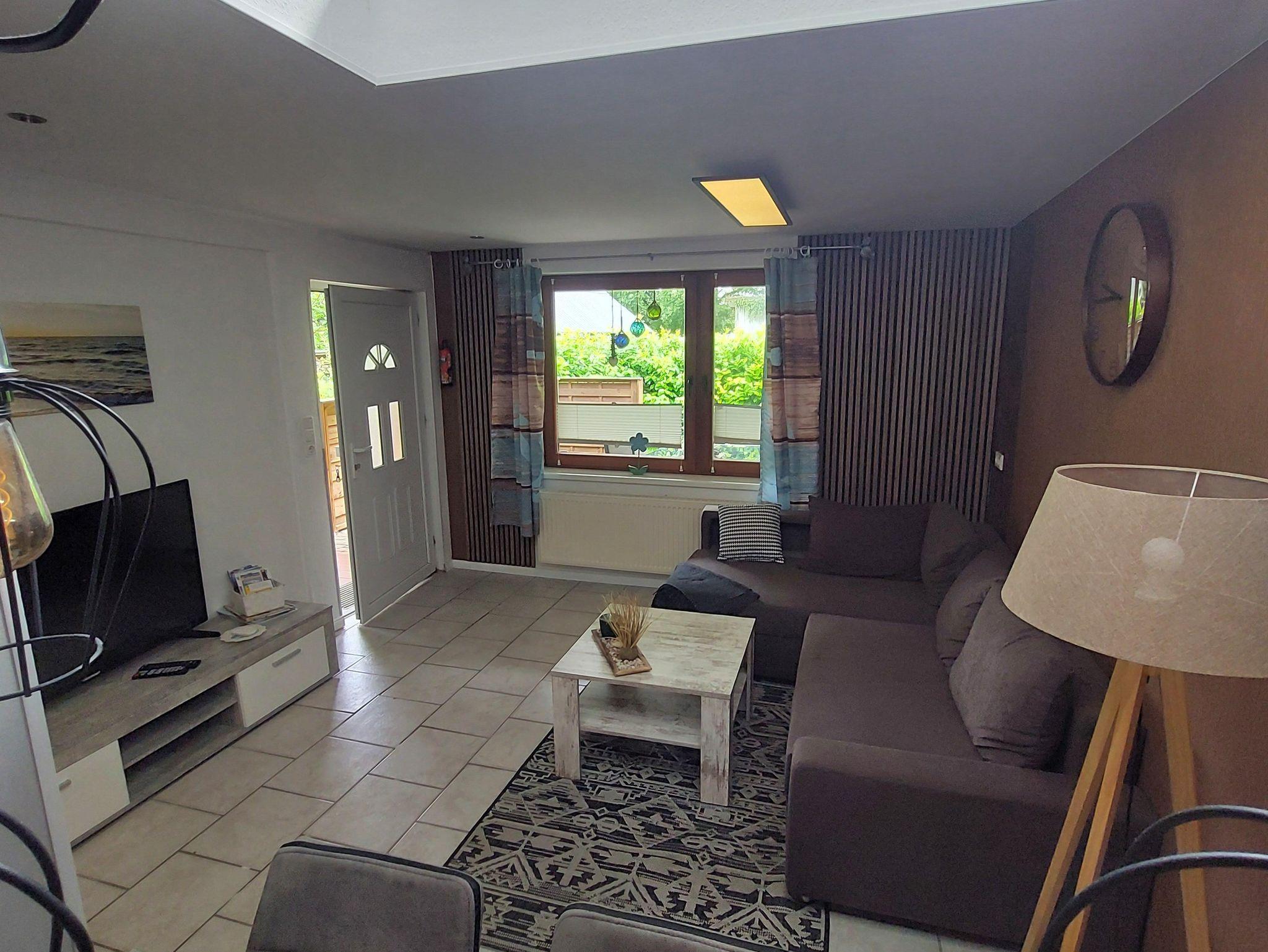 Die gemütliche und helle Ferienwohnung 1 ist ebenerdig, mit einem gemütlichen Wohn-, Kochbereich, mit Wohnecke, TV, Essecke und einer vollausgestatteten Küchenzeile (mit Geschirrspüler, Kühlschrank, Backofen, Herd, Kaffee -und Kaffeepadmaschine, Wasserkocher und Toaster). Ein Doppelzimmer und ein zusätzliches Zweibettzimmer mit einem Etagenbett laden zu einem erholsamen Schlaf in Ihrem Urlaub ein. Ein Bad mit Fön, Dusche, WC und Waschtisch steht Ihnen zur Verfügung. Direkt vor dem Eingang finden Sie eine überdachte Terrasse und eine durch eine Hecke geschützte Liegewiese, wo Sie die schönen Urlaubstage genießen und ausklingen lassen können.