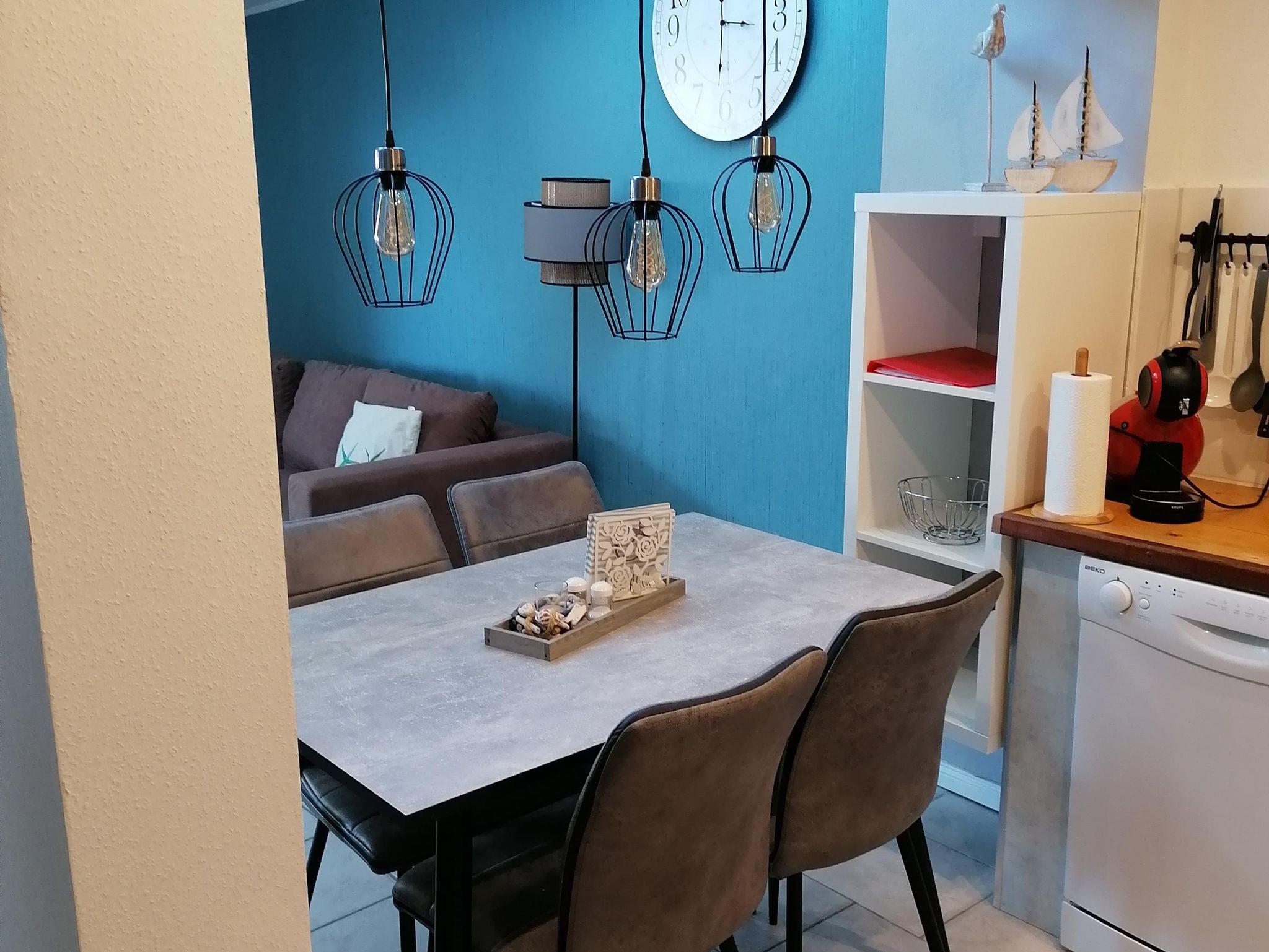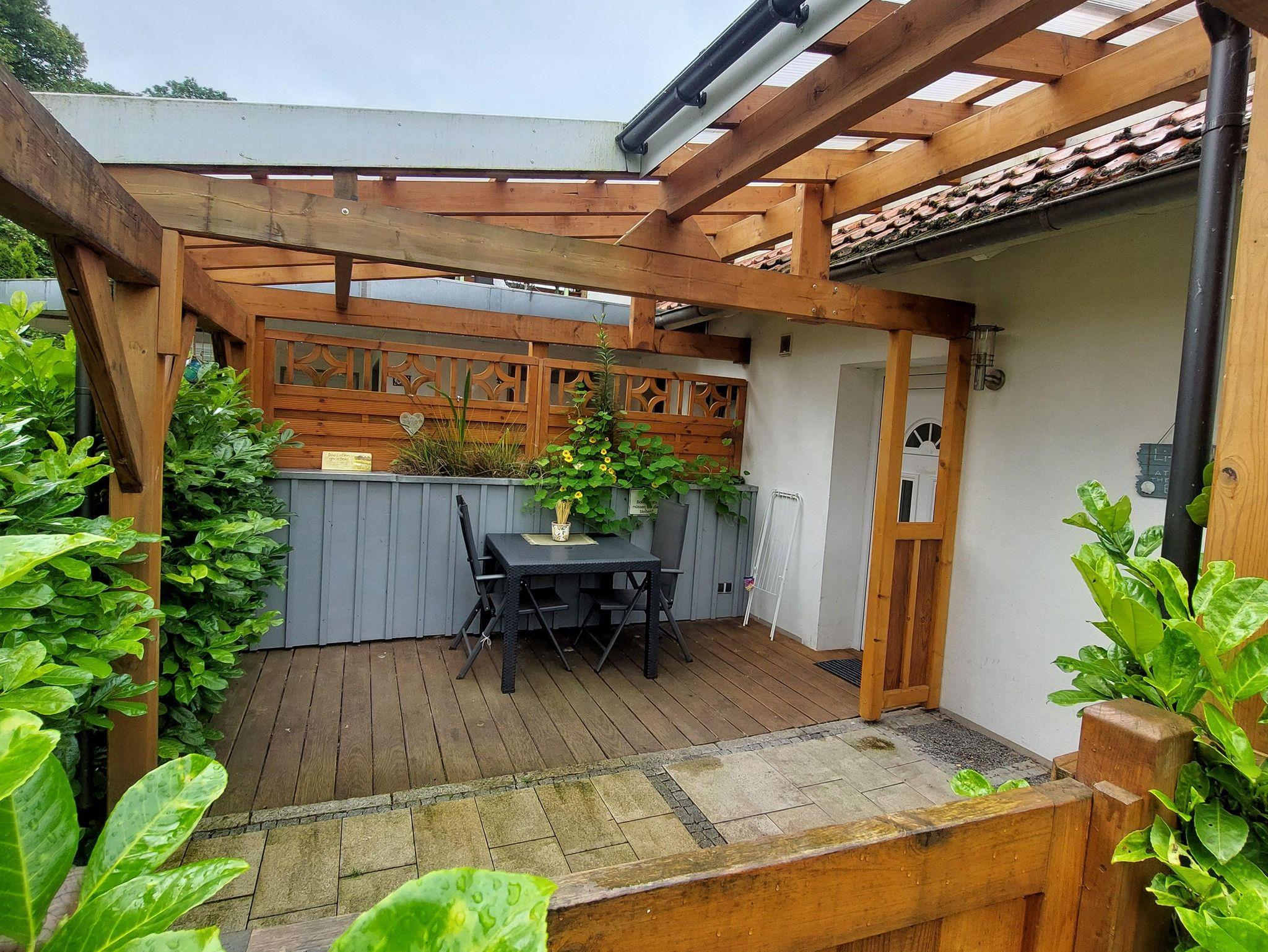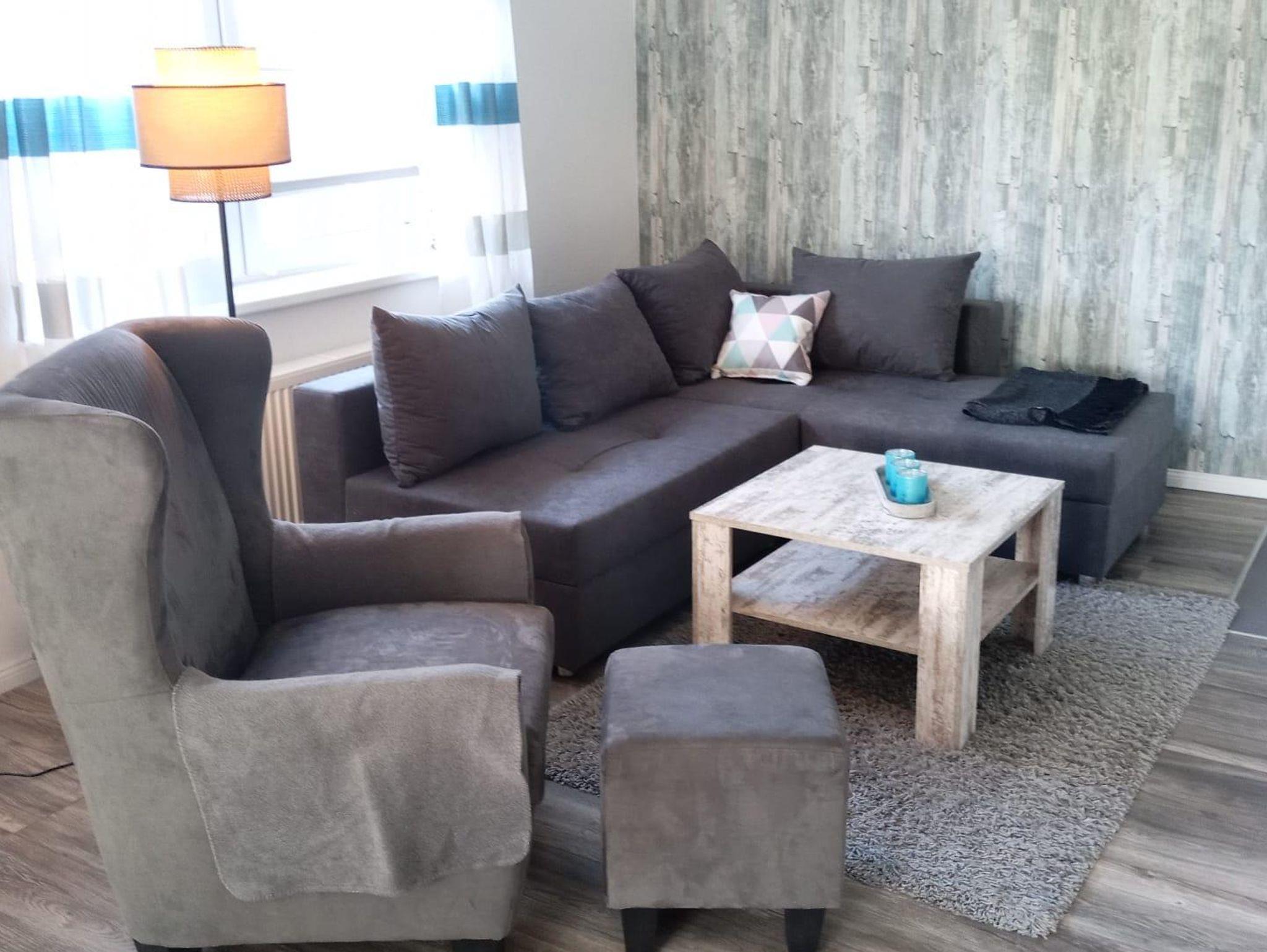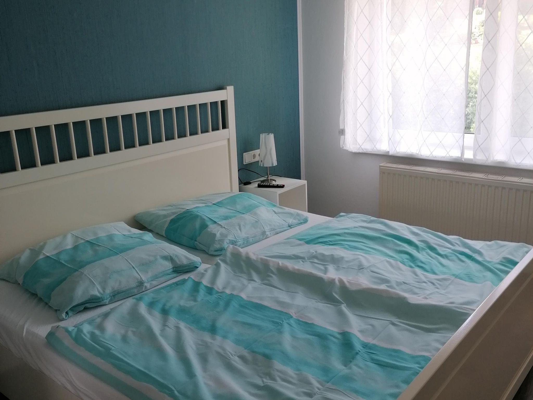 Die gemütliche und helle Ferienwohnung 1 ist ebenerdig, mit einem gemütlichen Wohn-, Kochbereich, mit Wohnecke, TV, Essecke und einer vollausgestatteten Küchenzeile (mit Geschirrspüler, Kühlschrank, Backofen, Herd, Kaffee -und Kaffeepadmaschine, Wasserkocher und Toaster). Ein Doppelzimmer und ein zusätzliches Zweibettzimmer mit einem Etagenbett laden zu einem erholsamen Schlaf in Ihrem Urlaub ein. Ein Bad mit Fön, Dusche, WC und Waschtisch steht Ihnen zur Verfügung. Direkt vor dem Eingang finden Sie eine überdachte Terrasse und eine durch eine Hecke geschützte Liegewiese, wo Sie die schönen Urlaubstage genießen und ausklingen lassen können.